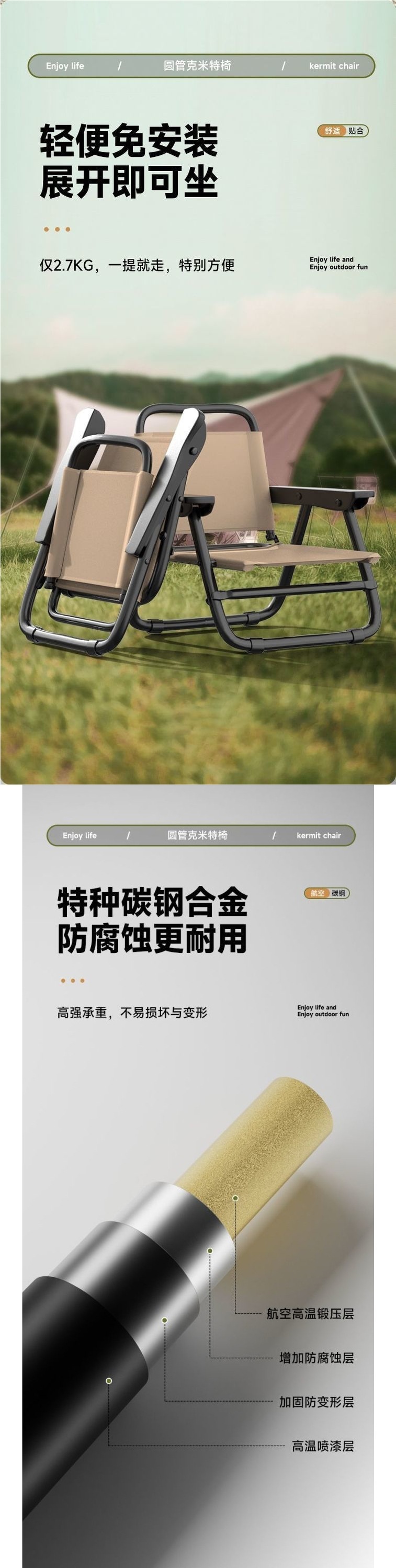 • 150kg 내하중 [두꺼운 원형 튜브] 대형 카키