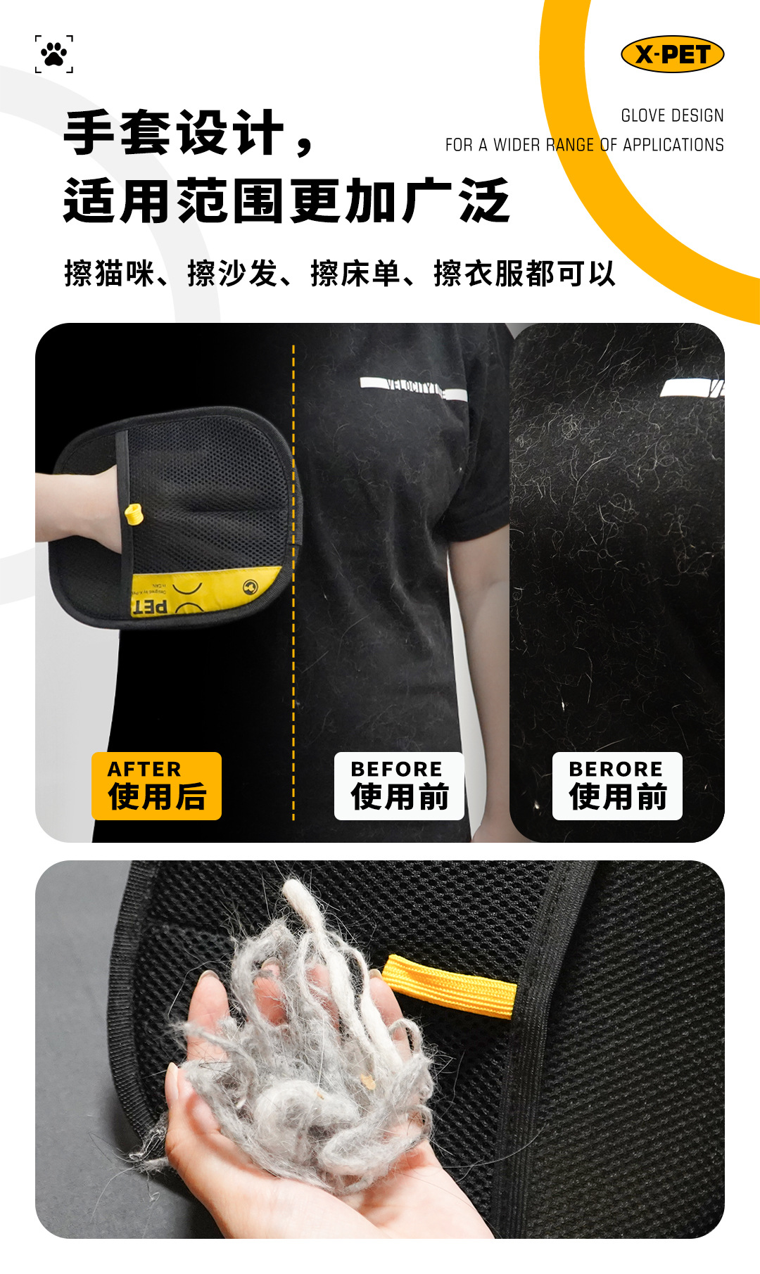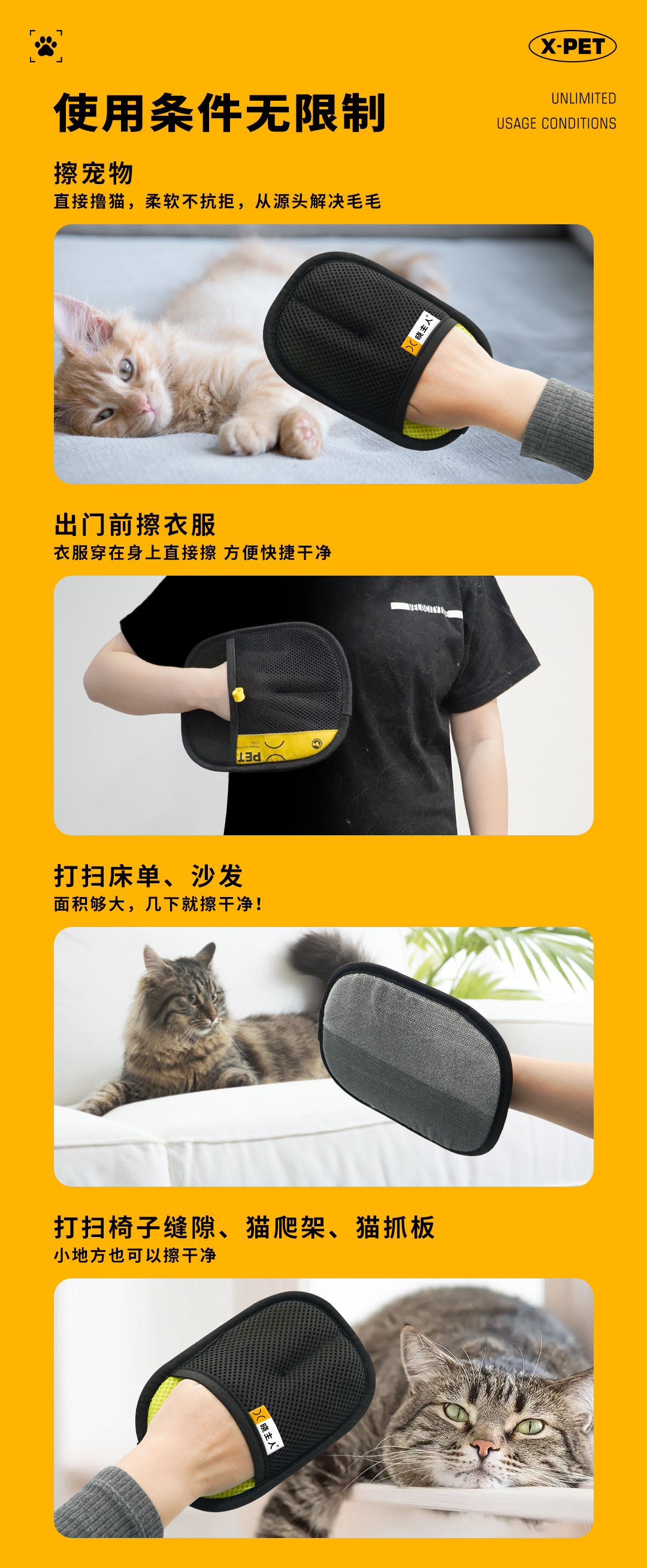 애완동물 정전기 제모 장갑, 고양이와 개털을 수집하는 양방향 브러시, 애완동물 가정용 카펫 및 소파 제모 도구스토어 가기