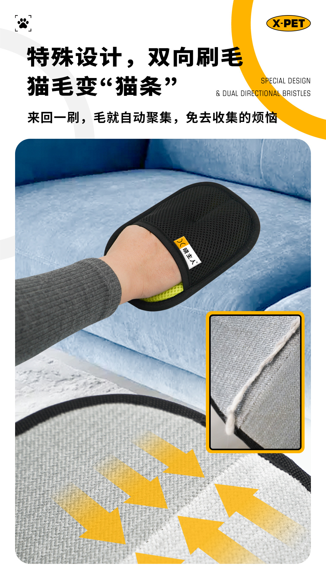 애완동물 정전기 제모 장갑, 고양이와 개털을 수집하는 양방향 브러시, 애완동물 가정용 카펫 및 소파 제모 도구