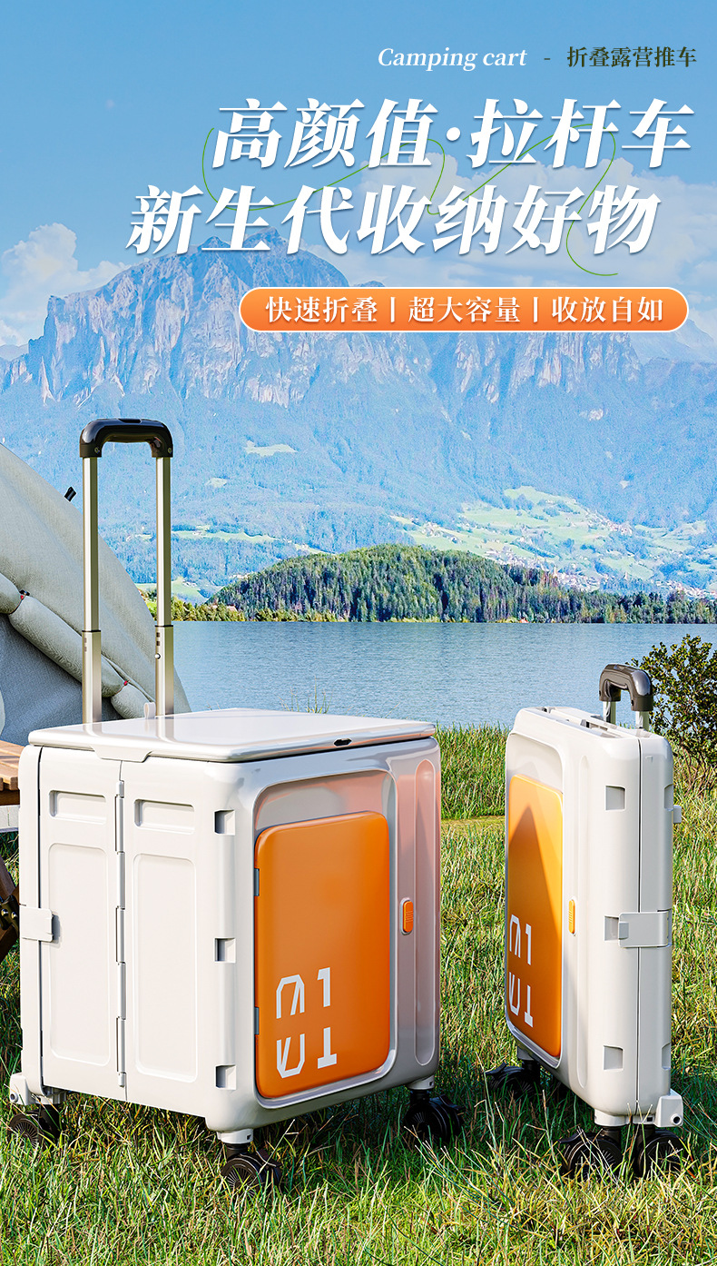 户外露营车便携折叠式拉杆小推车旅行外出野餐零食大容量营地车
