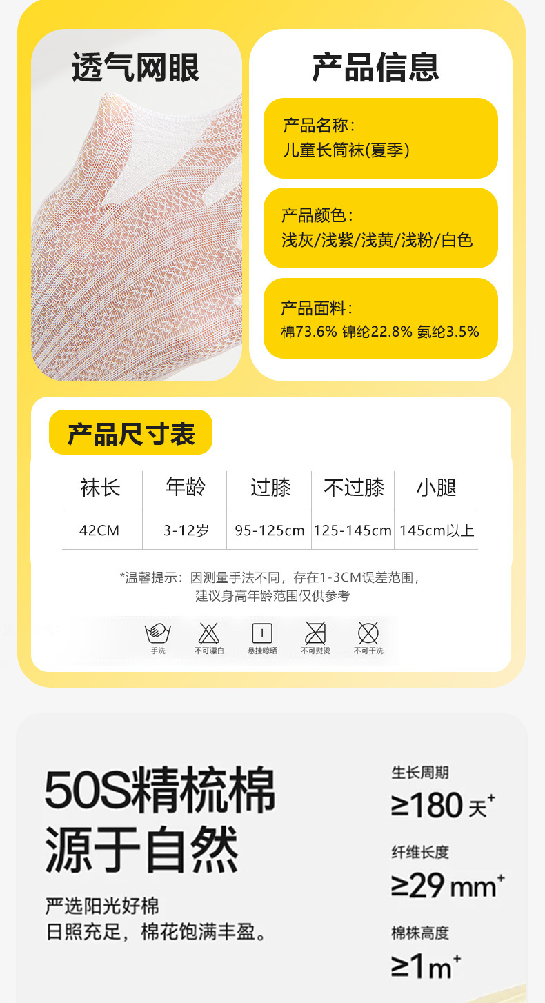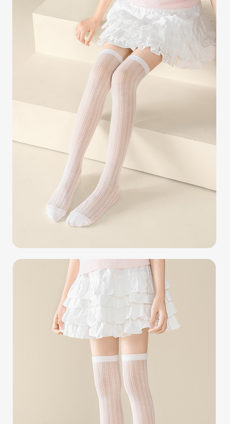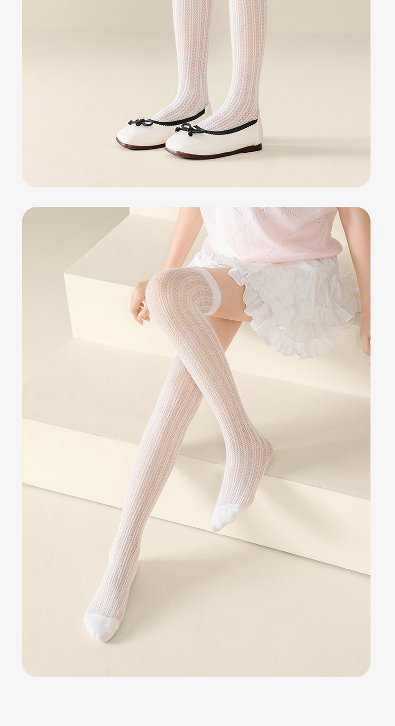 여름 어린이 스타킹, 여아용 초박형 무릎 위 양말, 단색 면 메쉬 어린이 모기 방지 양말, 하이 스타킹스토어 가기