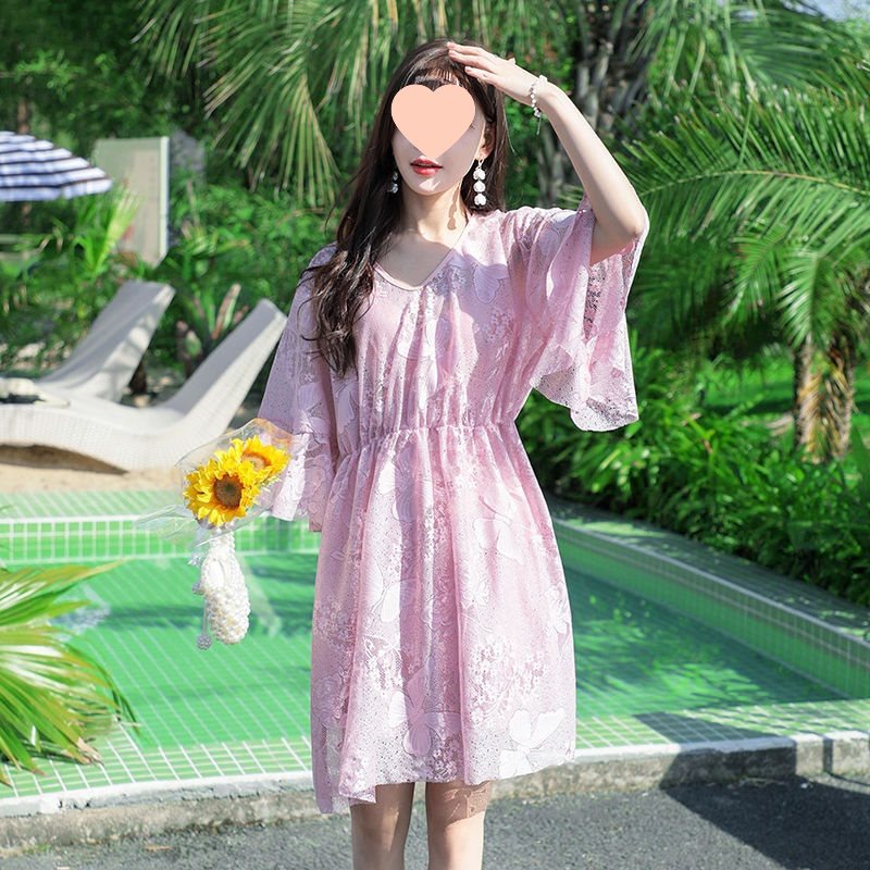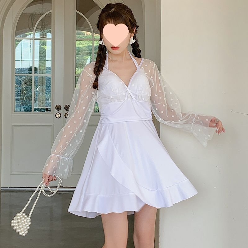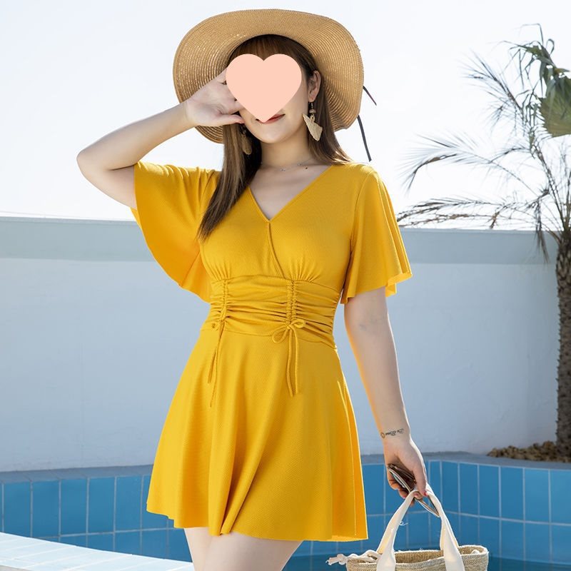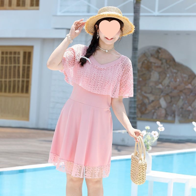 여성용 수영복 2025 새로운 스타일 배 커버 및 슬리밍 해변 휴가 메쉬 중공 온천 원피스 스커트 수영복