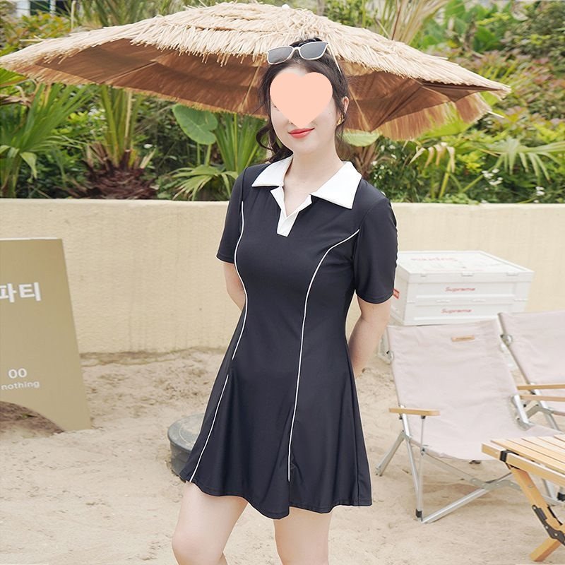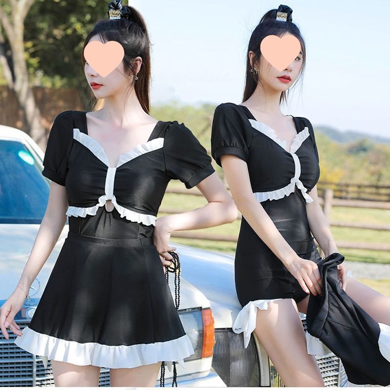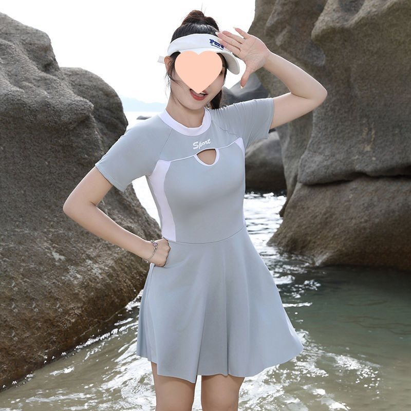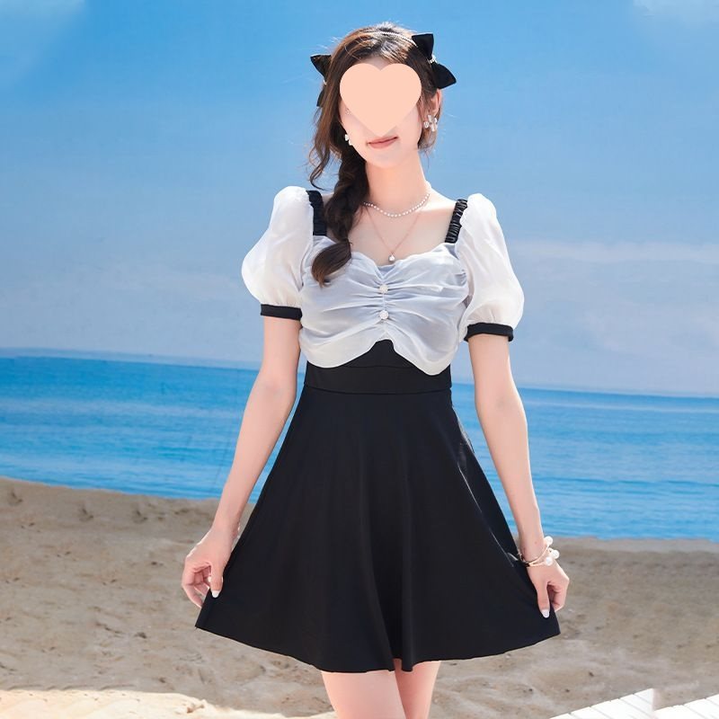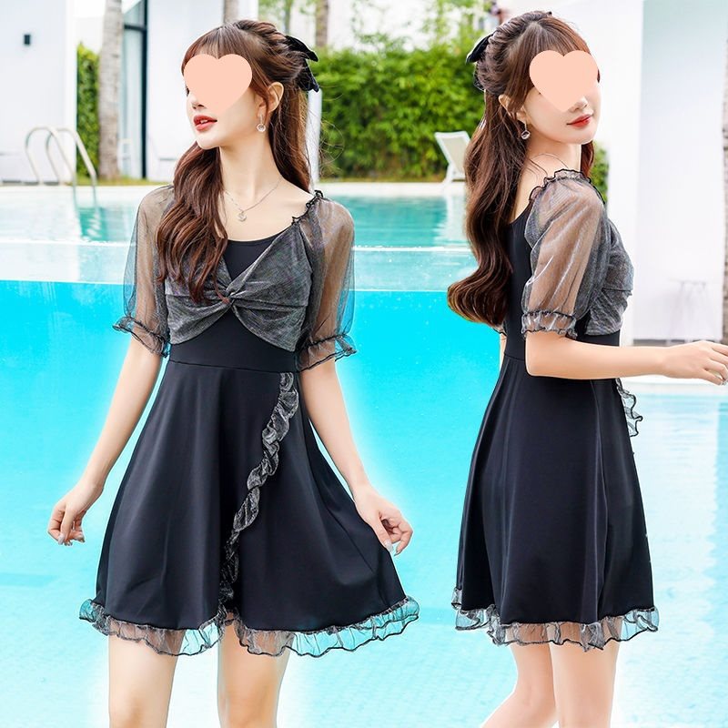 여성용 수영복 2025 새로운 스타일 배 커버 및 슬리밍 해변 휴가 메쉬 중공 온천 원피스 스커트 수영복스토어 가기