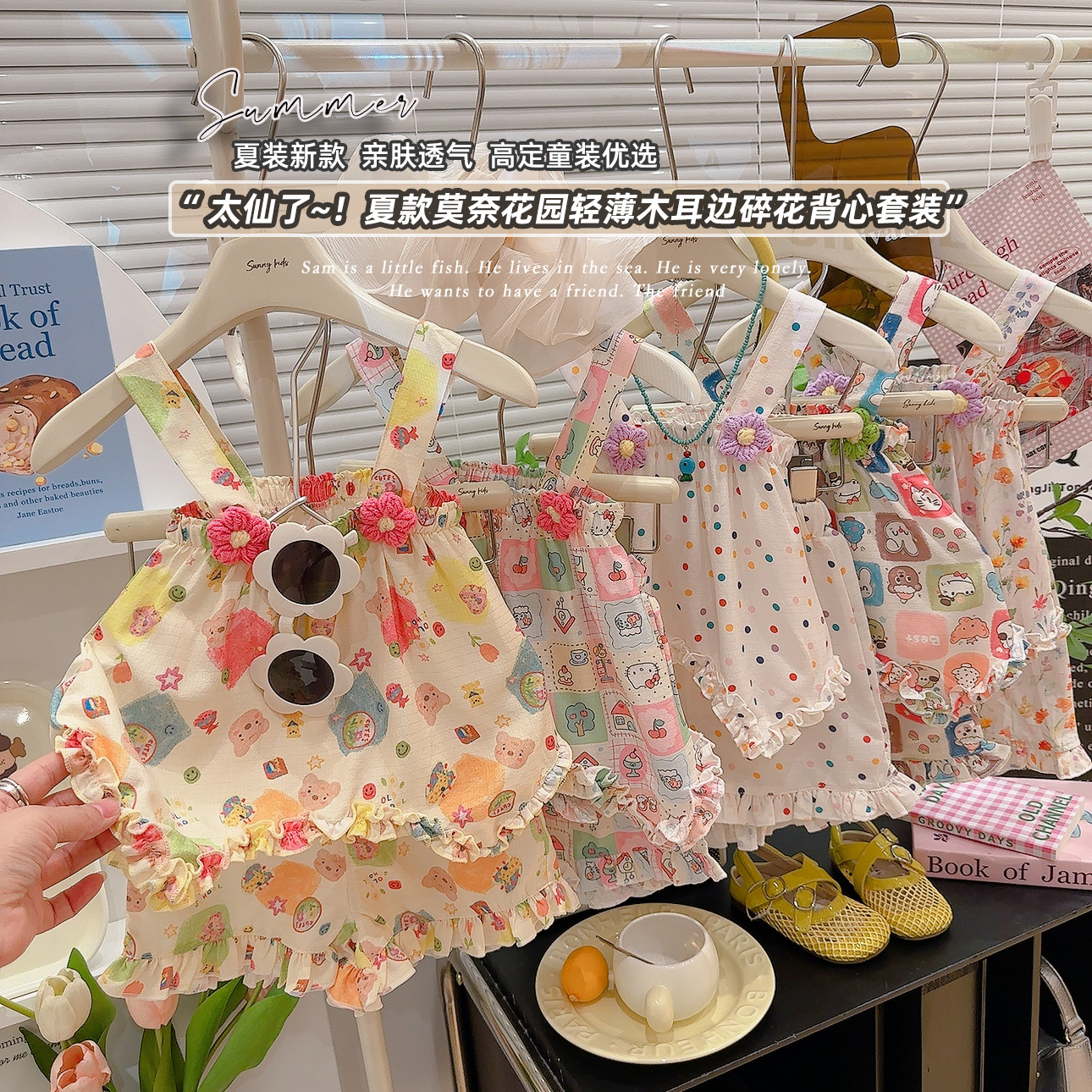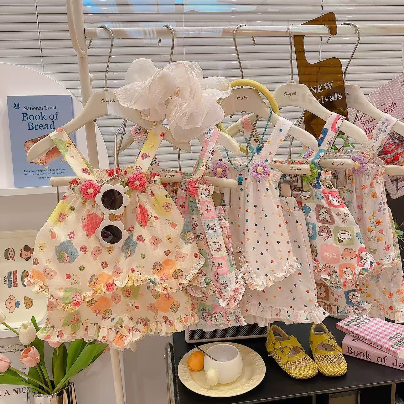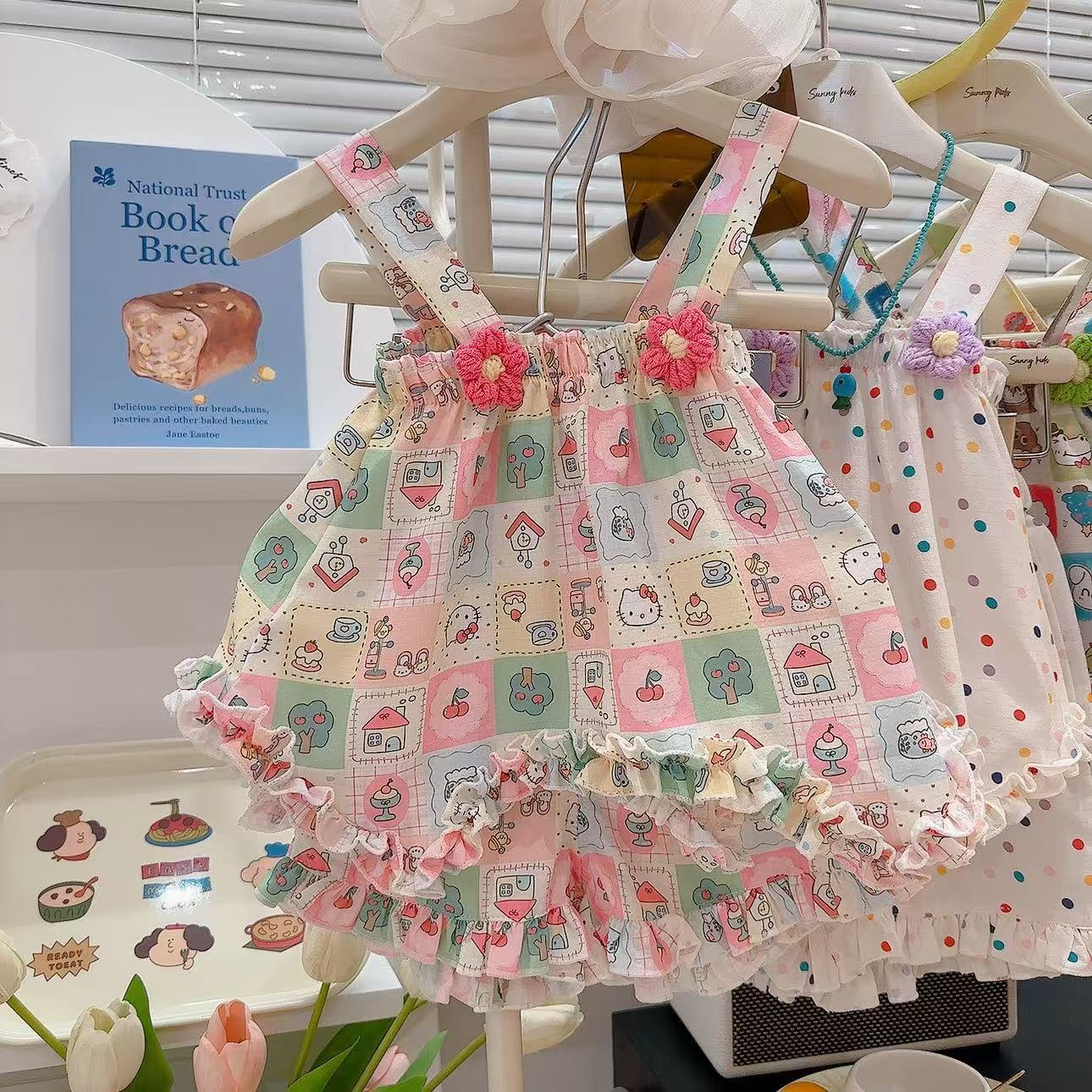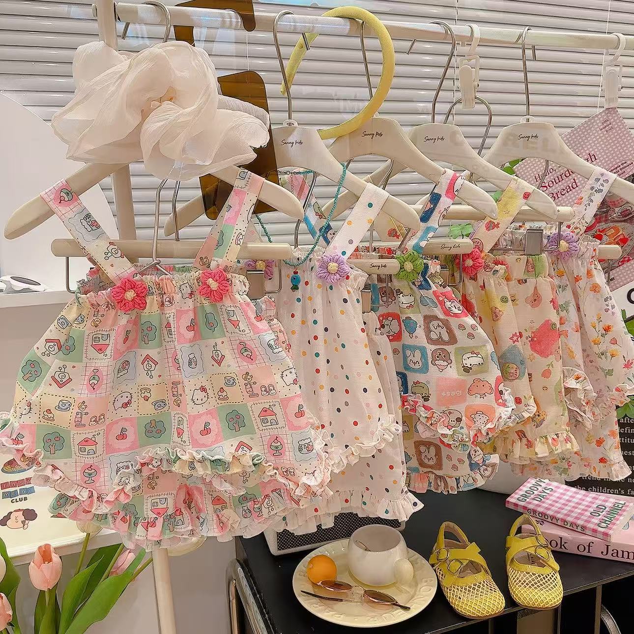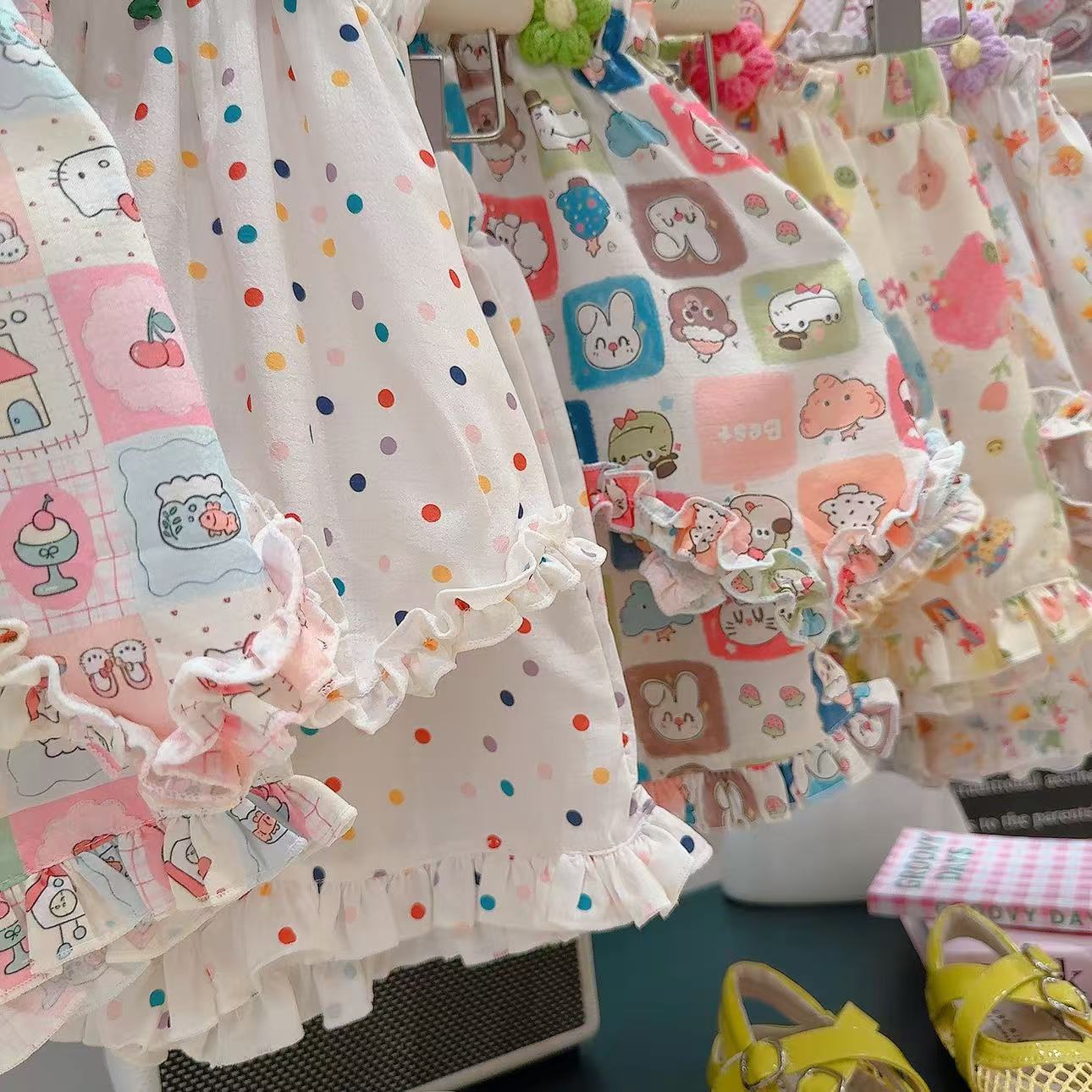 2025 새로운 여자 스커트 정장 꽃 귀여운 스타일 정장 만화 패턴 멋진 홈웨어 공장 직접 공급스토어 가기