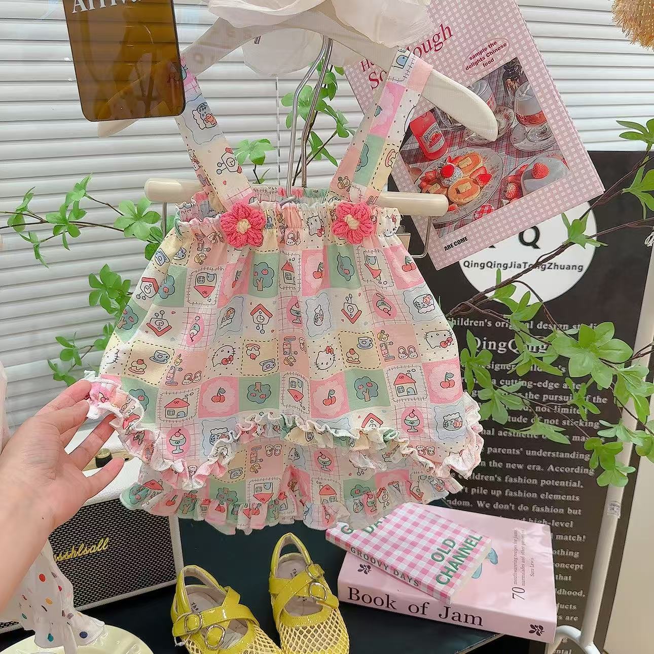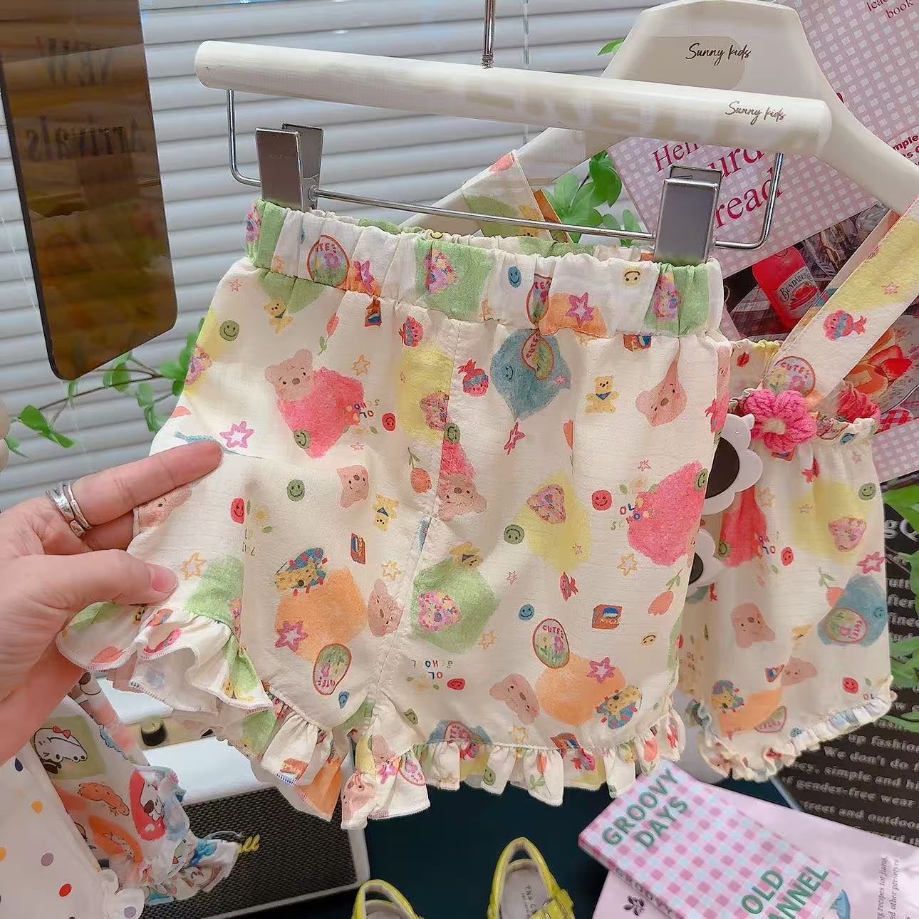 2025 새로운 여자 스커트 정장 꽃 귀여운 스타일 정장 만화 패턴 멋진 홈웨어 공장 직접 공급