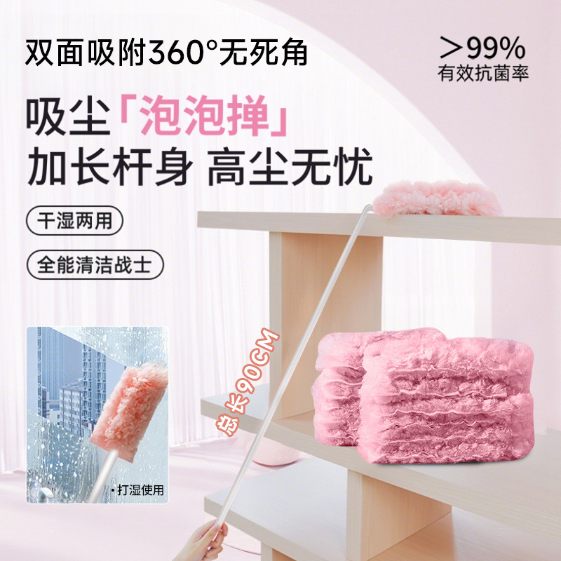 • 90cm 텔레스코픽 접이식 긴 폴 + 10 양면 먼지떨이 핑크 - 매직 버블 먼지떨이 세탁 가능 정전기 푹신함