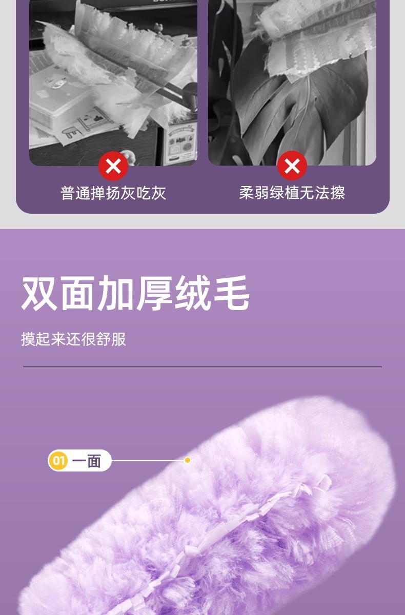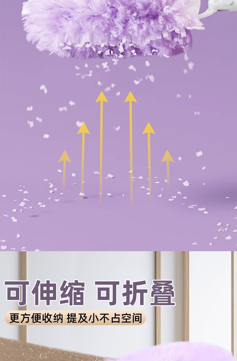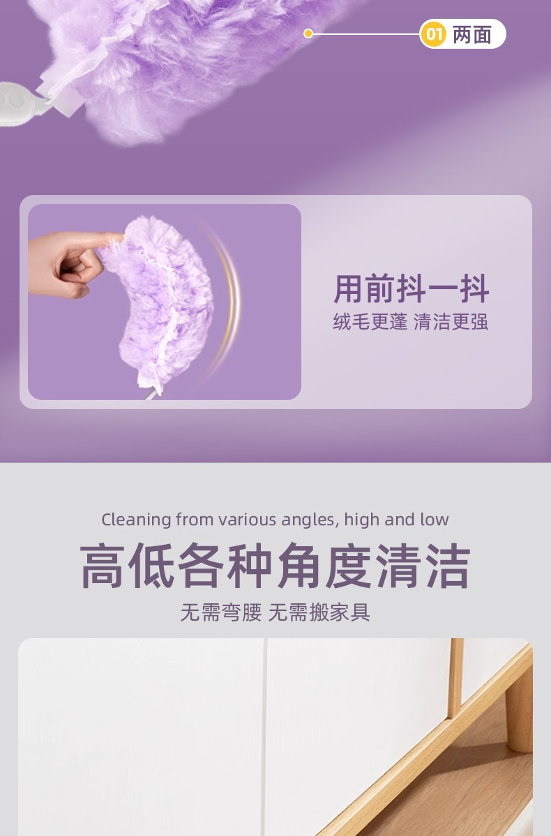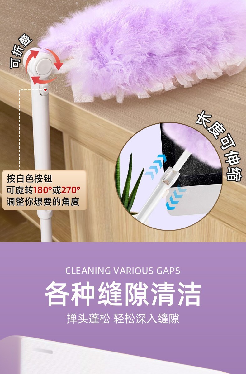 • 90cm 텔레스코픽 접이식 긴 막대 + 양면 먼지떨이 헤드 2개 보라색 - 매직 버블 먼지떨이 세척 가능하고 정전기 방지 푹신함