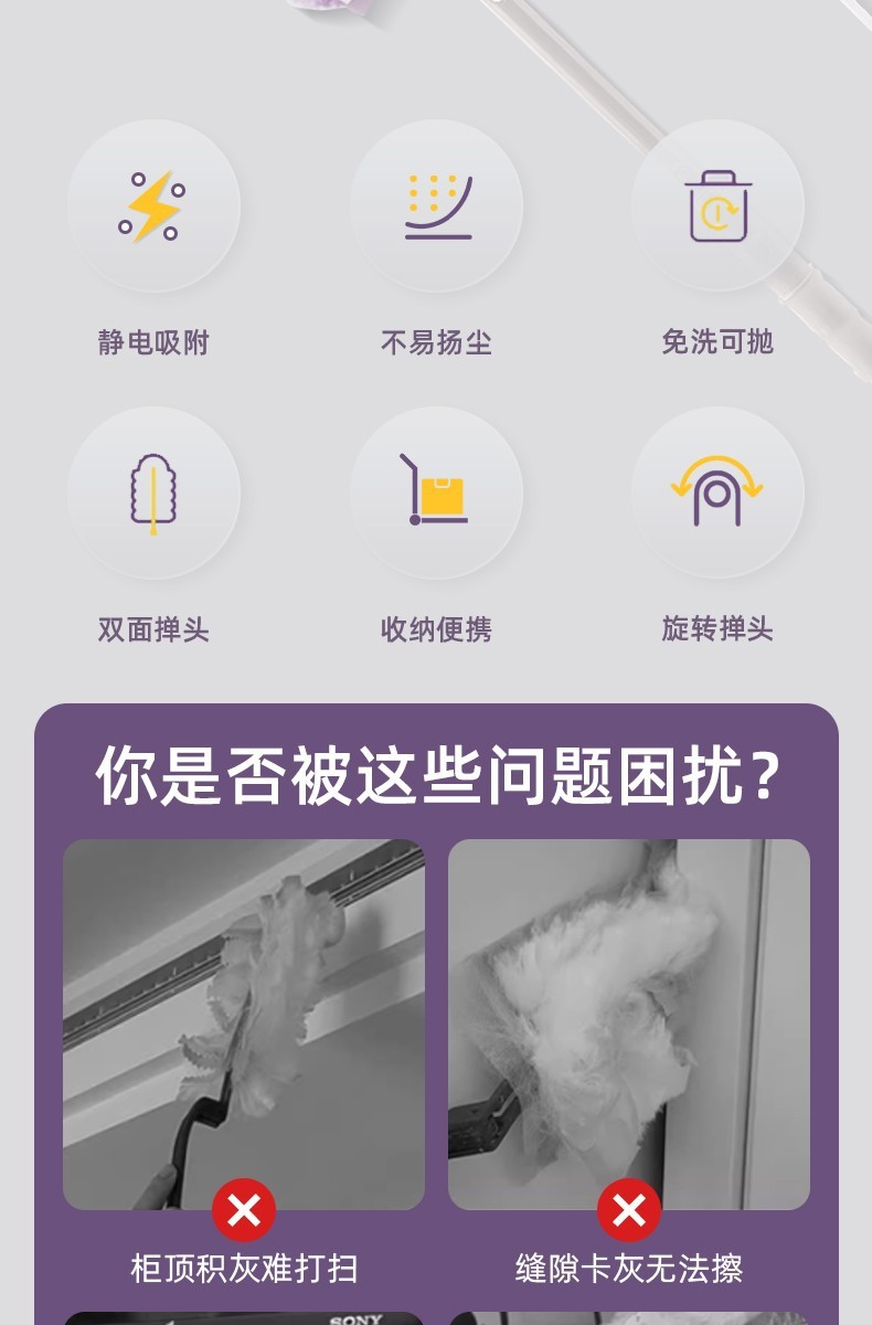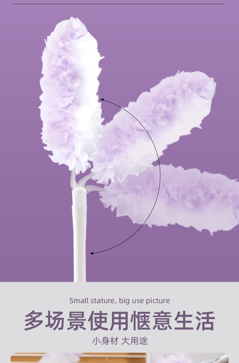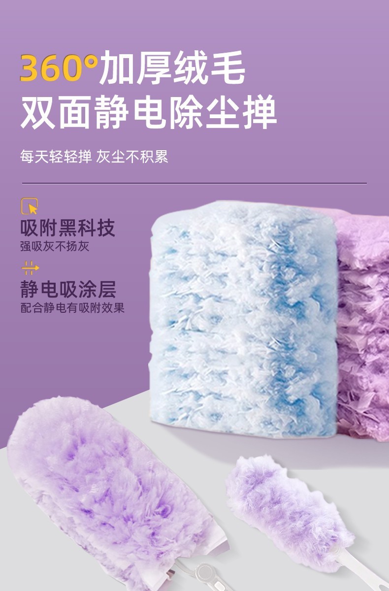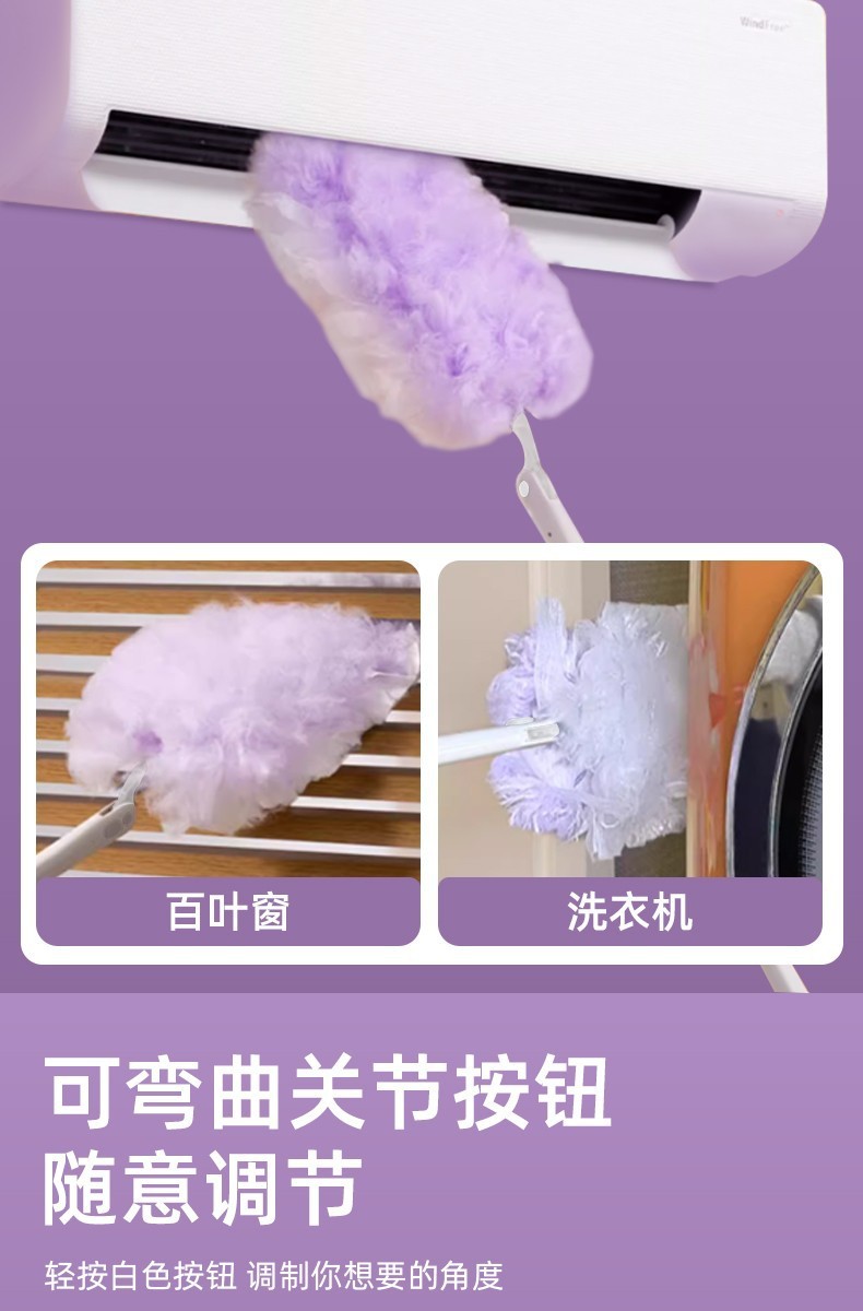 • 90cm 텔레스코픽 접이식 긴 막대 + 양면 먼지떨이 헤드 2개 보라색 - 매직 버블 먼지떨이 세척 가능하고 정전기 방지 푹신함