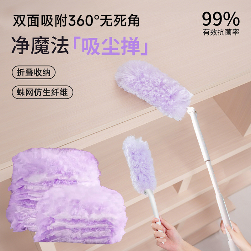 Quiet Magic 먼지 제거 가정용 텔레스코픽 정전기 먼지떨이는 자동차를 흡착하여 항균 청소, 보푸라기 없음, 먼지 없음, 먼지 청소