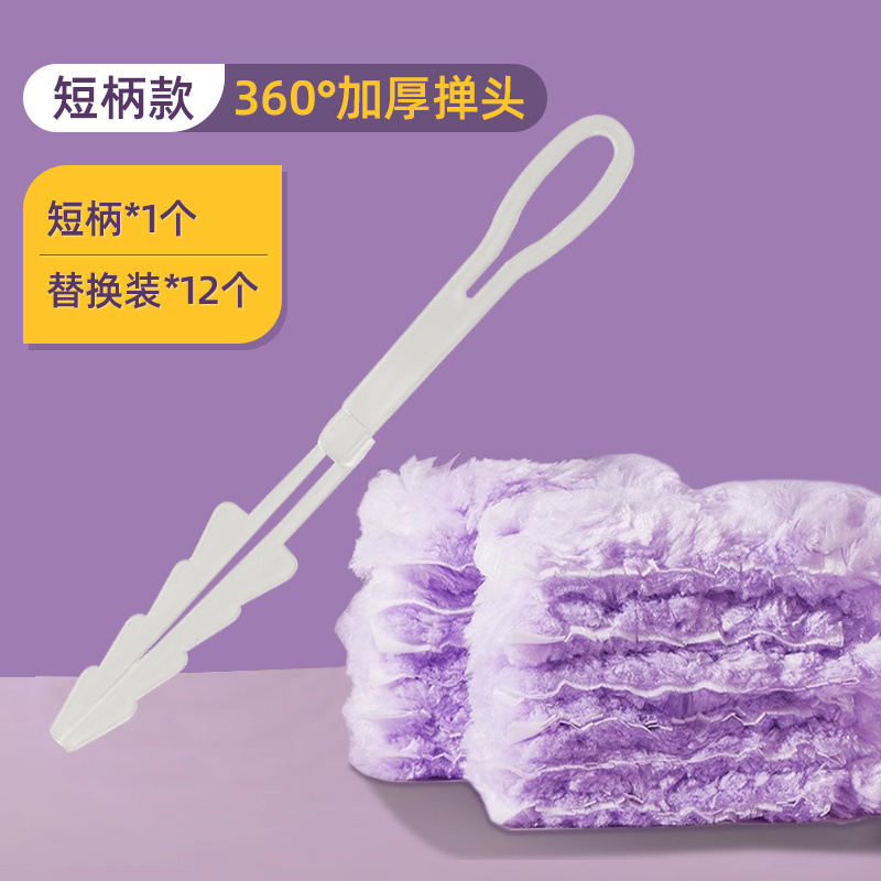 • 28cm 흰색 접이식 짧은 손잡이 + 12개의 양면 먼지떨이 보라색 - 매직 버블 먼지떨이 세척 가능하고 정전기 방지 푹신함
