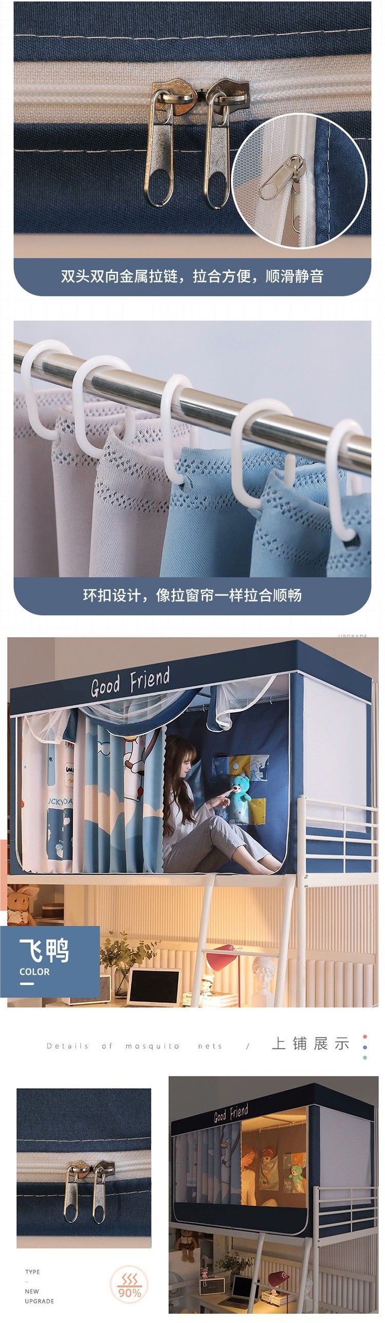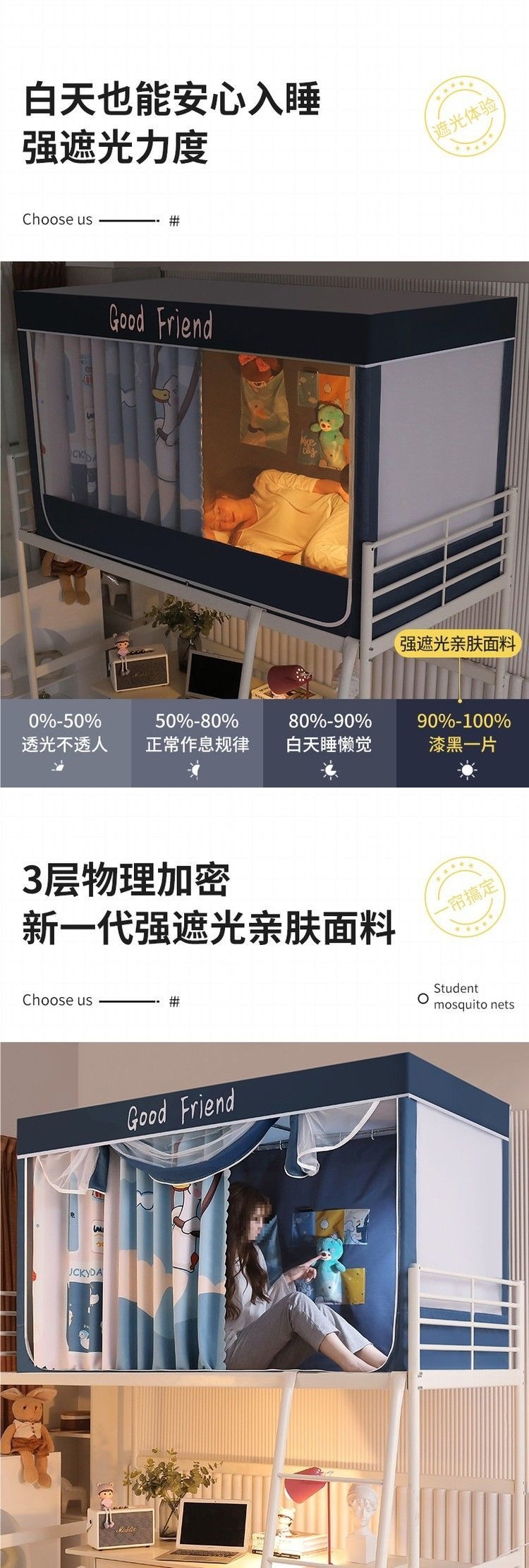 스탠드가 있는 완전 차광 침대 커튼, 모기장 스탠드 일체형 초강력 차광 학생 기숙사 이층 침대 커튼 2m스토어 가기