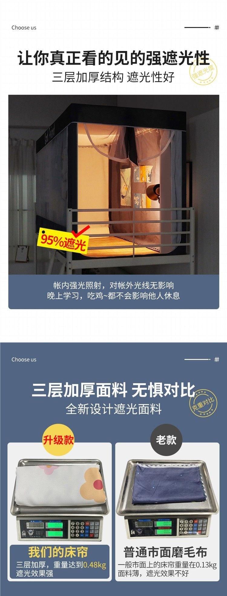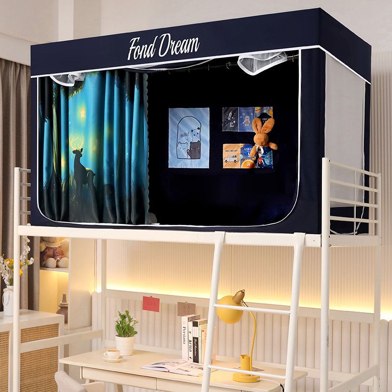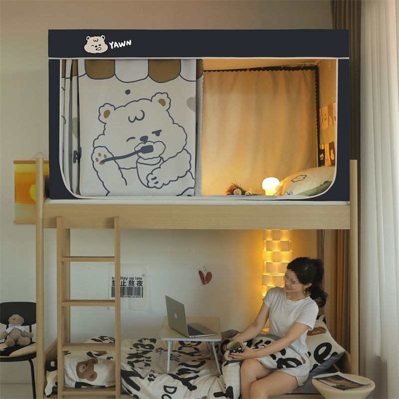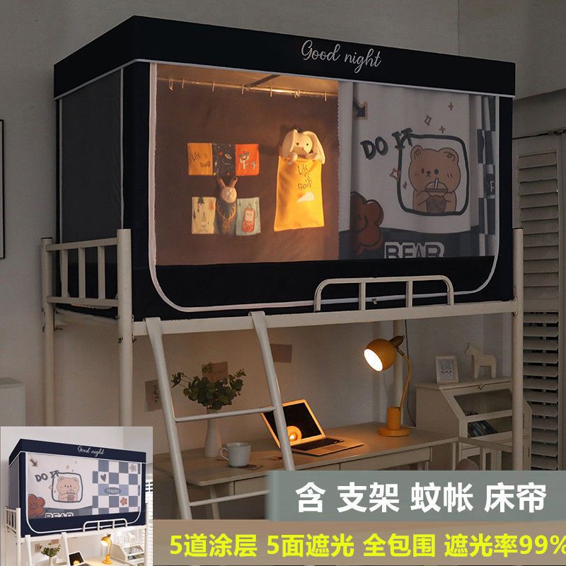 스탠드가 있는 완전 차광 침대 커튼, 모기장 스탠드 일체형 초강력 차광 학생 기숙사 이층 침대 커튼 2m