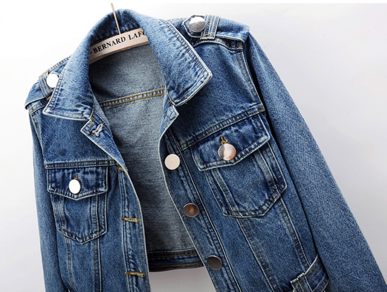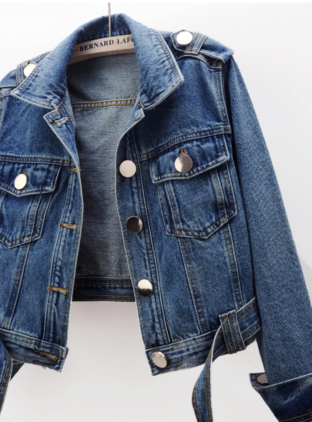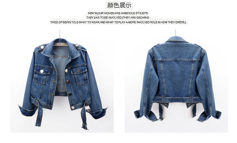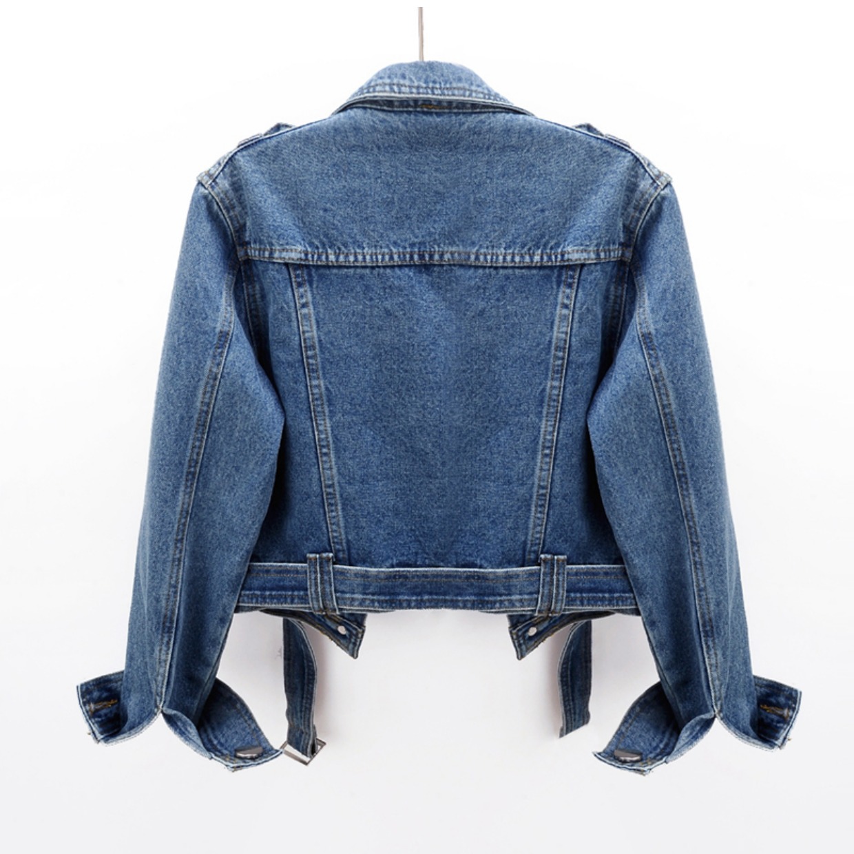 2024 봄, 가을 새로운 짧은 데님 재킷 여성 한국 스타일 루즈 캐주얼 쁘띠 탑 오토바이 재킷 블루스토어 가기