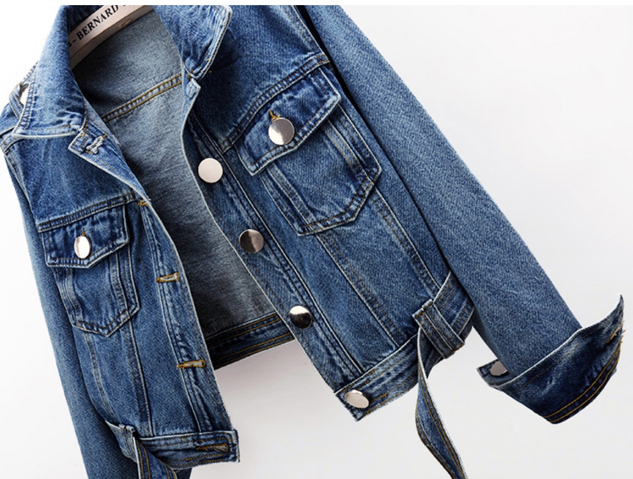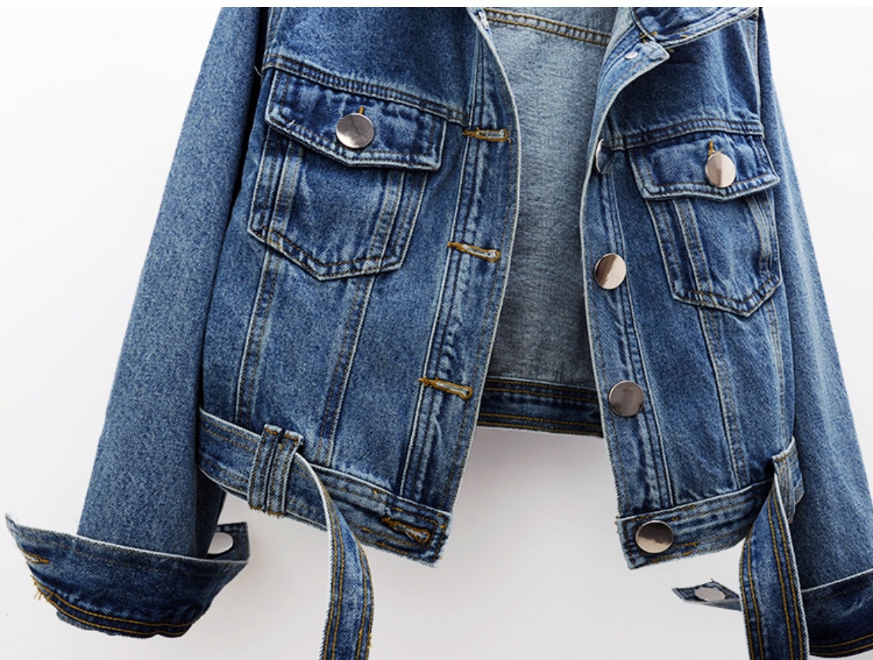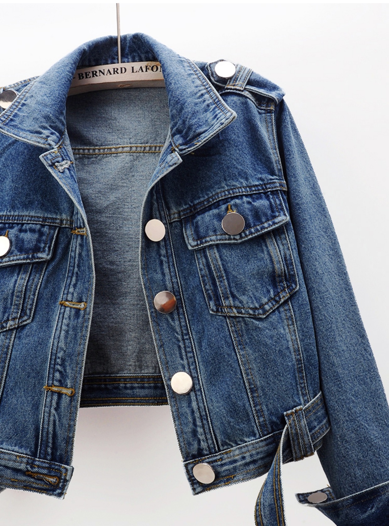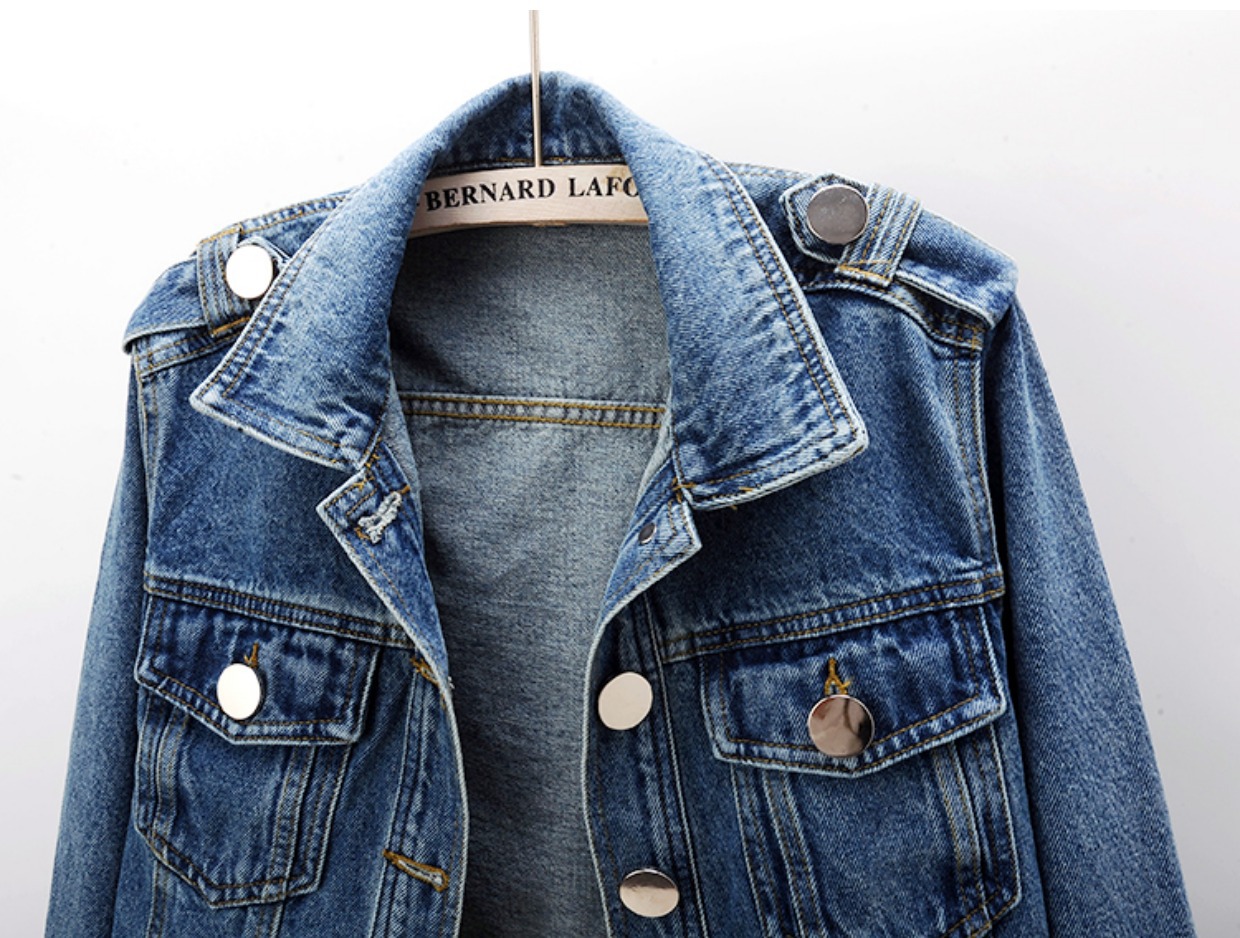 2024 봄, 가을 새로운 짧은 데님 재킷 여성 한국 스타일 루즈 캐주얼 쁘띠 탑 오토바이 재킷 블루스토어 가기