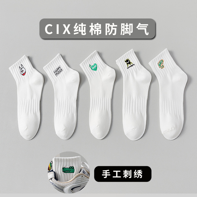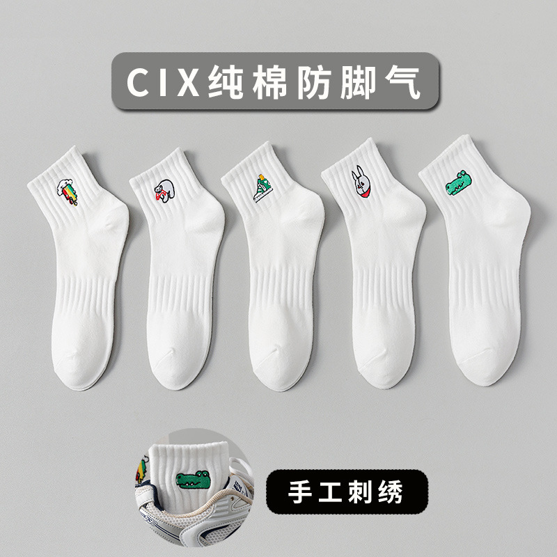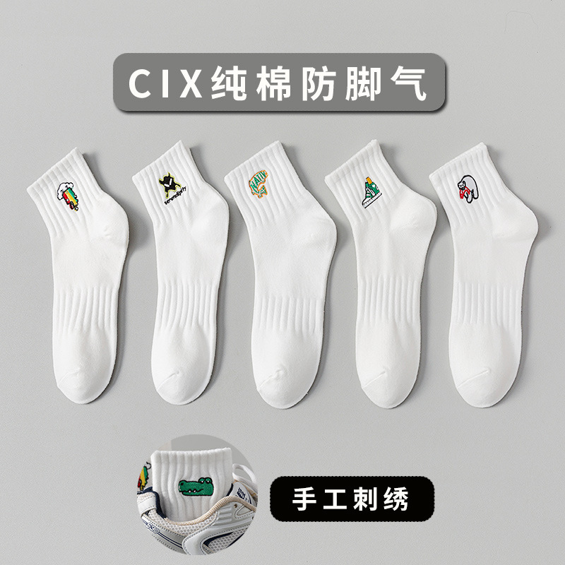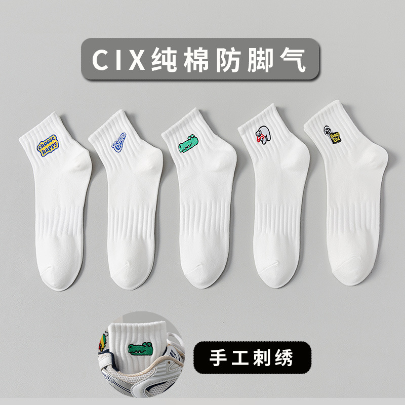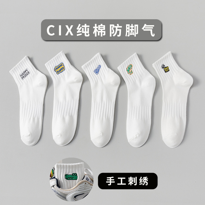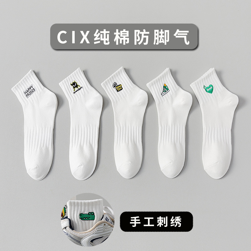 양말 남성 여름 얇은 순면 탈취제 땀 흡수 통기성 스포츠 남성 흰색 중간 짧은 양말 청소년 및 학생