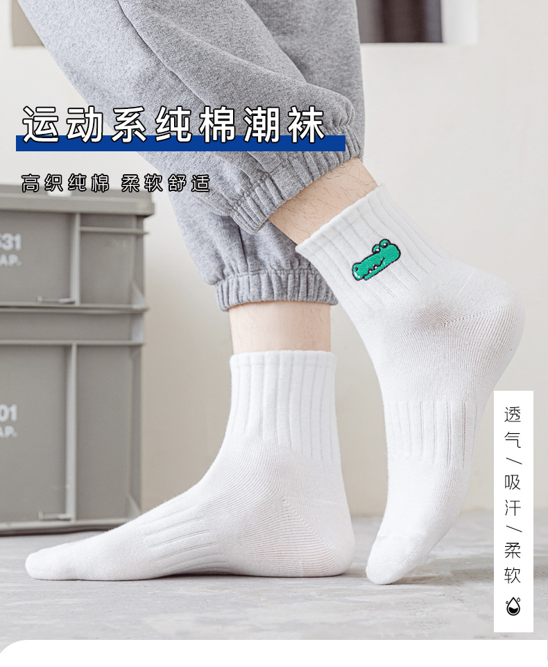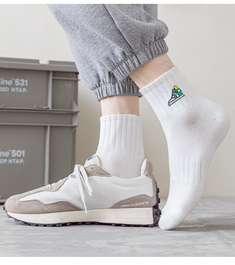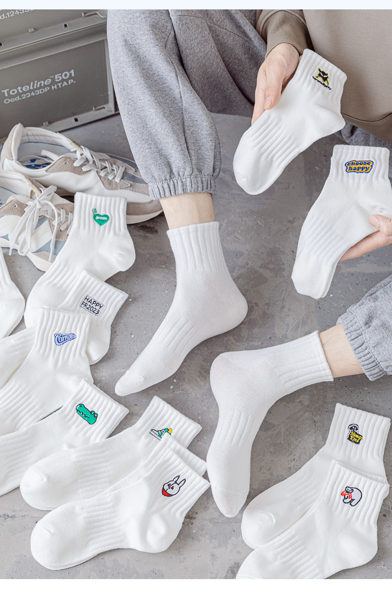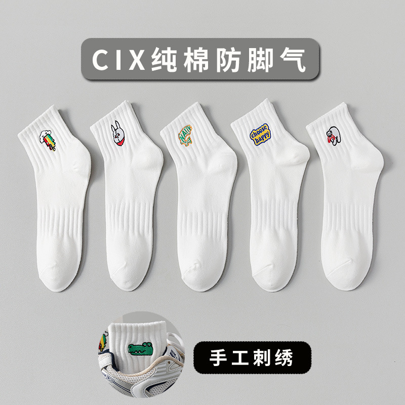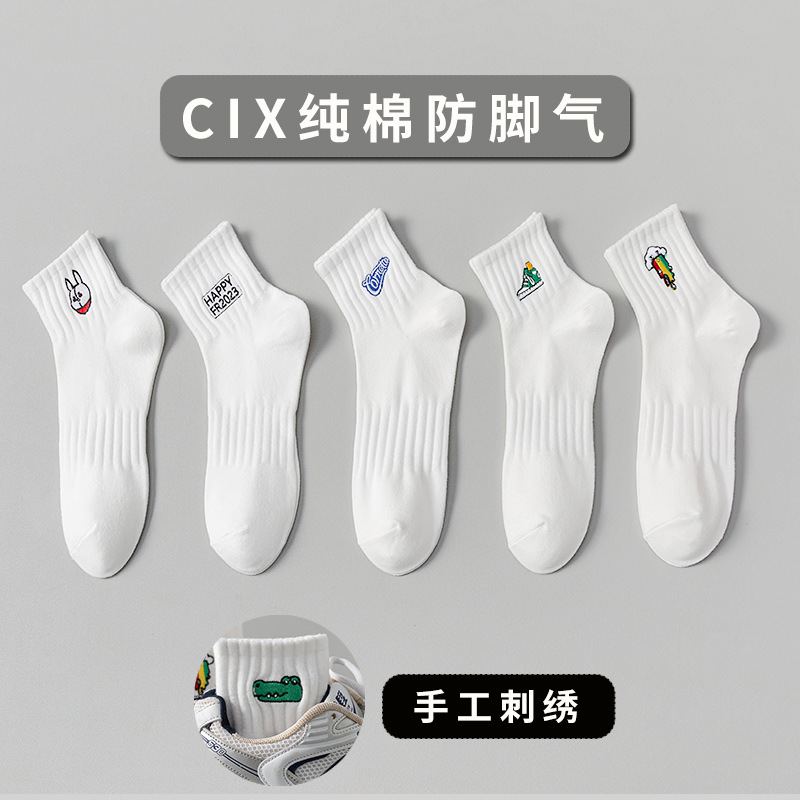 양말 남성 여름 얇은 순면 탈취제 땀 흡수 통기성 스포츠 남성 흰색 중간 짧은 양말 청소년 및 학생