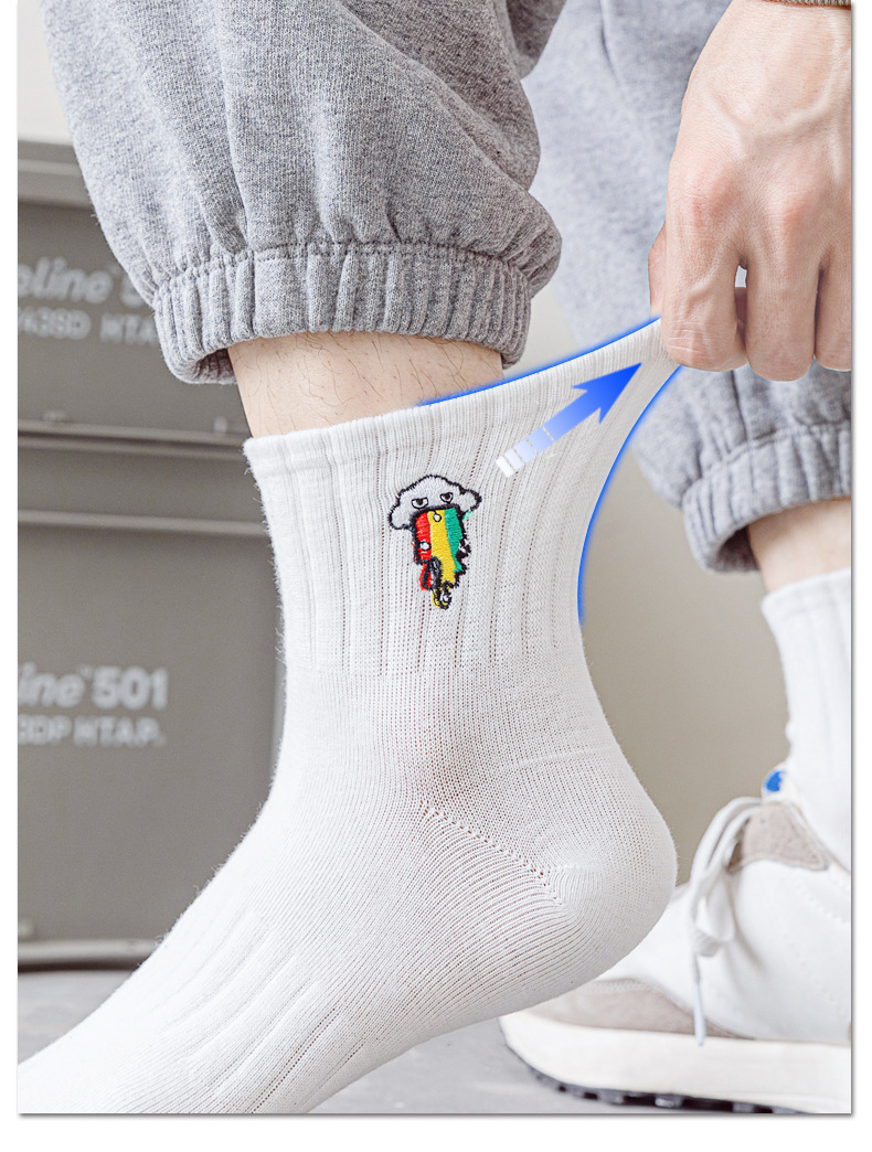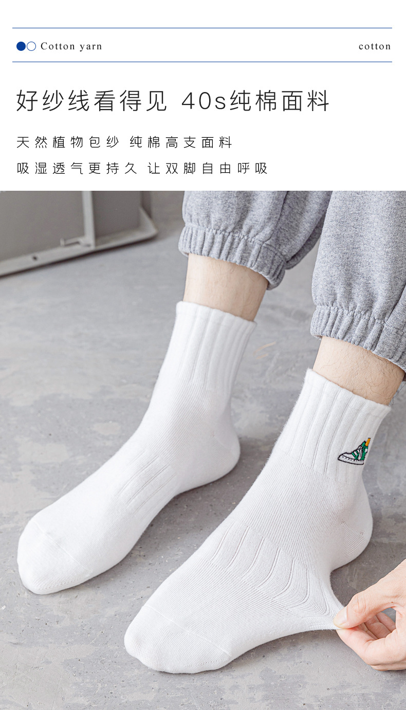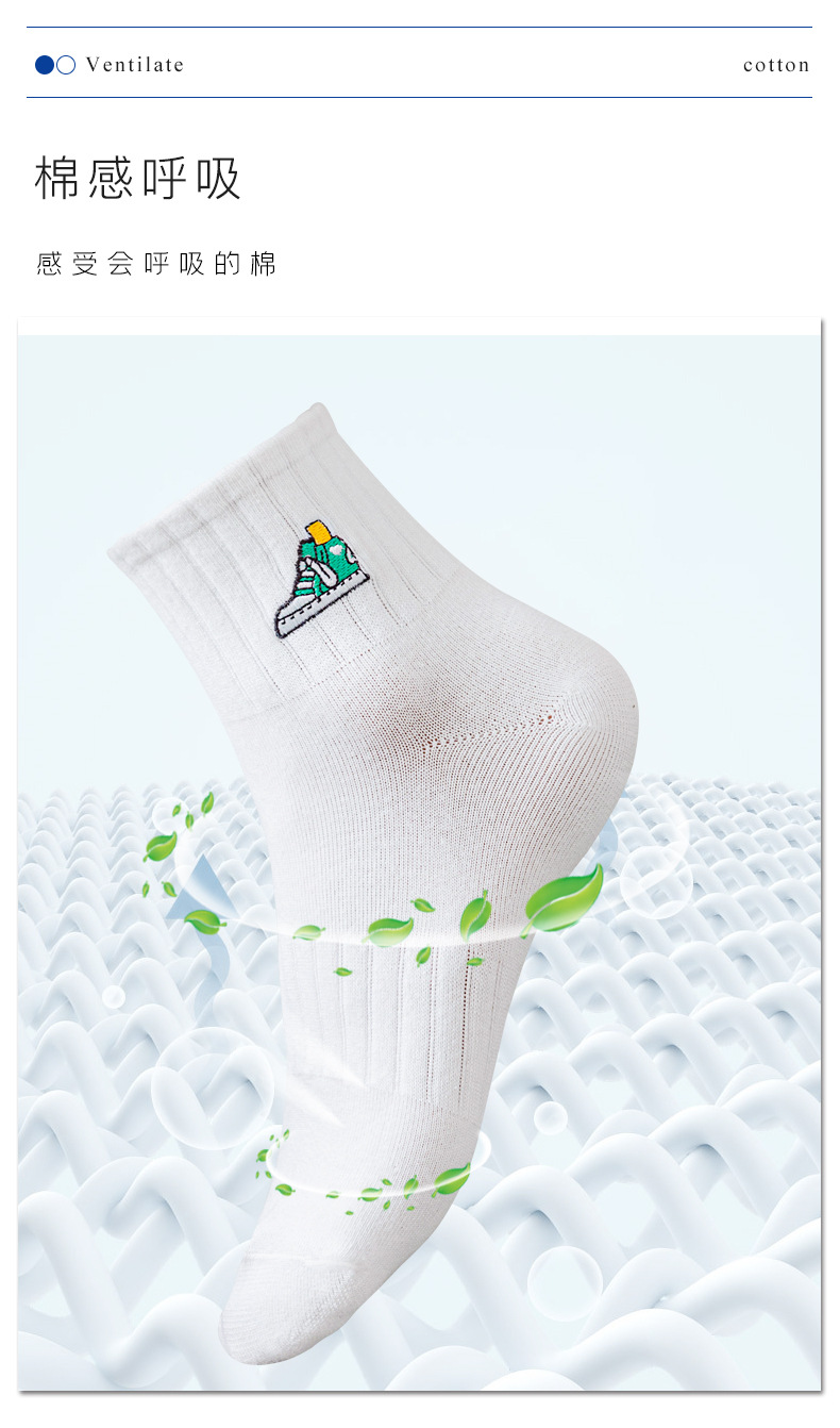 양말 남성 여름 얇은 순면 탈취제 땀 흡수 통기성 스포츠 남성 흰색 중간 짧은 양말 청소년 및 학생스토어 가기