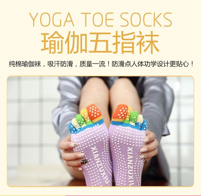 요가 양말 순면 다섯 손가락 양말 요가 미끄럼 방지 여성 전문 스포츠 피트니스 양말 발가락 양말 필라테스