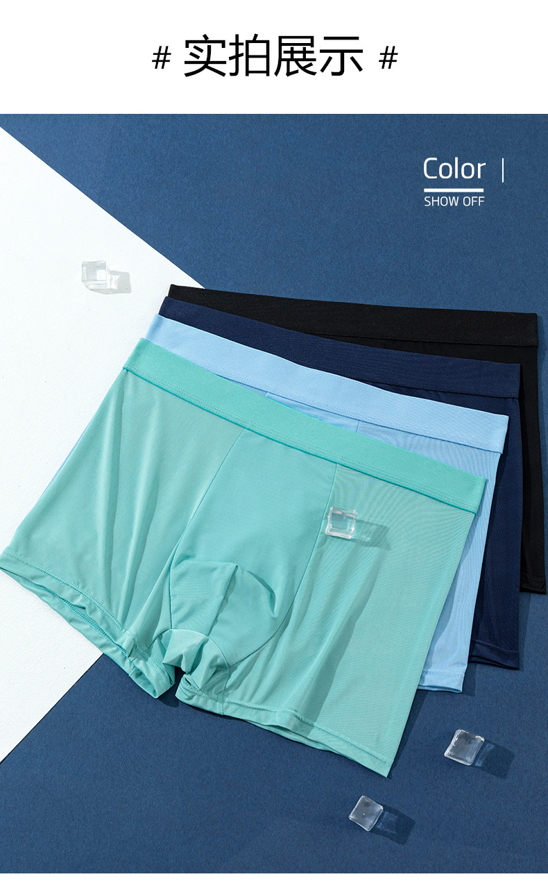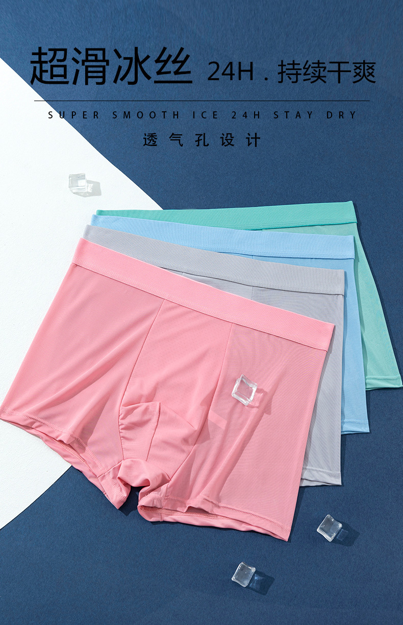 여름 네트워크 새로운 남성 복서 팬티 얼음 실크 솔리드 컬러 속옷 통기성 대형 복서 반바지 공장 도매스토어 가기