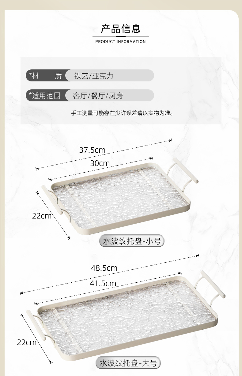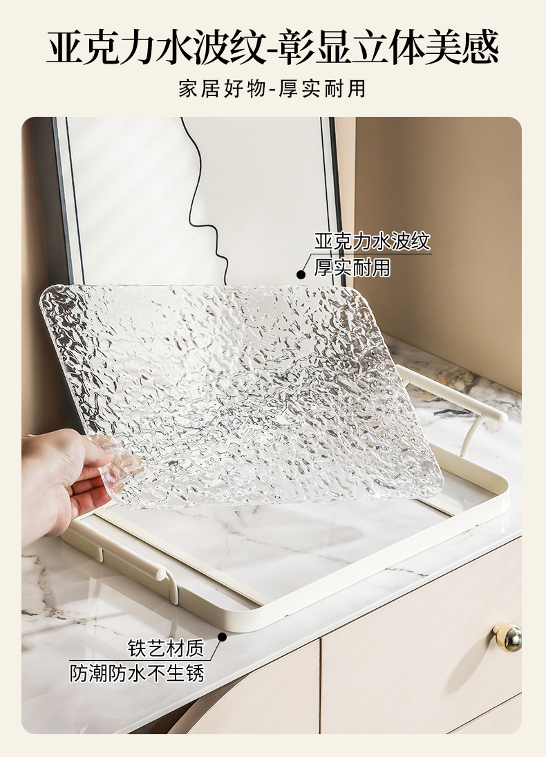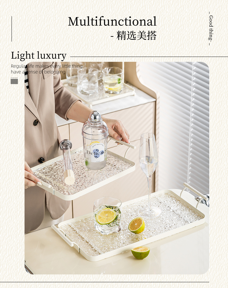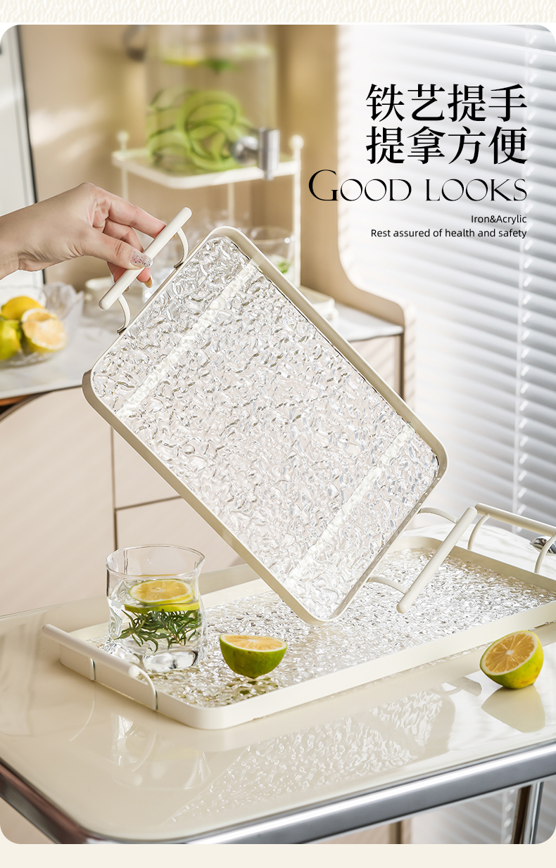 아크릴 트레이 직사각형 접시 느낌의 가벼운 럭셔리 홈 거실 워터 컵 티 트레이 호텔 상업용 대형스토어 가기