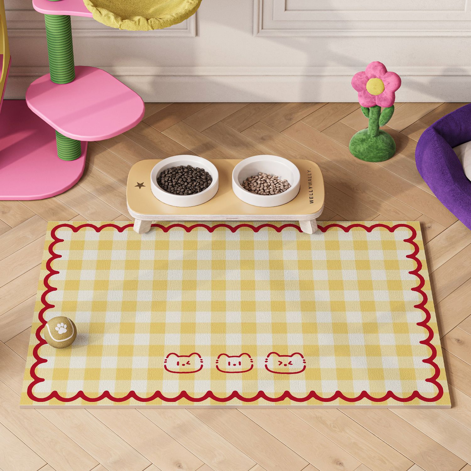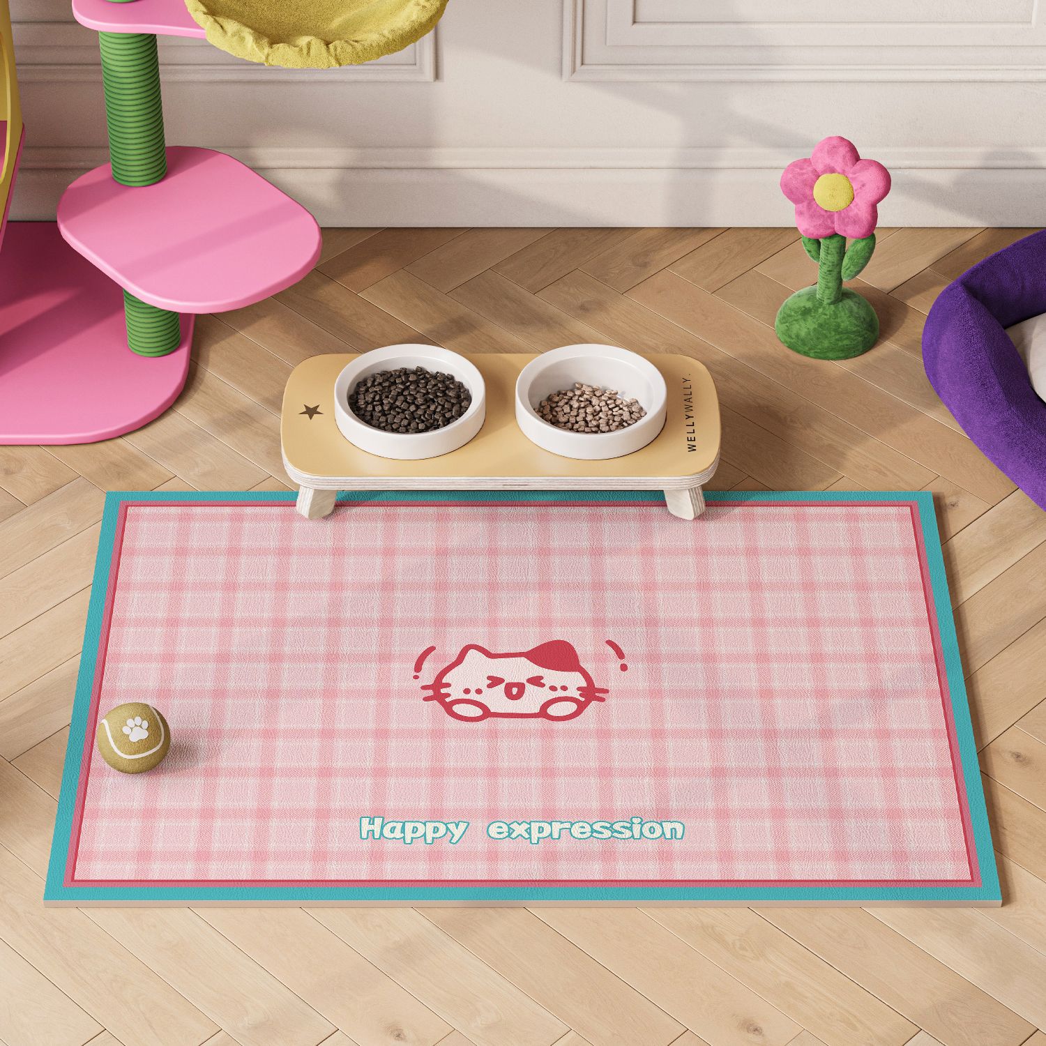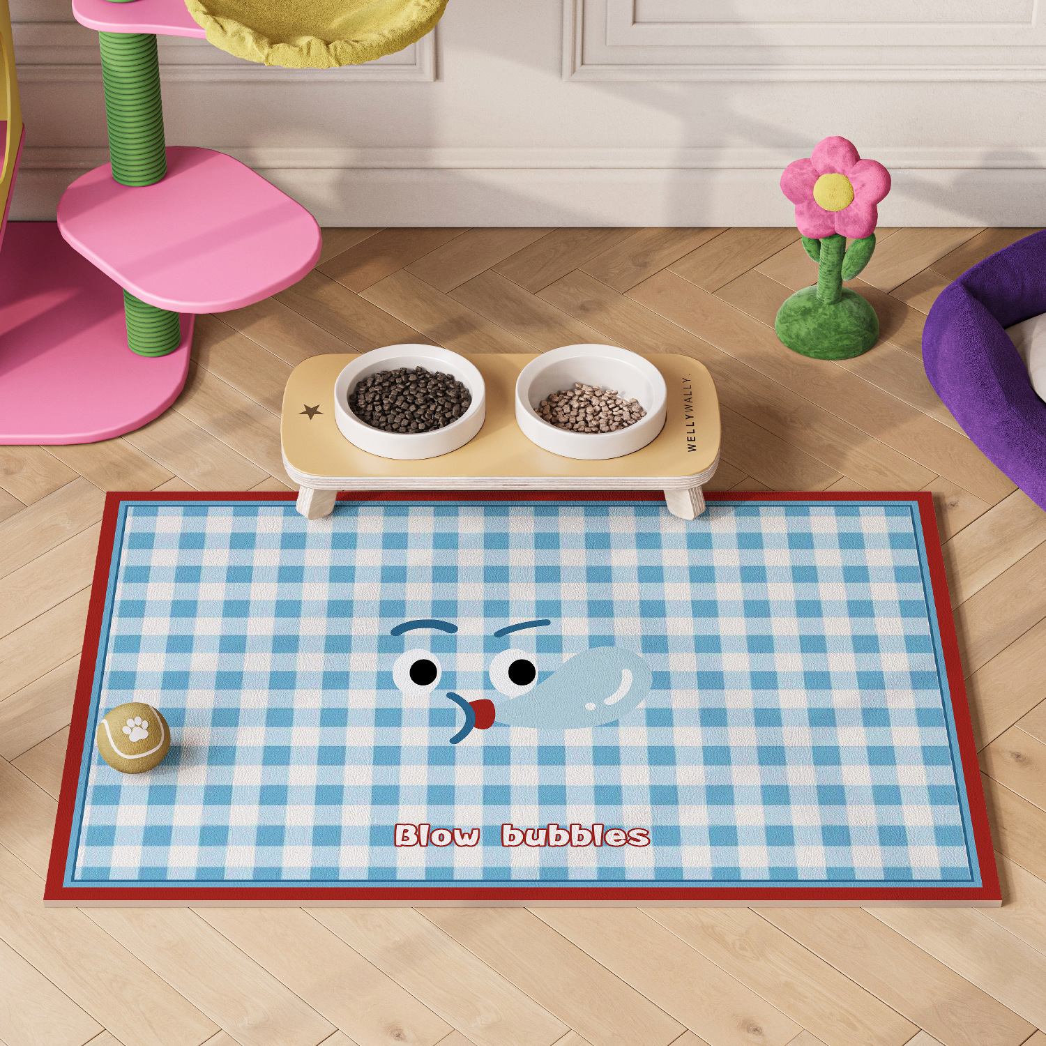 도파민 격자 무늬 방수 애완 동물 먹이 매트, 얼룩 방지 및 관리하기 쉬운 바닥 매트, 만화 장식 바닥 매트, 내마모성 바닥 매트스토어 가기