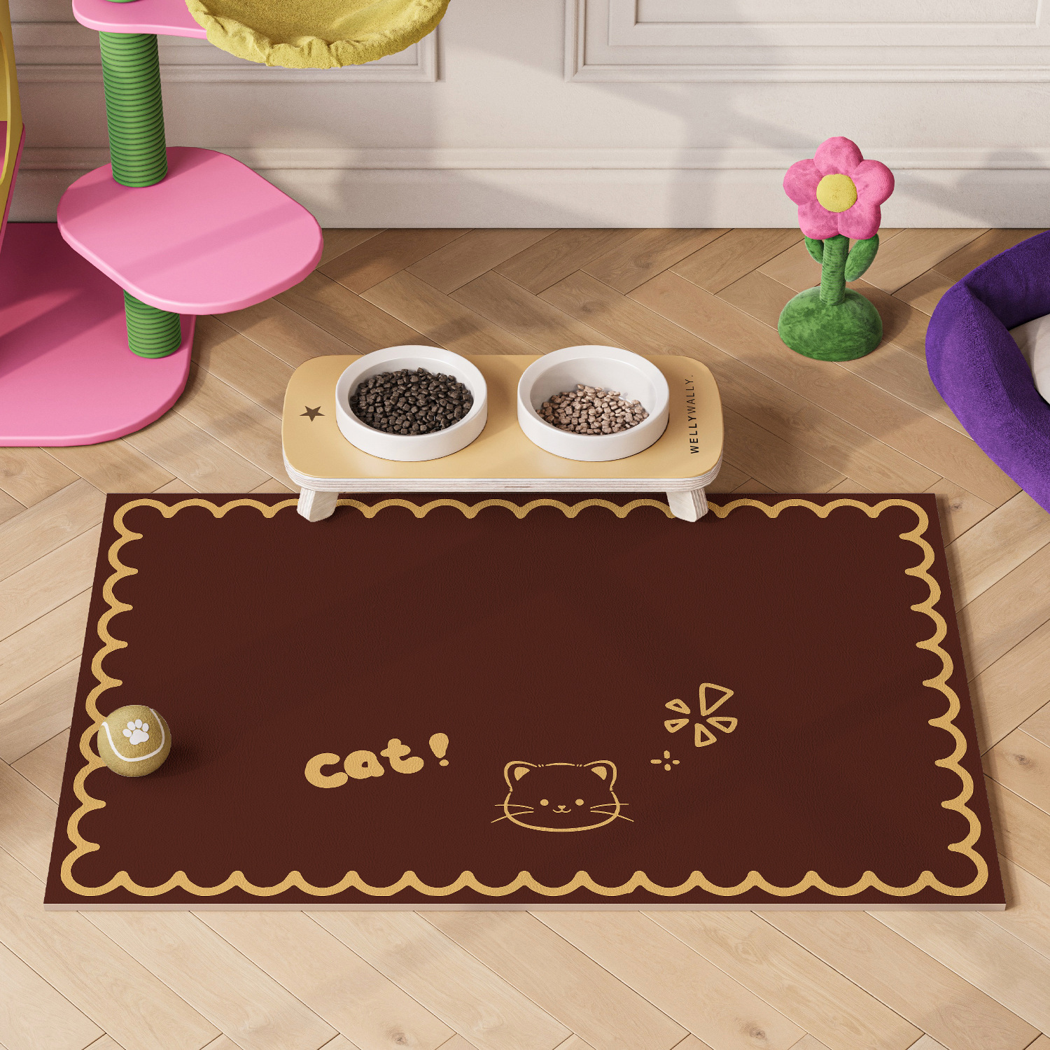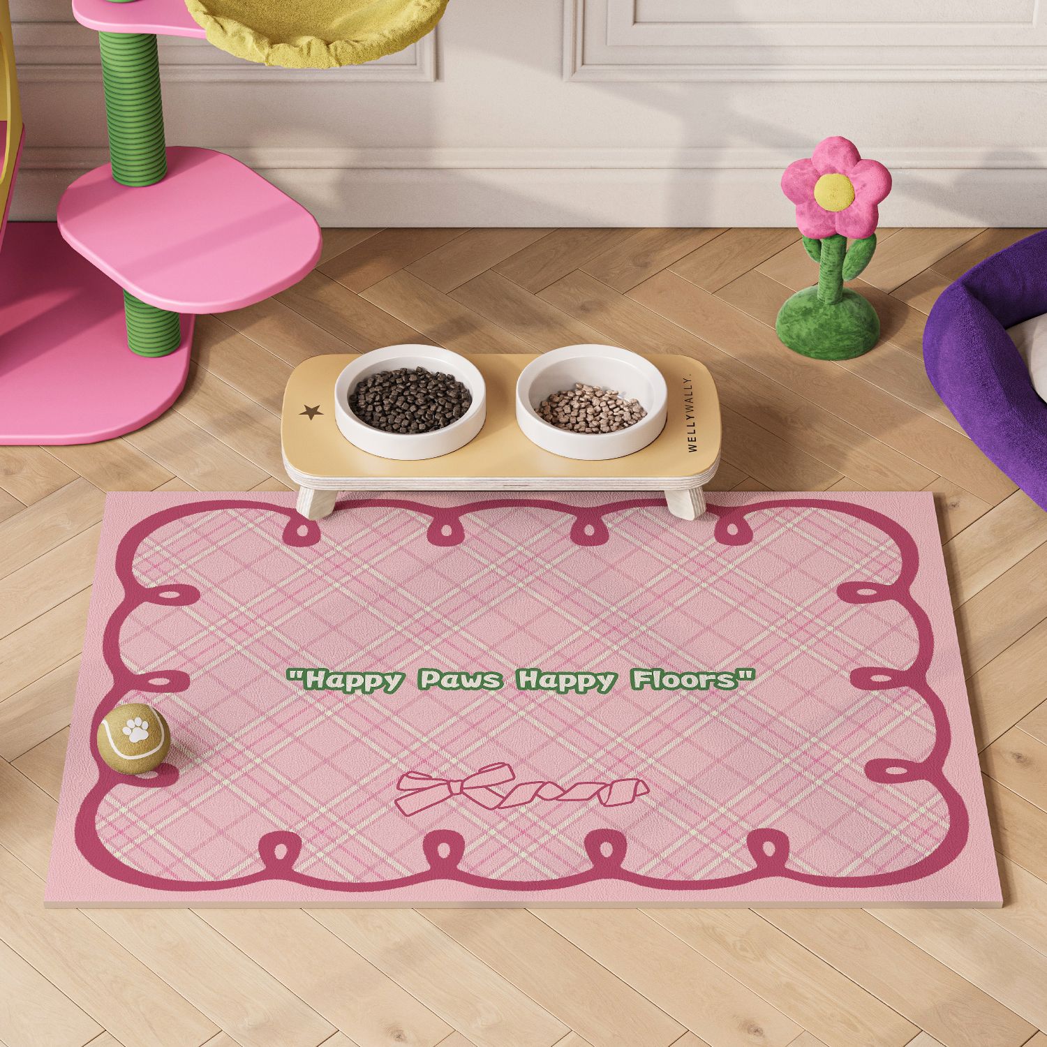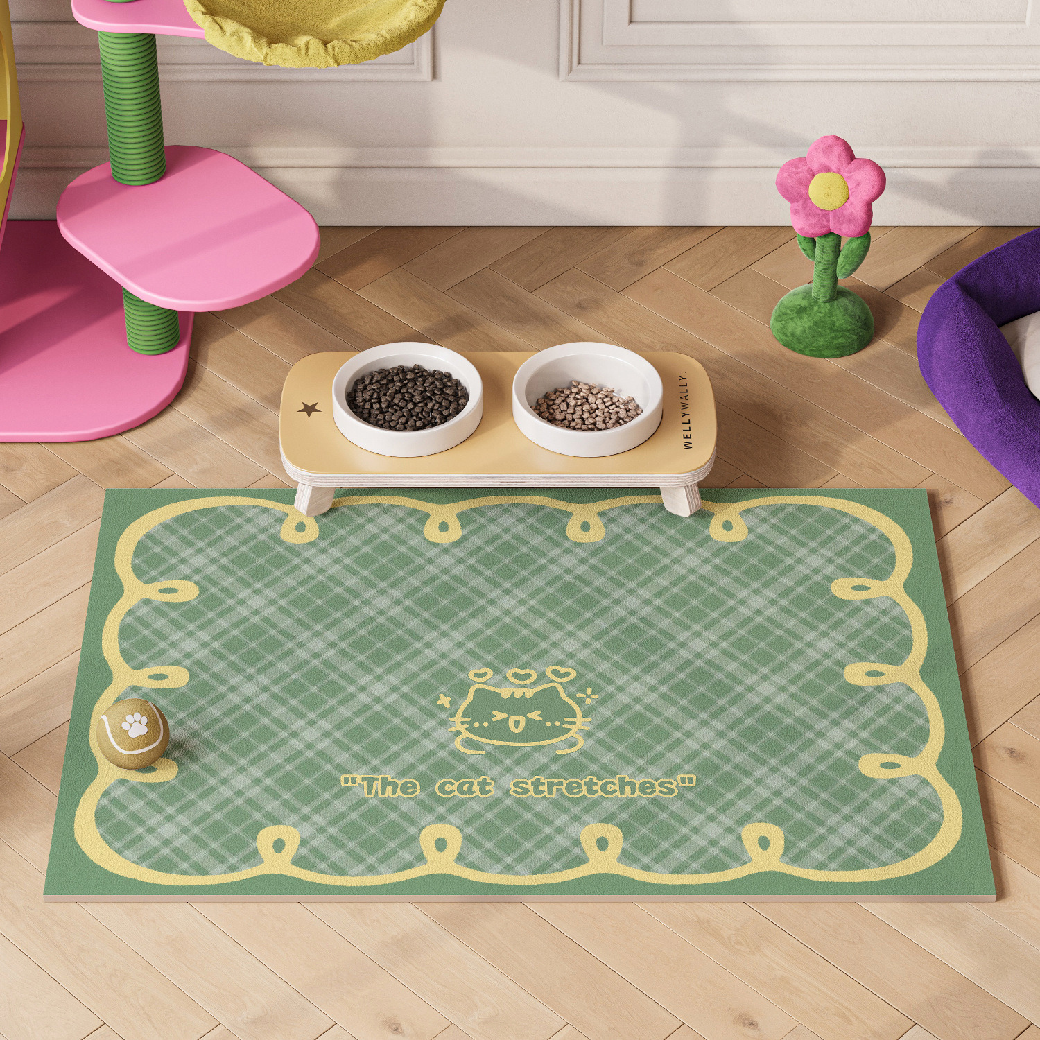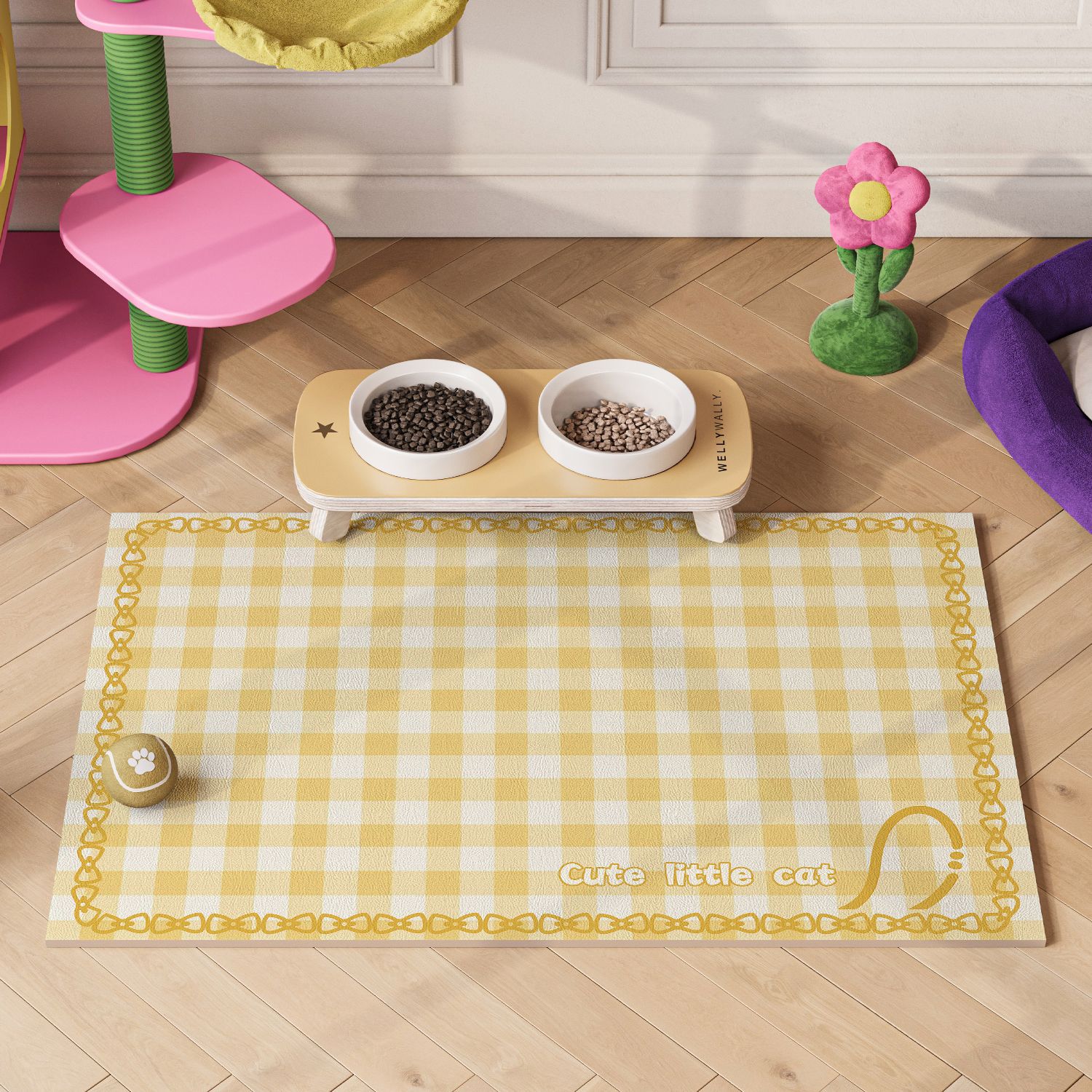 도파민 격자 무늬 방수 애완 동물 먹이 매트, 얼룩 방지 및 관리하기 쉬운 바닥 매트, 만화 장식 바닥 매트, 내마모성 바닥 매트스토어 가기