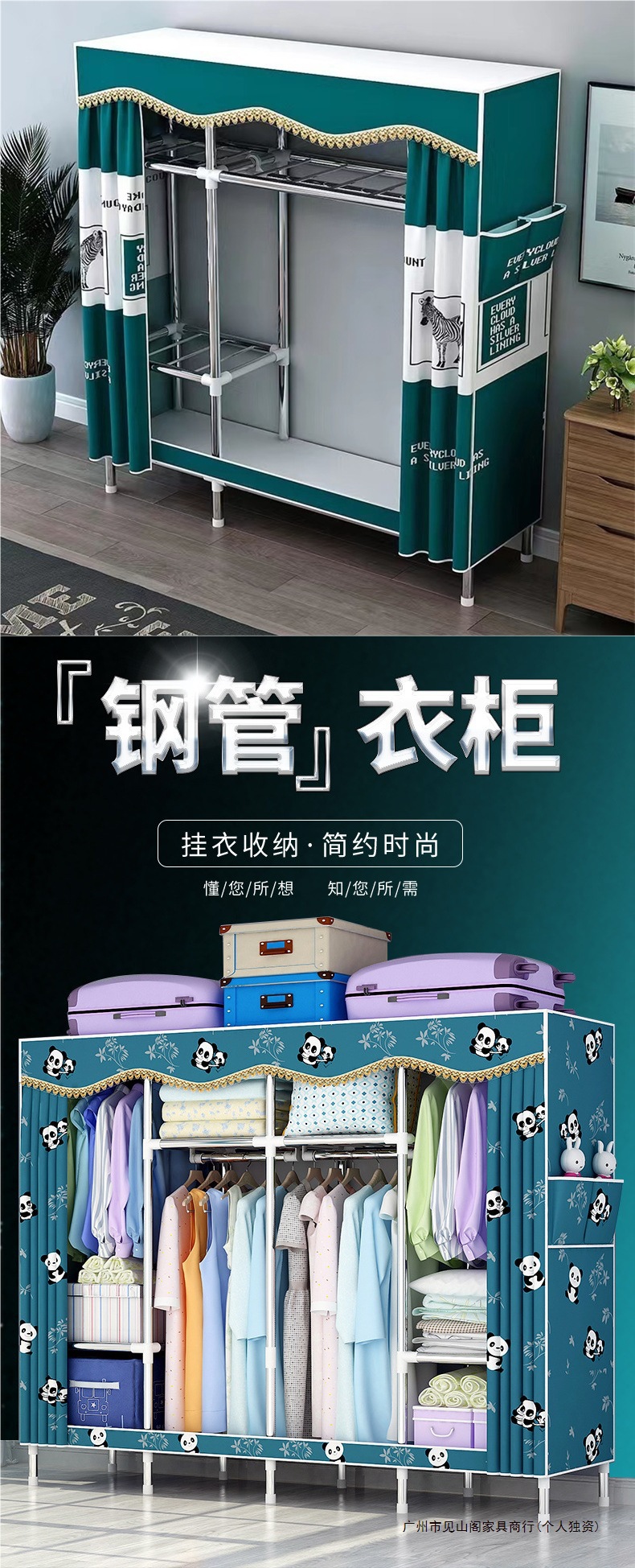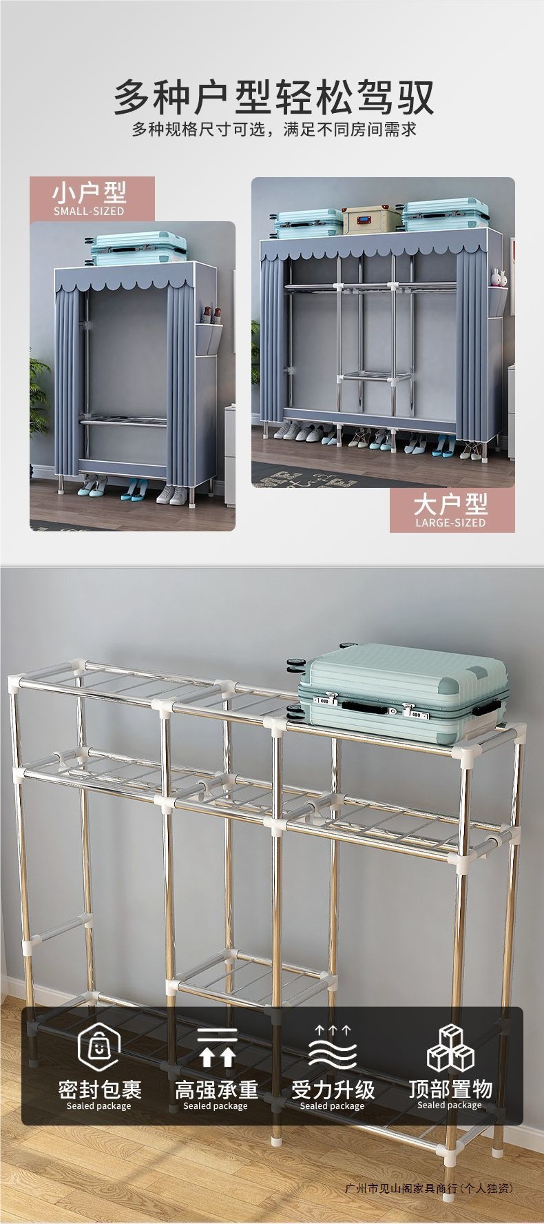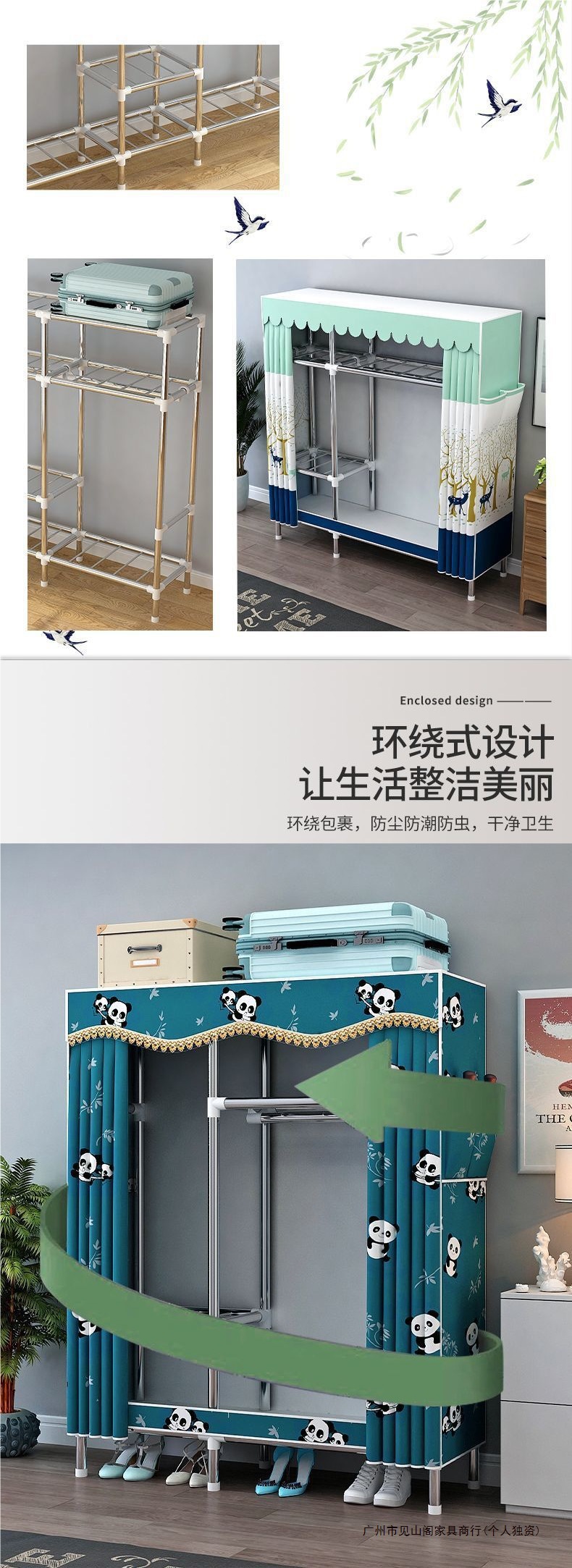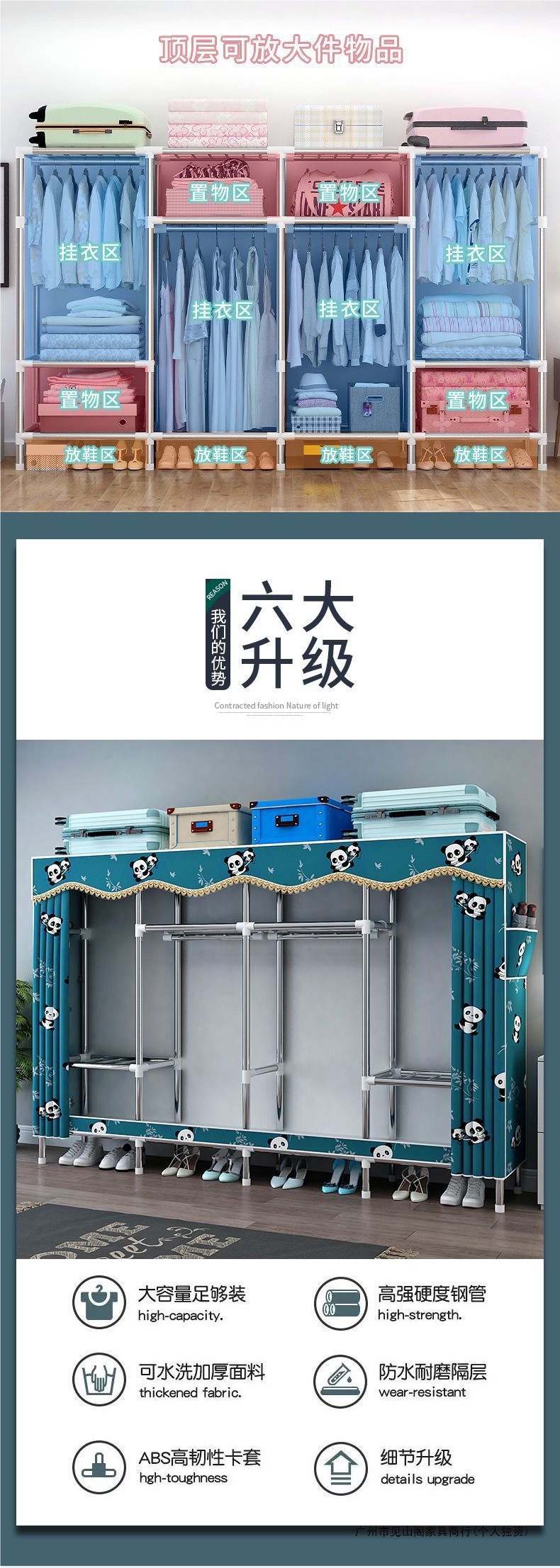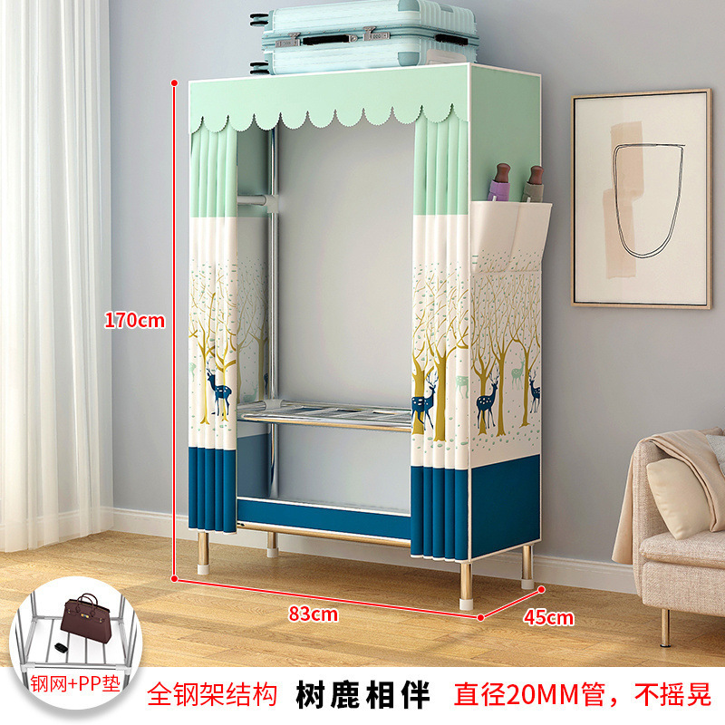간단한 옷장 강철 파이프 천으로 두꺼운 강화 침실 조립 가정용 옷장 임대 룸 옷 보관 선반 무료 배송스토어 가기