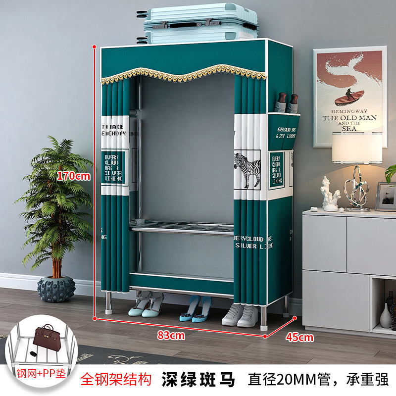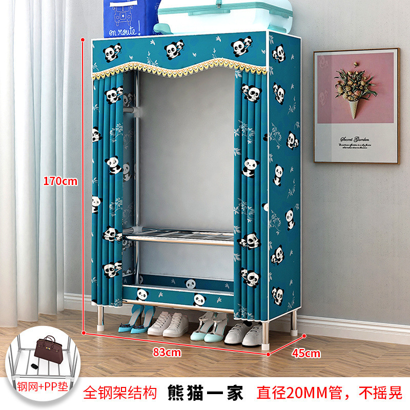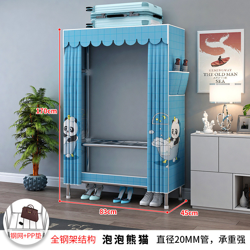 간단한 옷장 강철 파이프 천으로 두꺼운 강화 침실 조립 가정용 옷장 임대 룸 옷 보관 선반 무료 배송