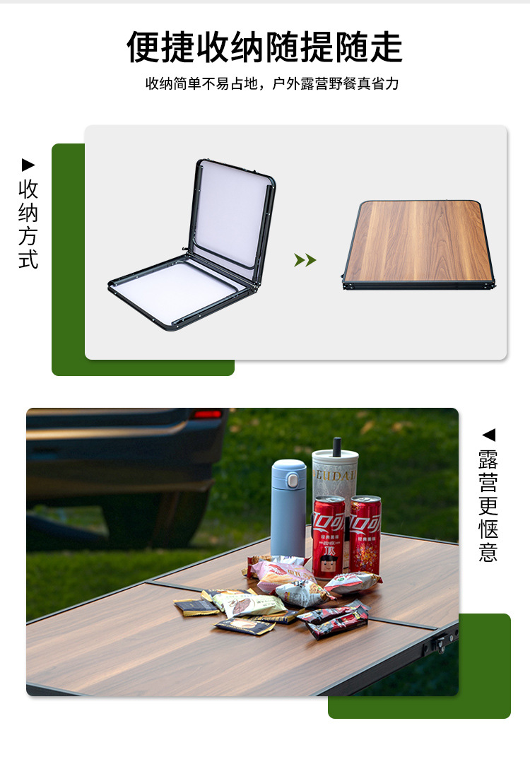 야외 접이식 테이블, 나뭇결 피크닉 테이블, 알루미늄 합금 접이식 캠핑 테이블, 편리한 휴대용 강화 폴리테이블