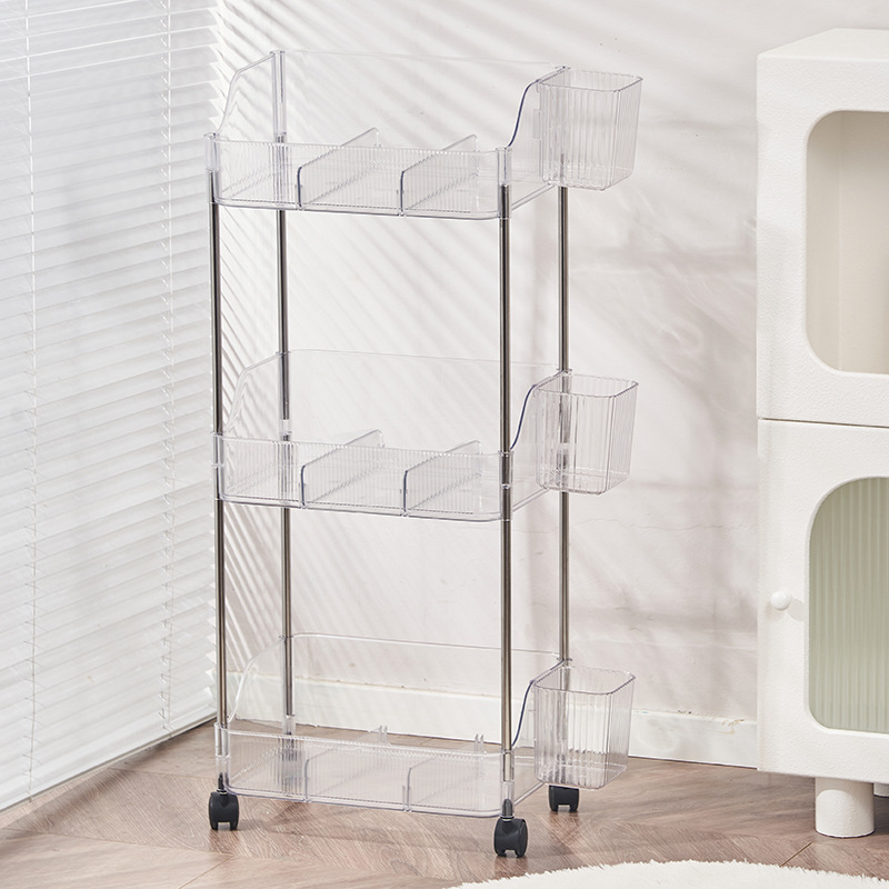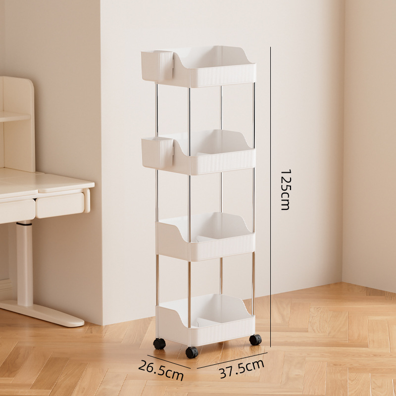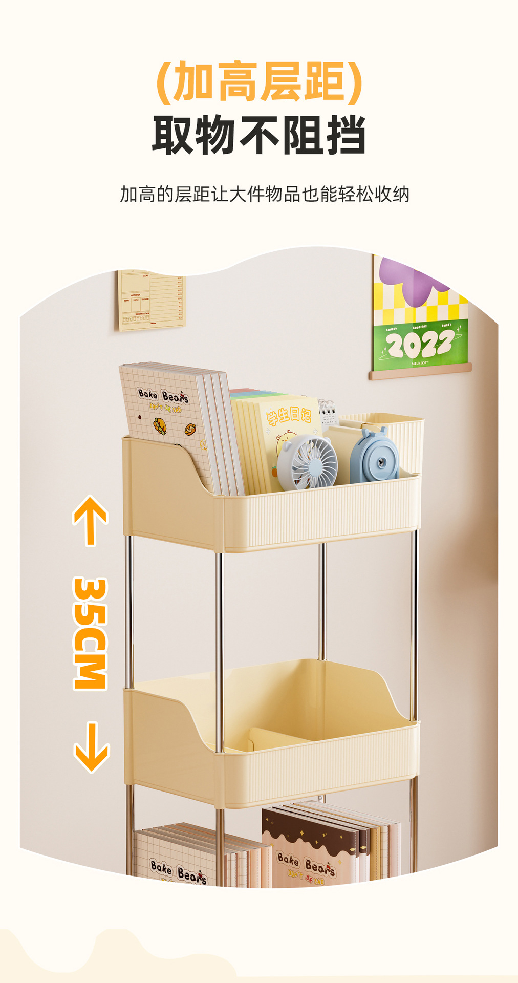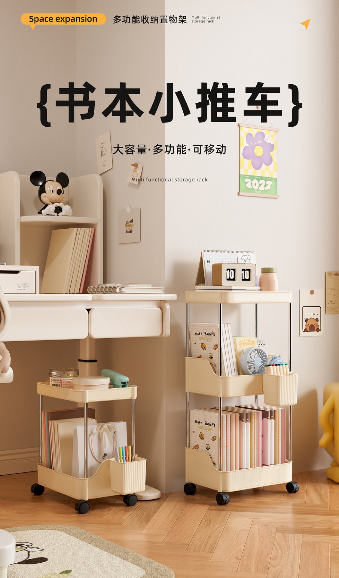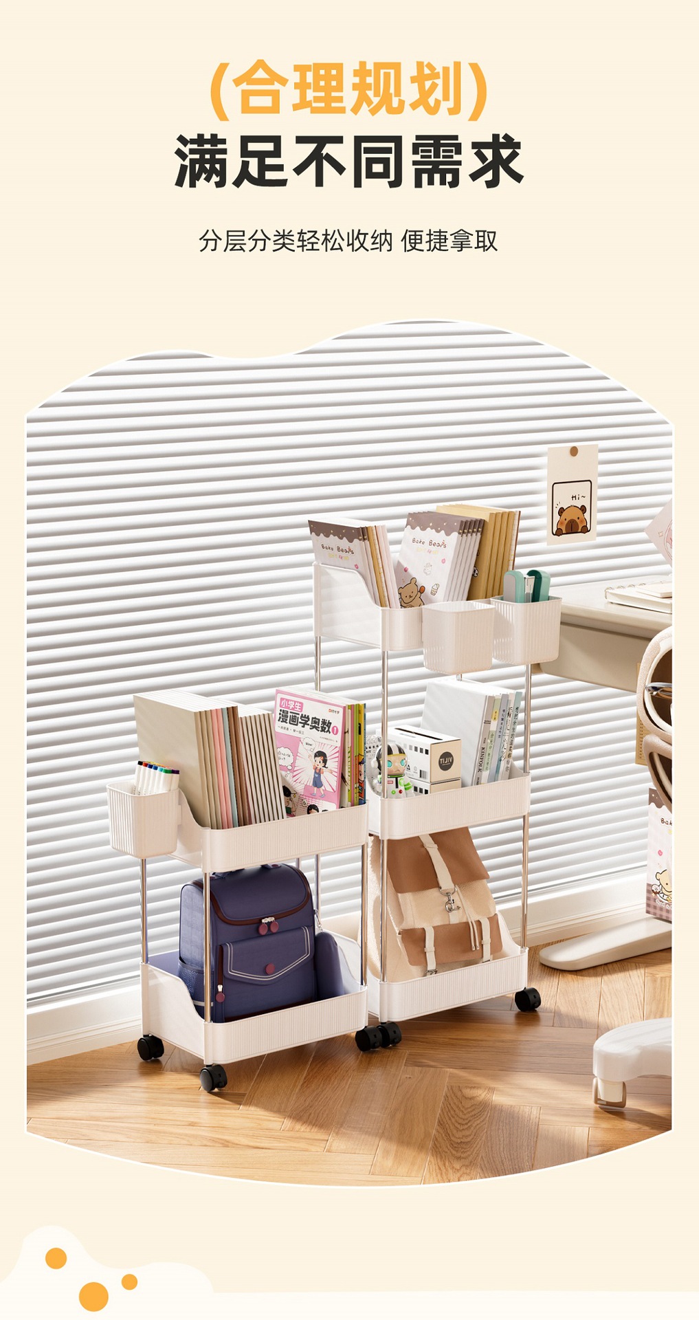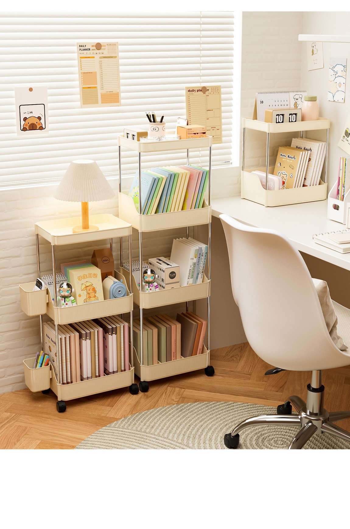 업그레이드된 책상 옆 책장, 분할 가능한 책상 수납 선반, 대형 간격의 다층 책 수납 선반, 이동식 트롤리