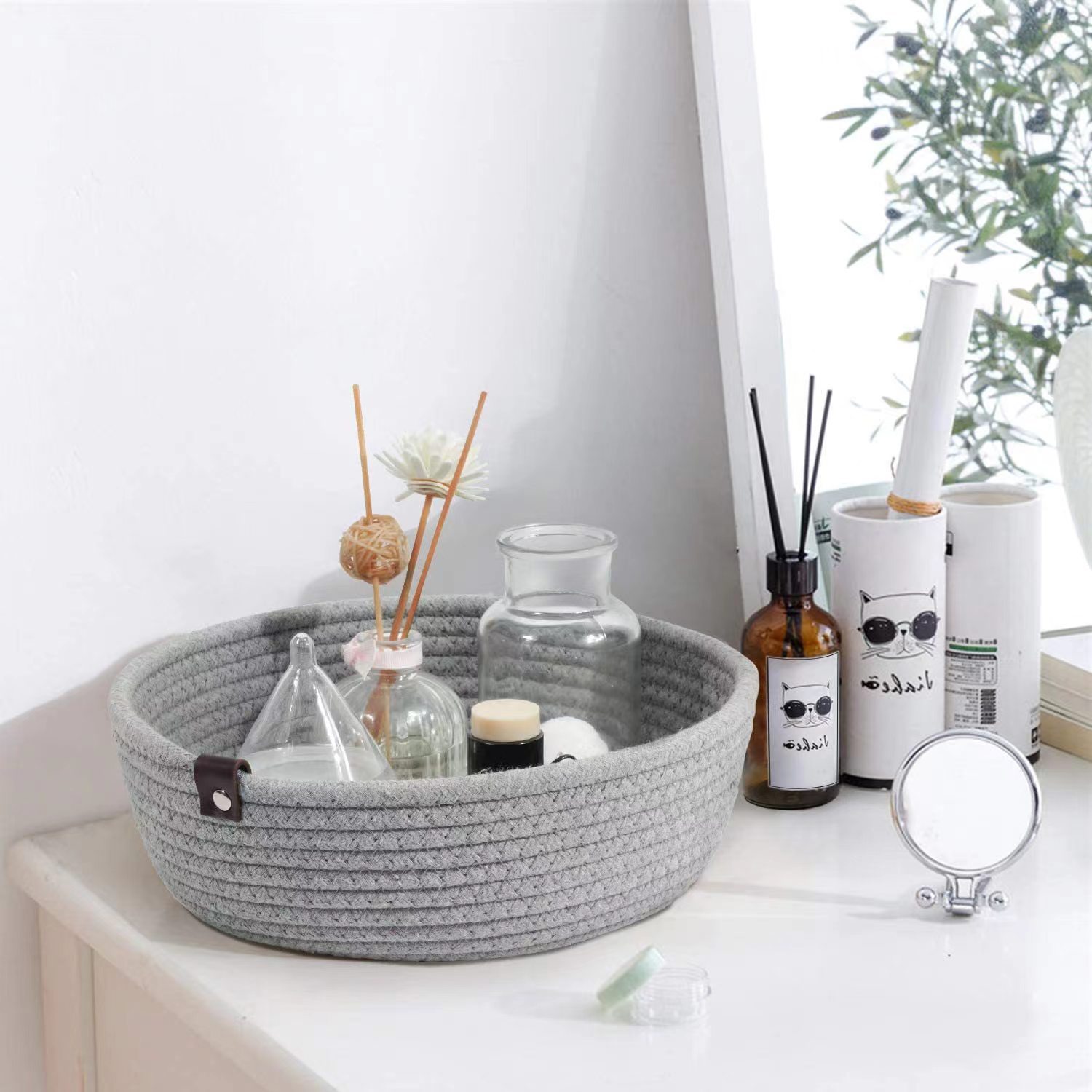면사 손으로 짠 수납바구니 수납바구니 잡화바구니 책수납바구니 간식수납바구니 직조