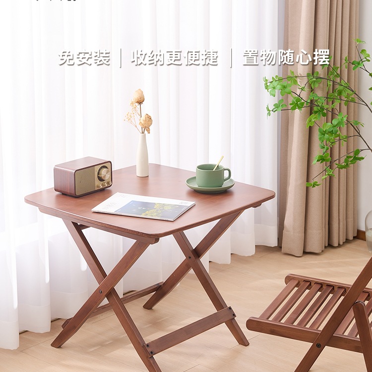 Duluwanshun 접이식 테이블 가정용 소형 대나무 식탁 발코니 티 테이블 작은 사각형 테이블 야외 휴대용 테이블과 의자