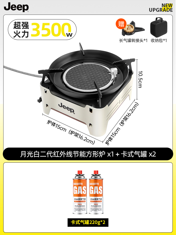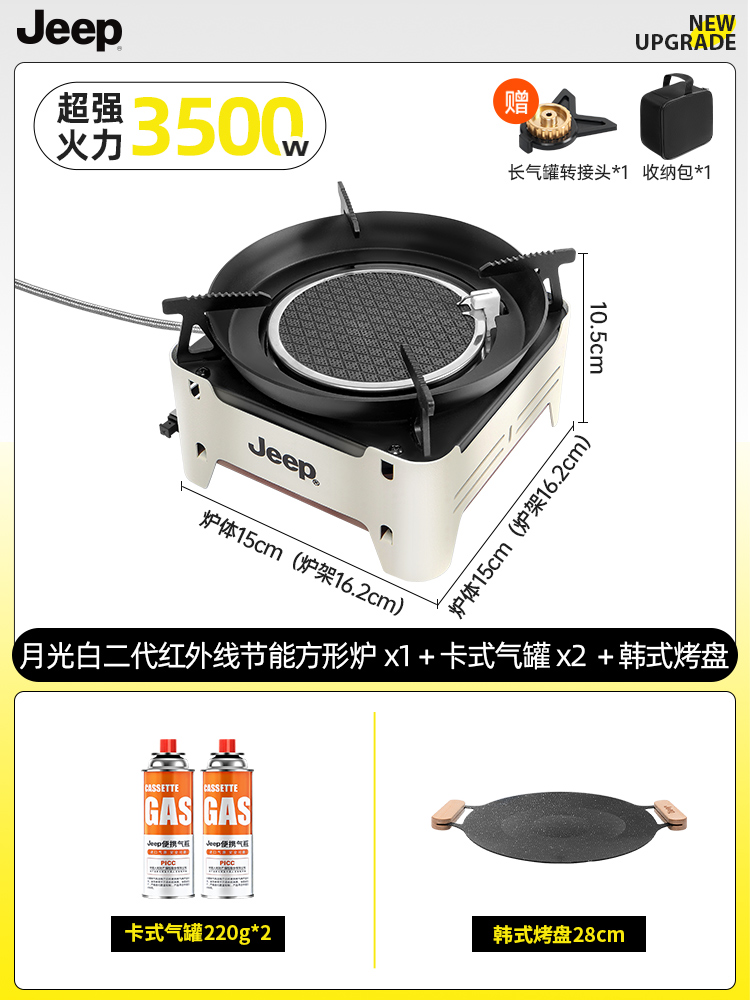 • 방풍 에너지 집약 스토브 [문라이트 화이트] + 카세트 가스 탱크 2병 + 베이킹 팬