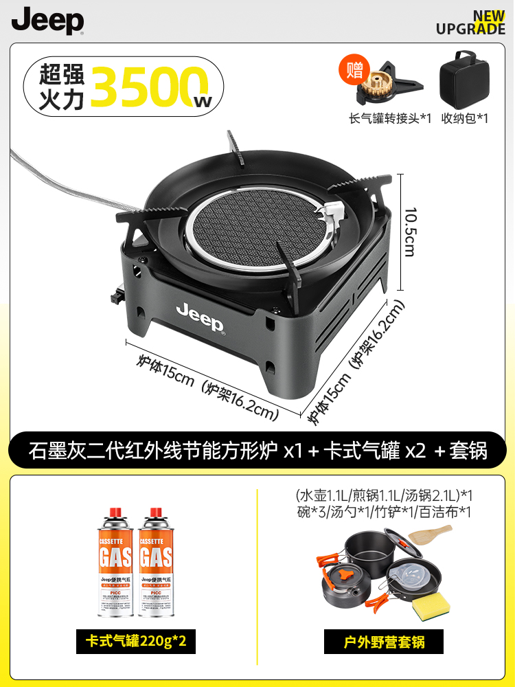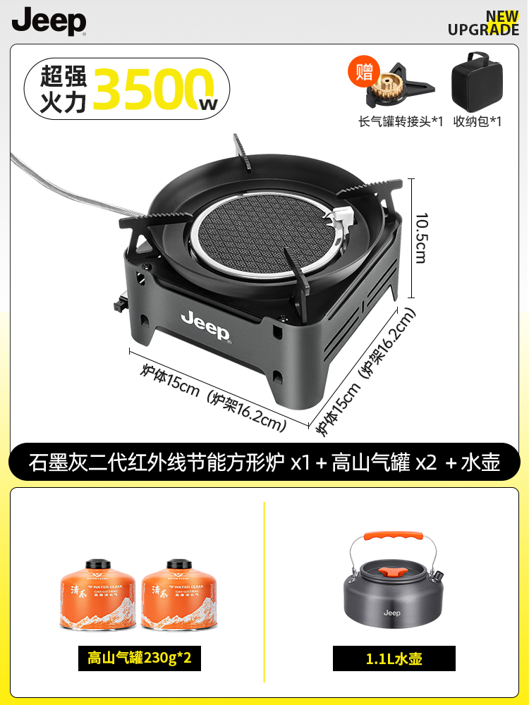• 방풍 에너지 집약 스토브 [그래파이트 그레이] + 카세트 가스 탱크 2병 + 주전자