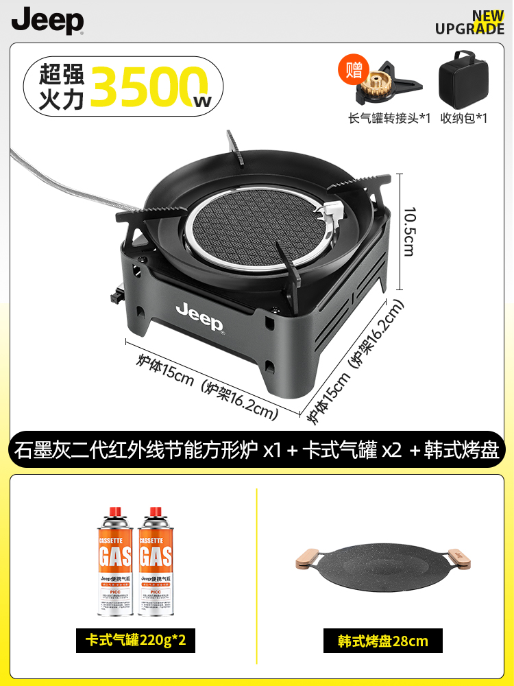 • 방풍 에너지 수집 스토브 [그래파이트 그레이] + 카세트 가스 탱크 2병 + 베이킹 팬