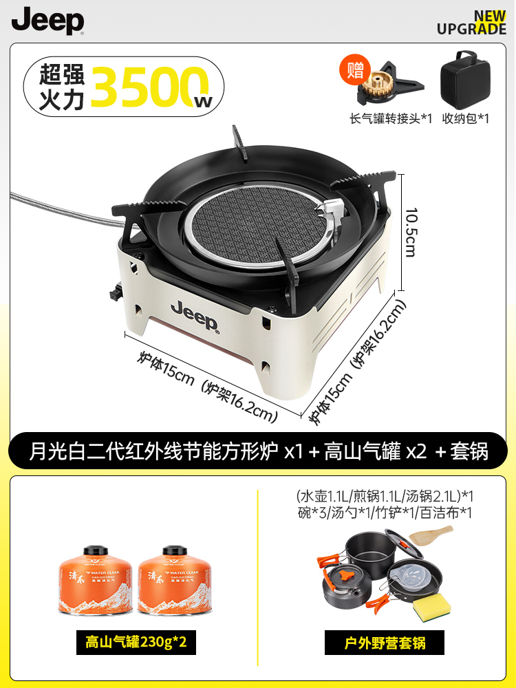 • 방풍 에너지 수집 스토브 [문라이트 화이트] + 알파인 가스 탱크 2병 + 베이킹 팬