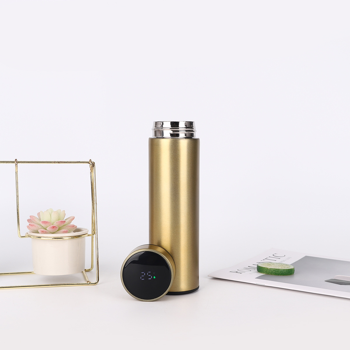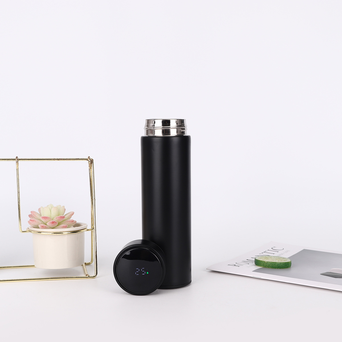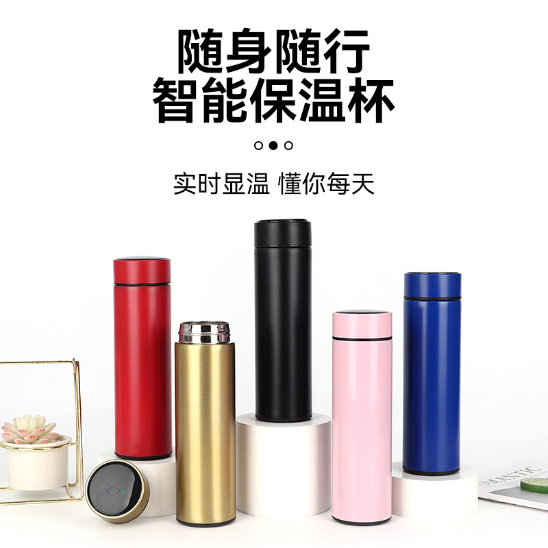 공장 직송 스마트 304 스테인리스 온도 표시 로고 인쇄 비즈니스 사무실 보온병 휴대용 차컵
