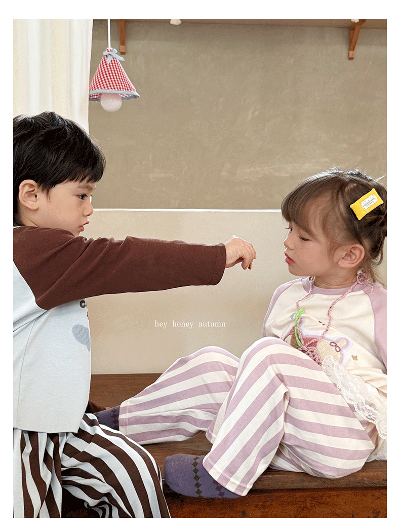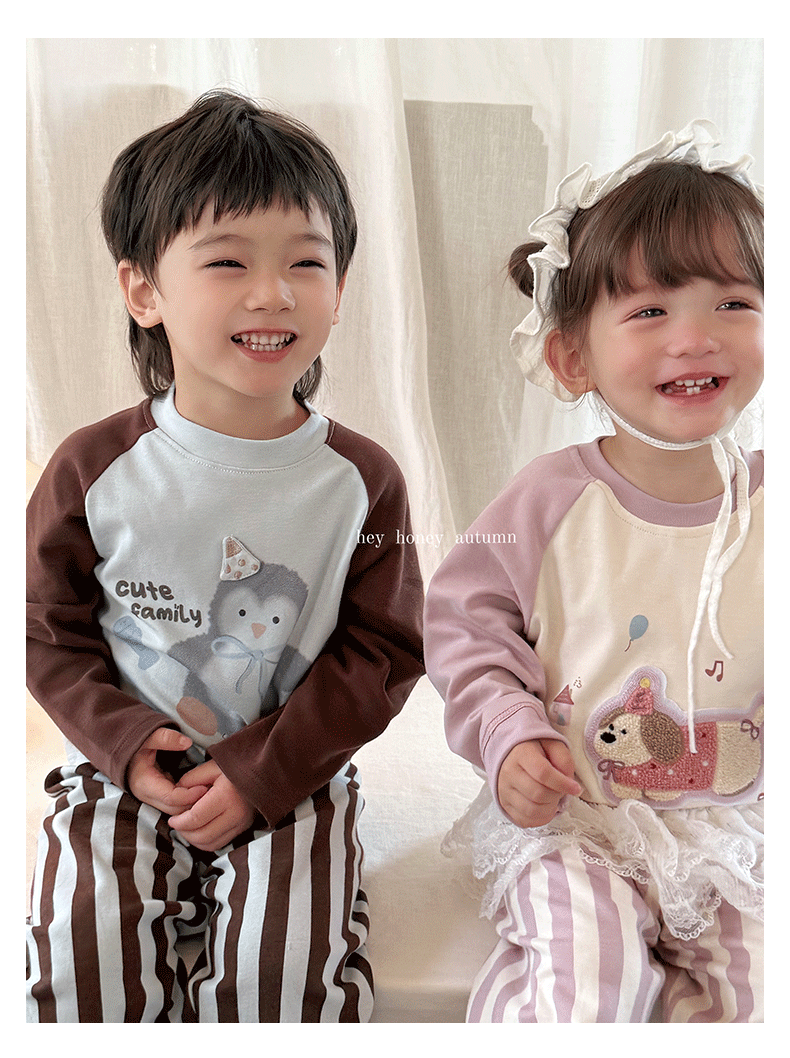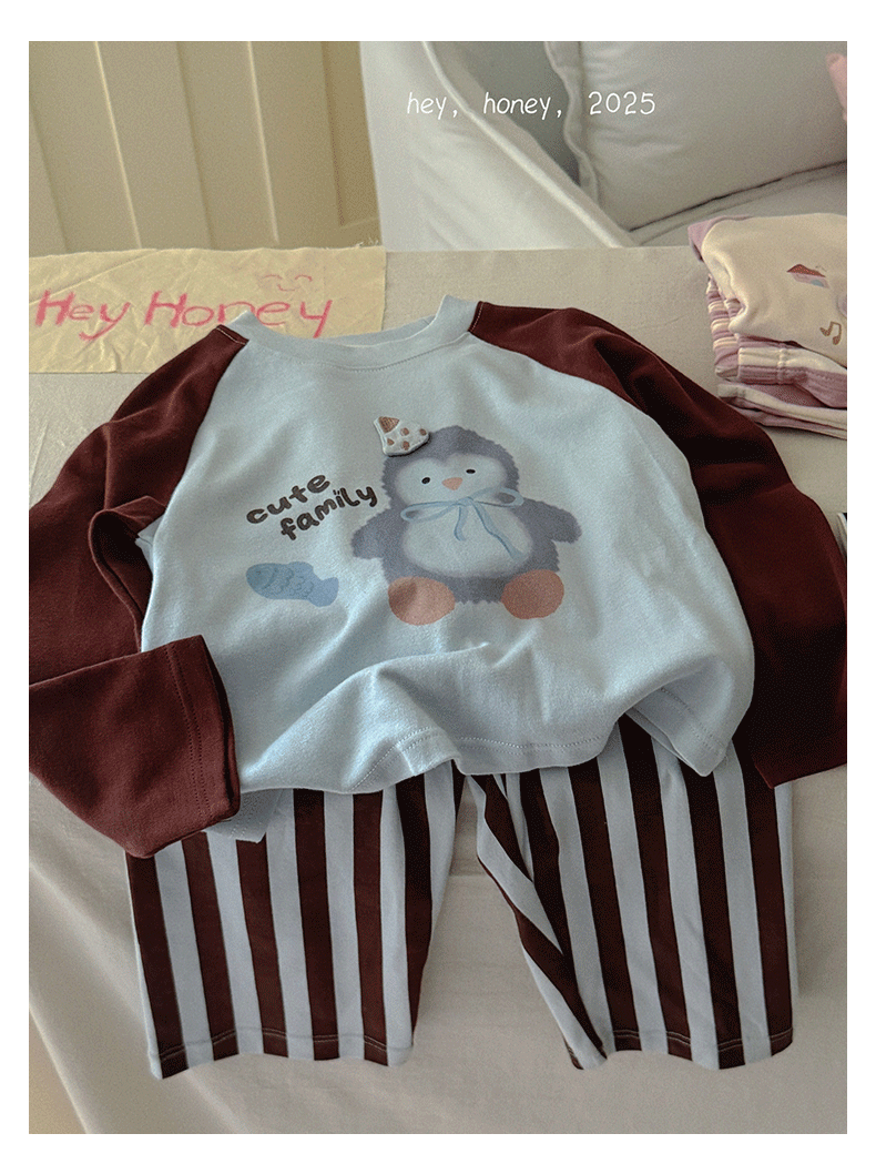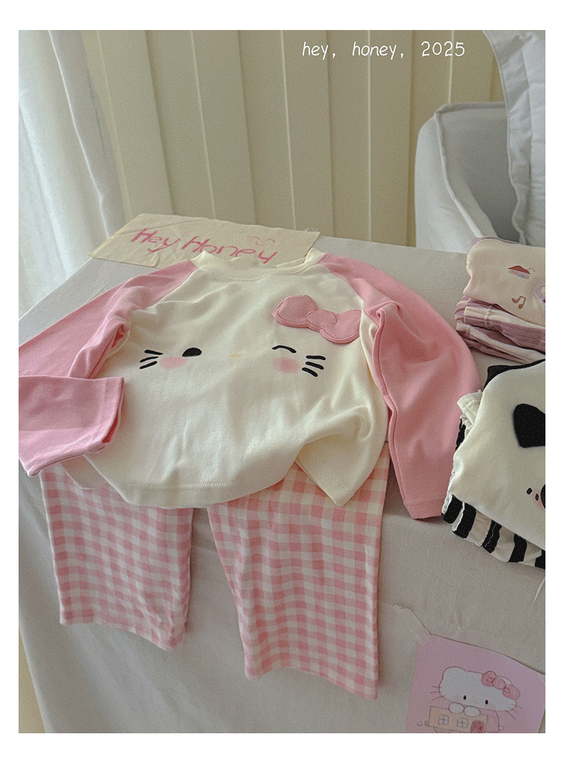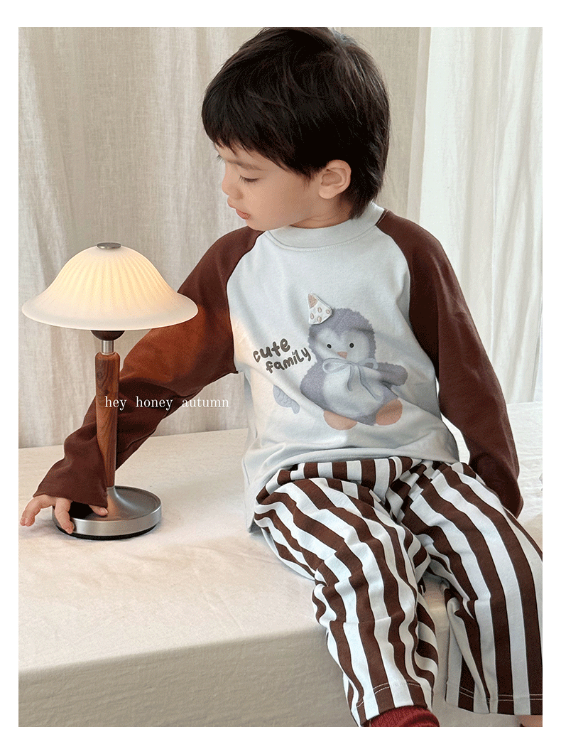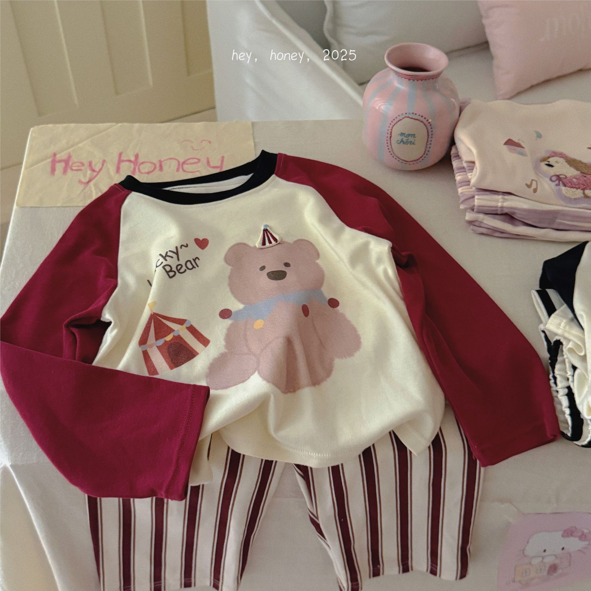 크고 작은 어린이 가정 의류 세트 가을 새로운 대비 색상 라글란 슬리브 만화 면화 잠옷 및 잠옷 투피스 세트스토어 가기