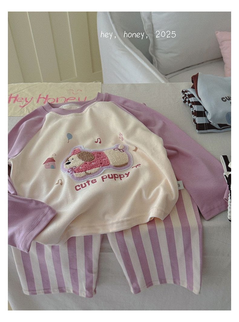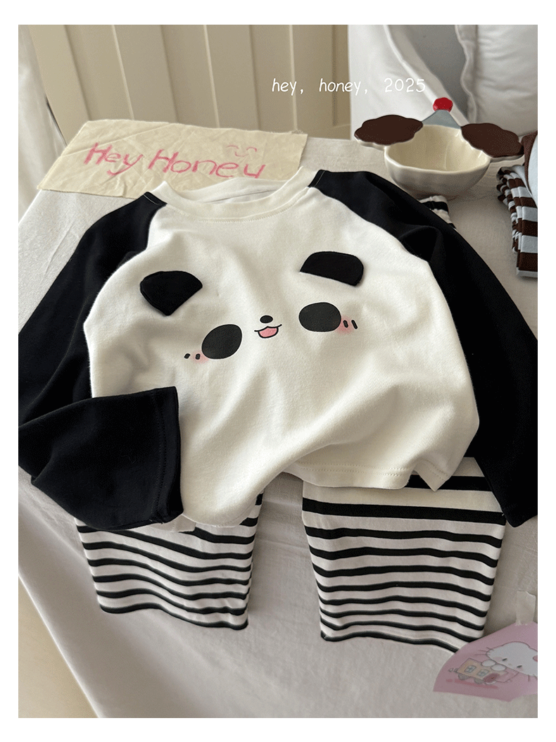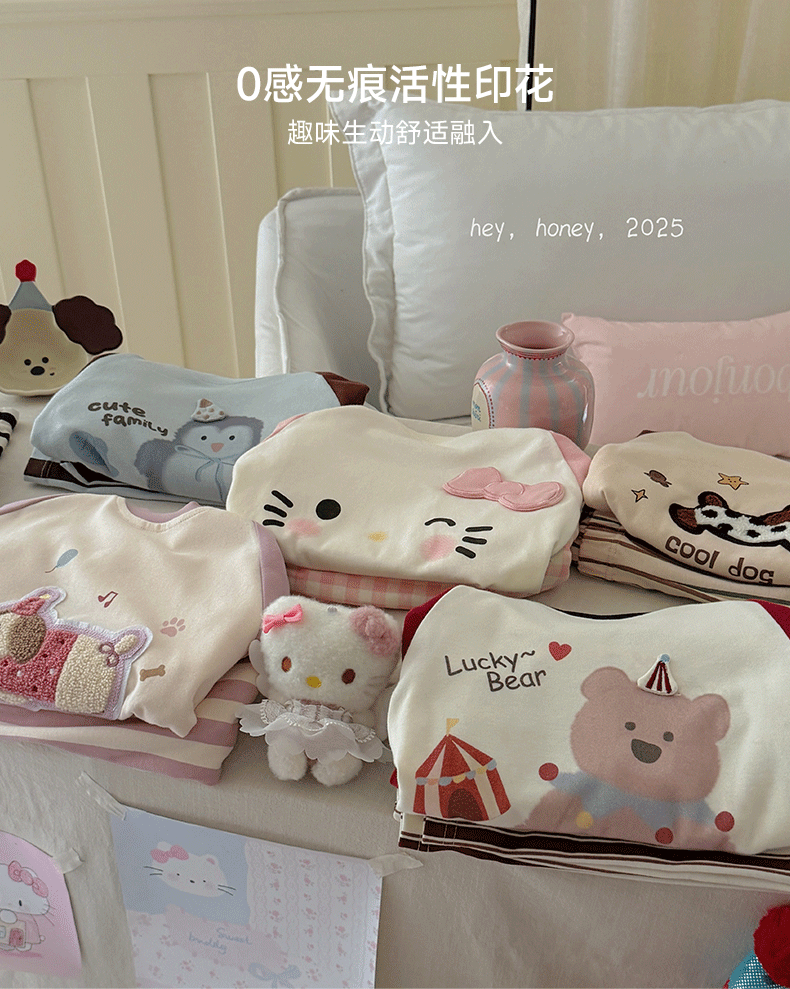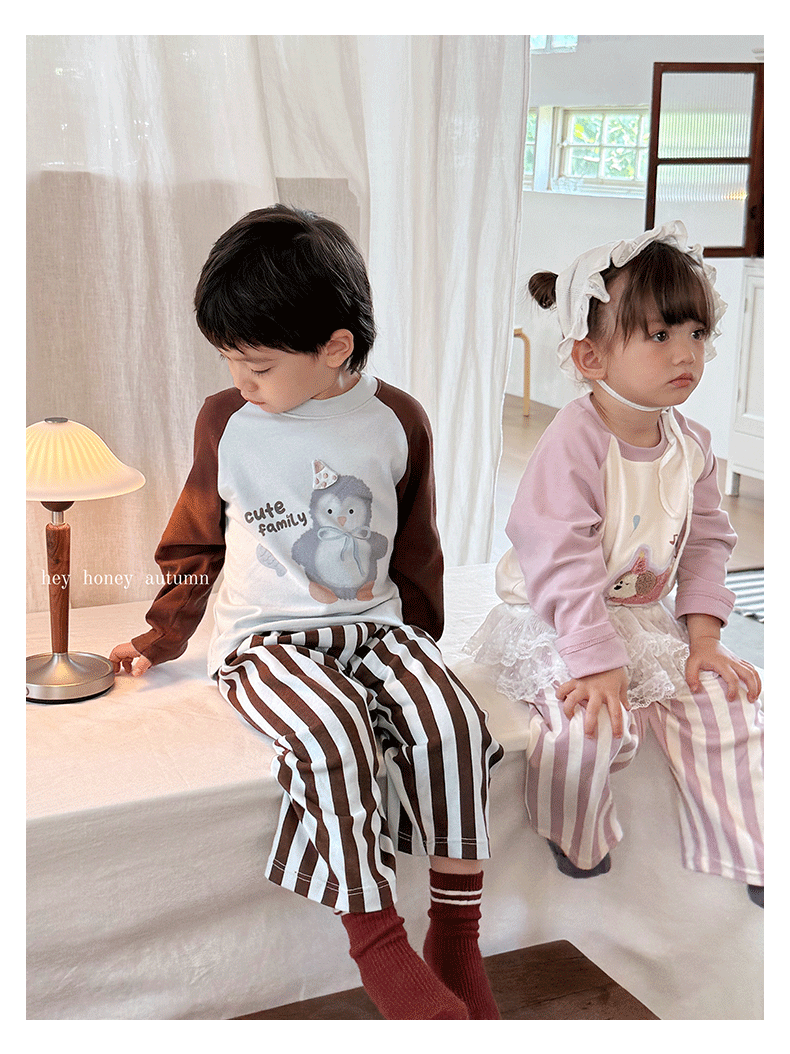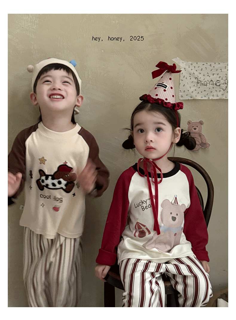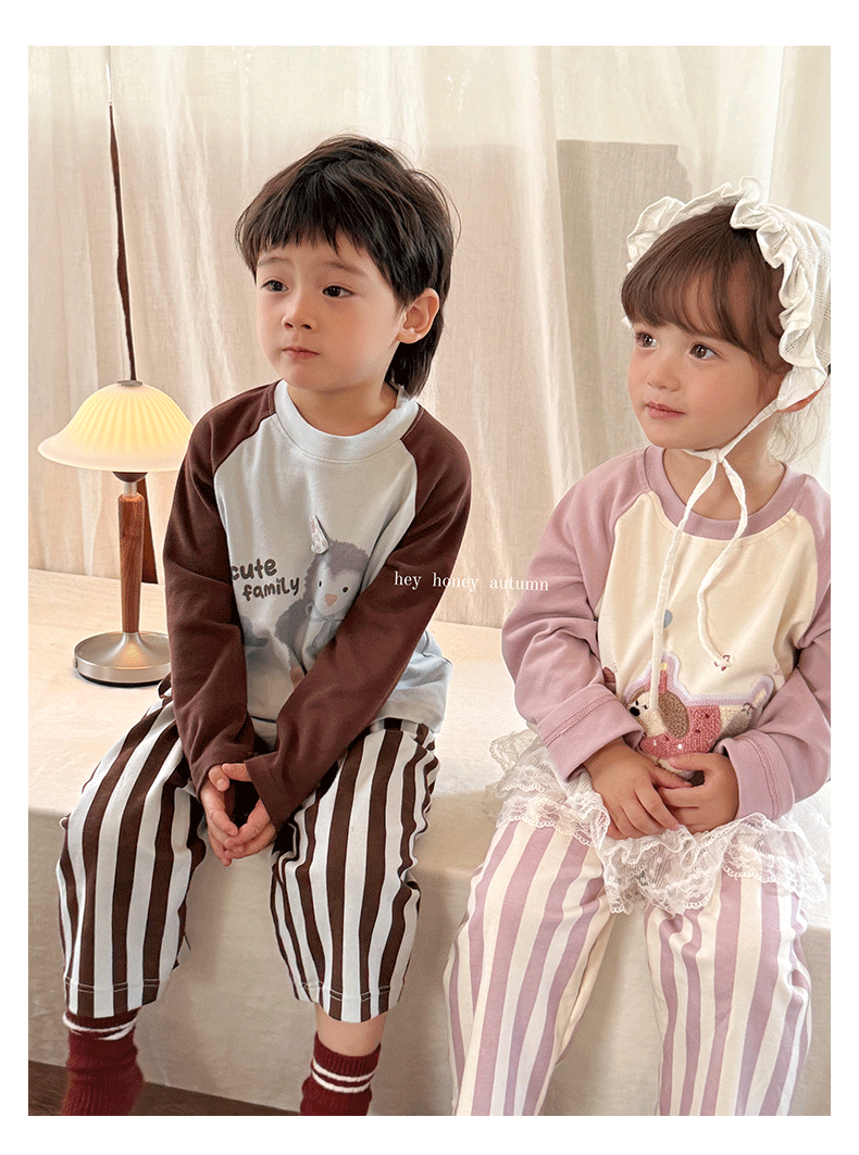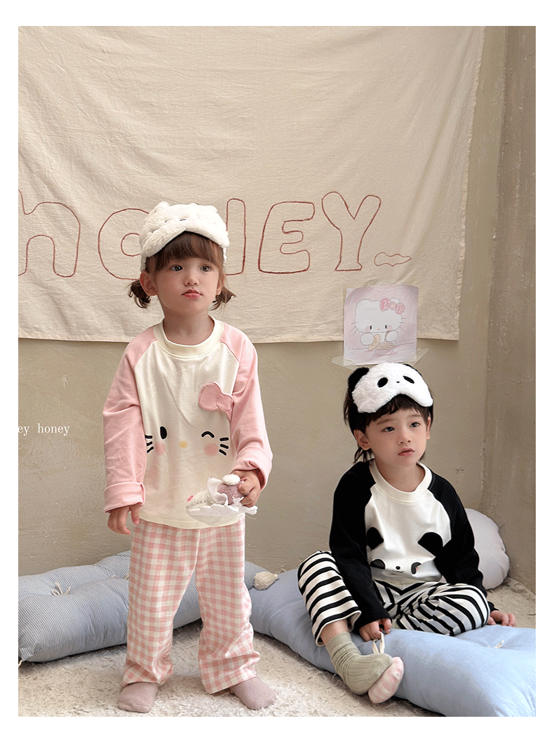 크고 작은 어린이 가정 의류 세트 가을 새로운 대비 색상 라글란 슬리브 만화 면화 잠옷 및 잠옷 투피스 세트스토어 가기