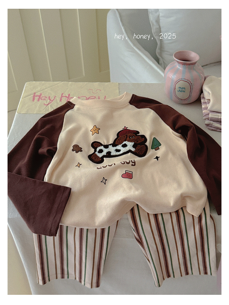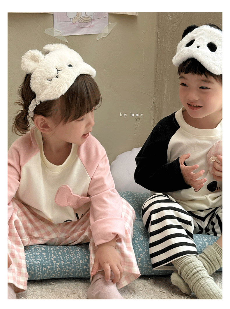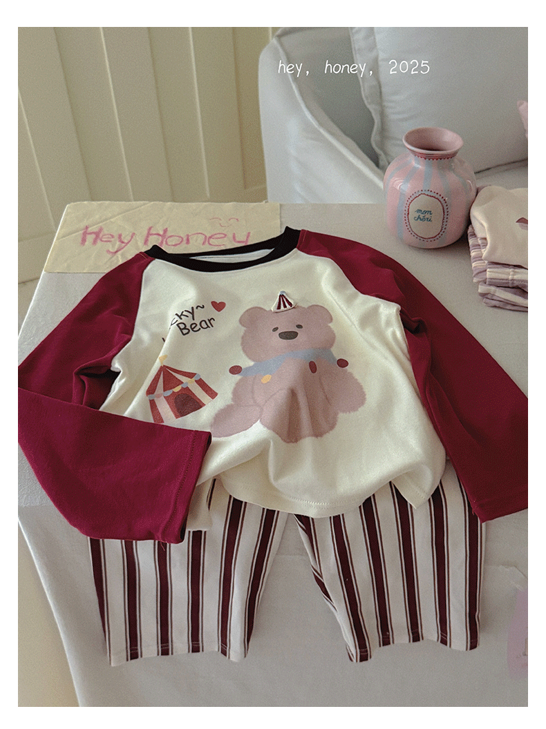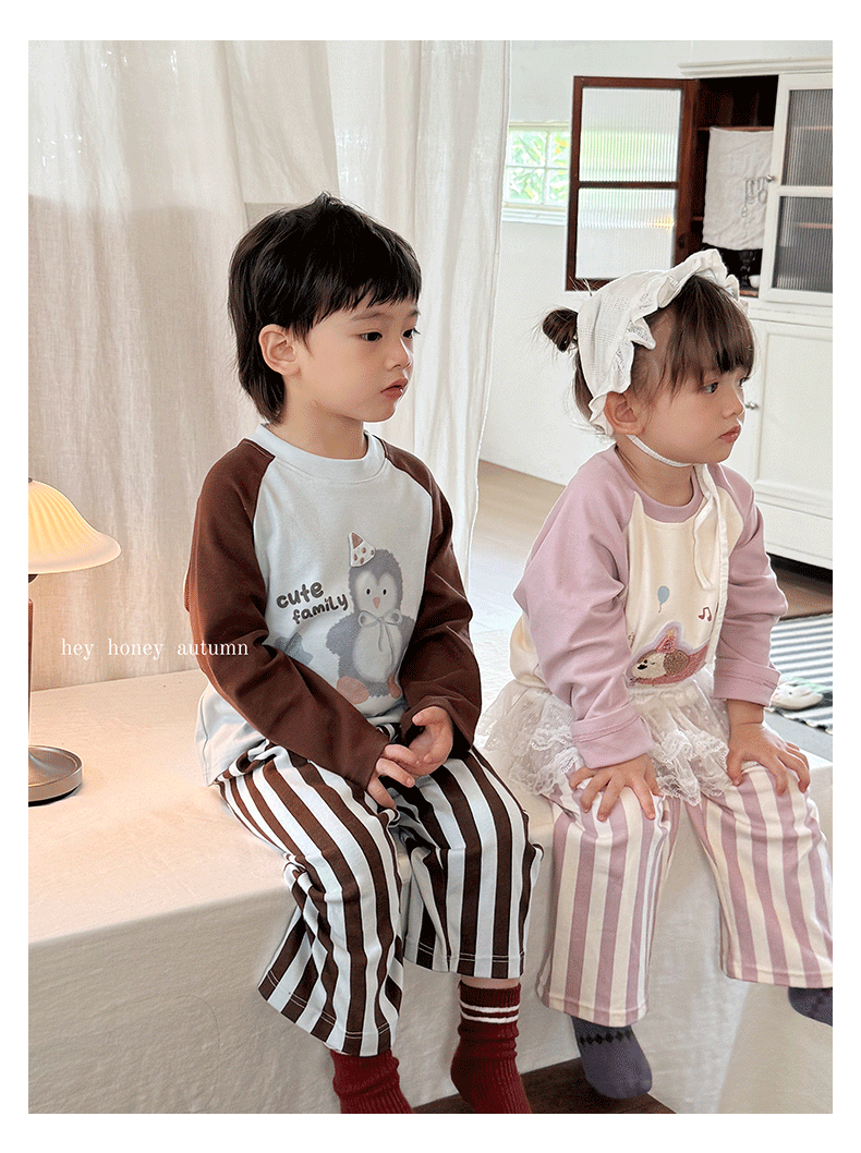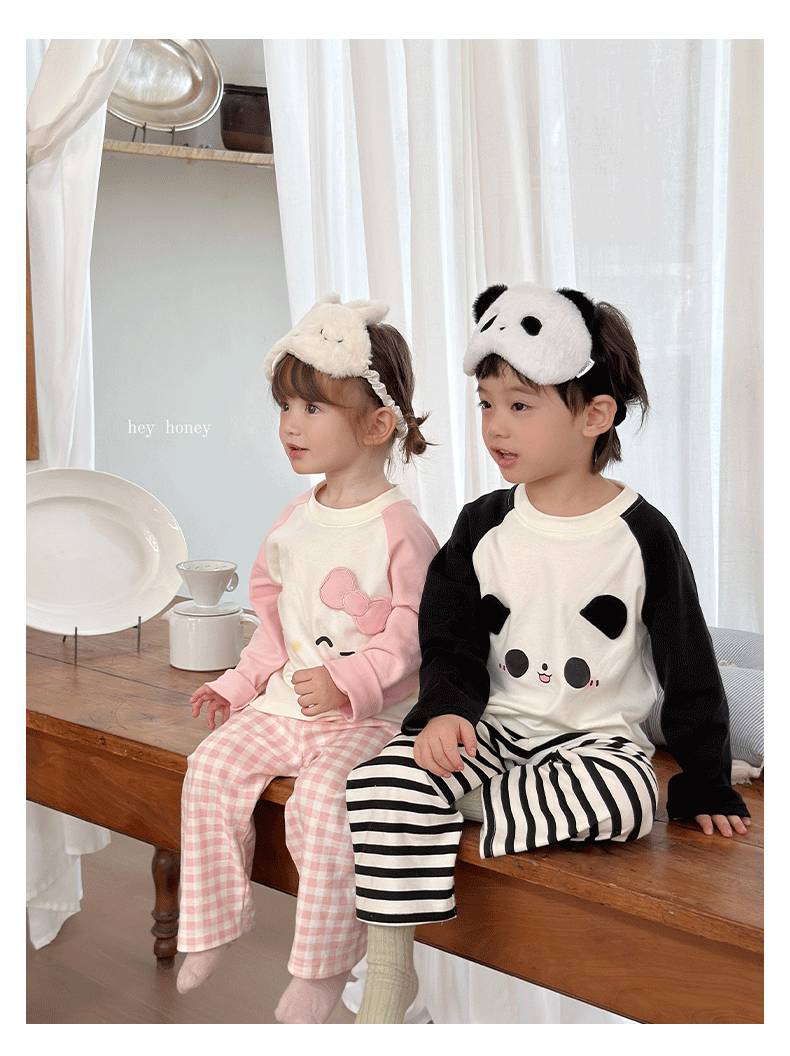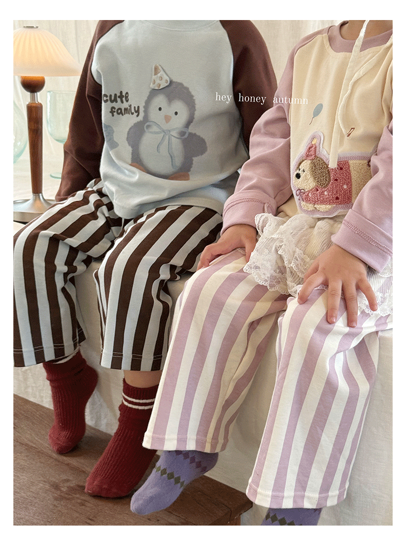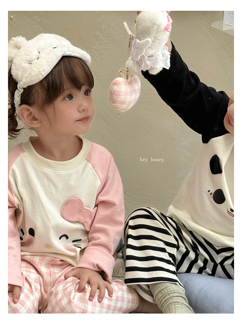 크고 작은 어린이 가정 의류 세트 가을 새로운 대비 색상 라글란 슬리브 만화 면화 잠옷 및 잠옷 투피스 세트스토어 가기