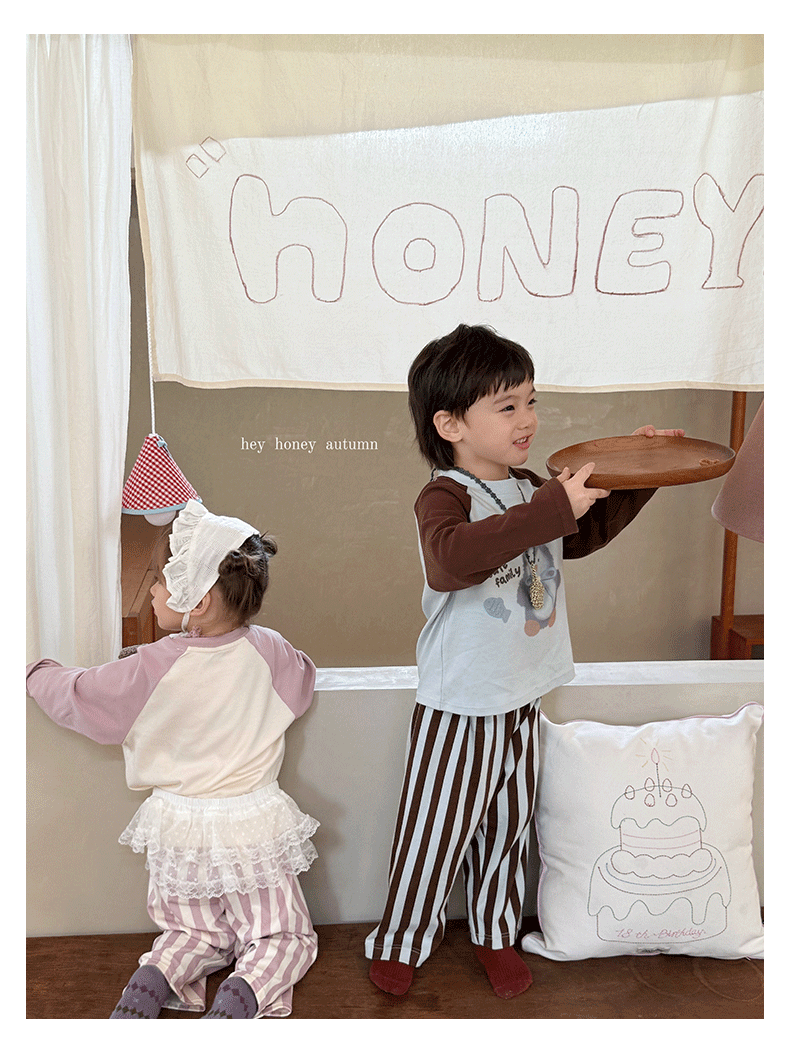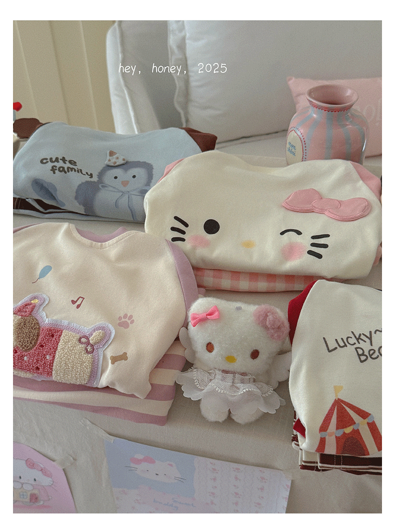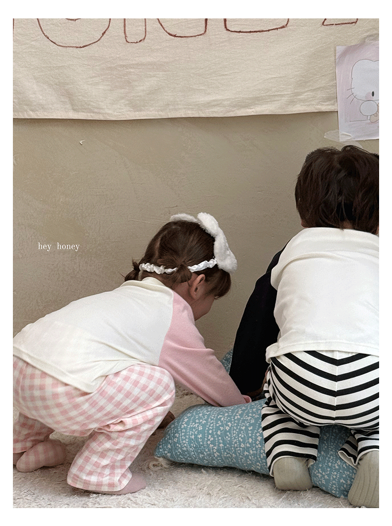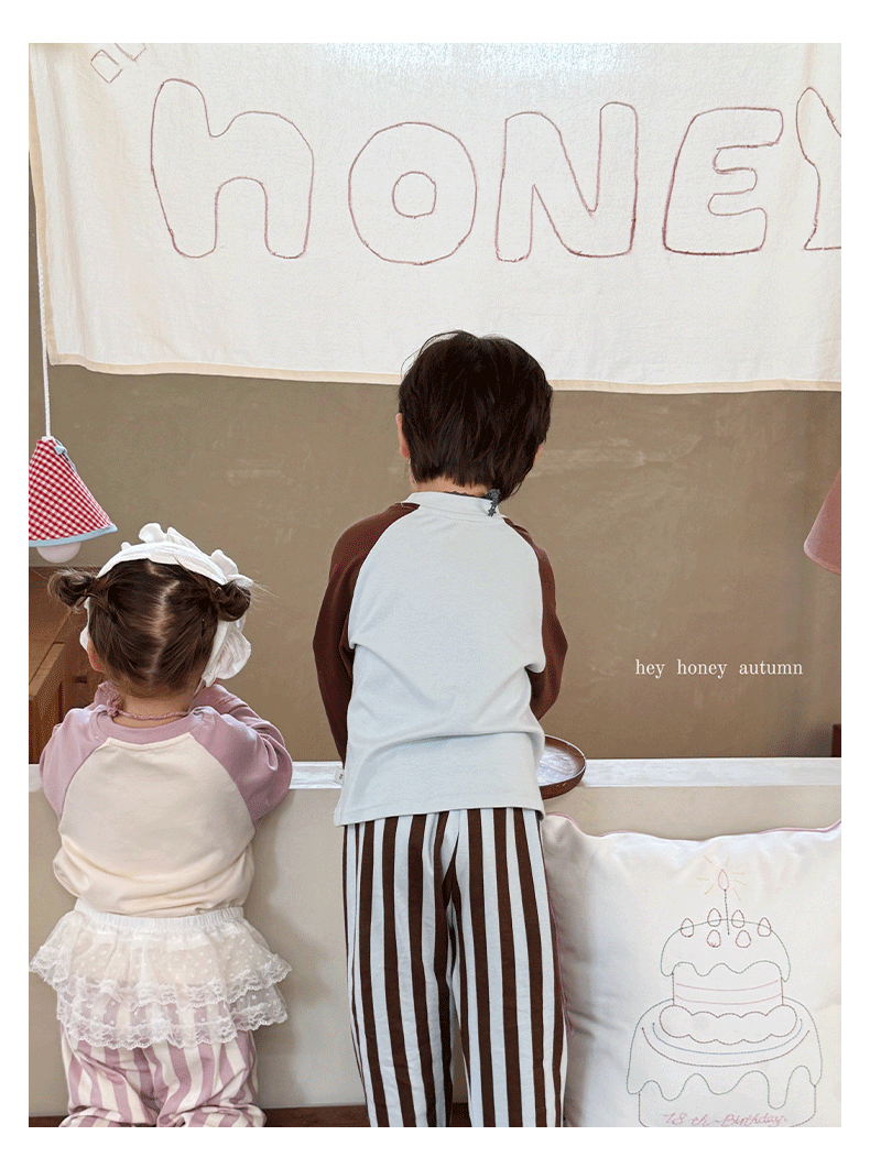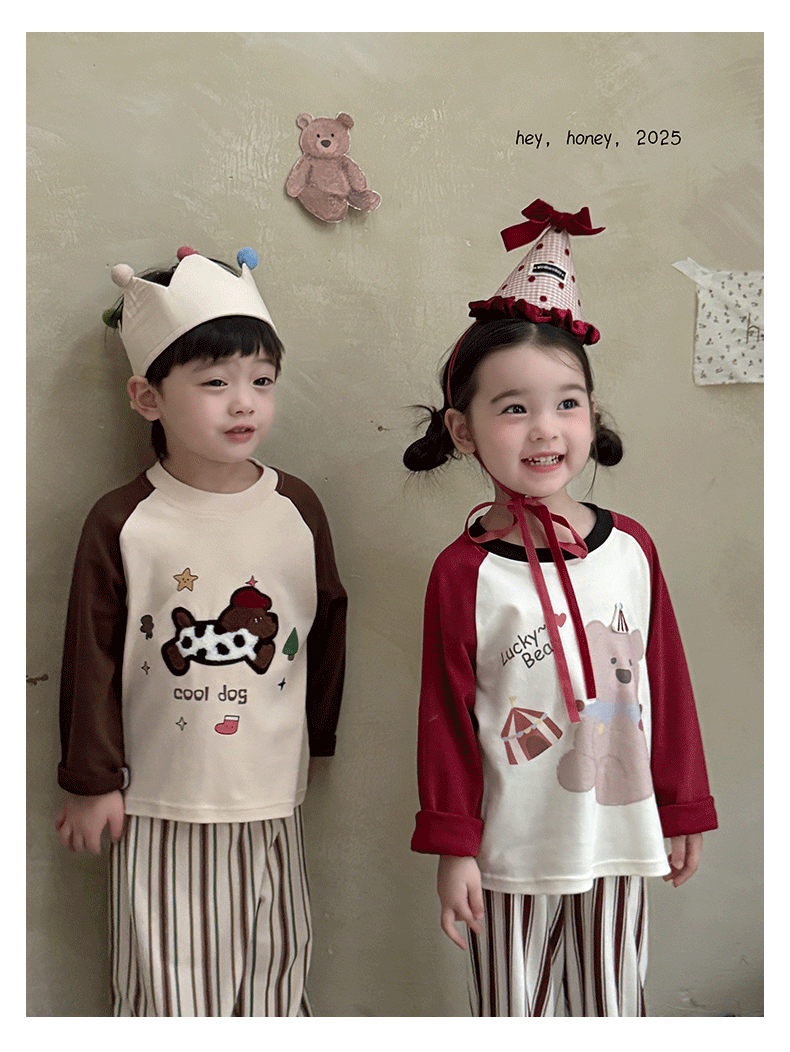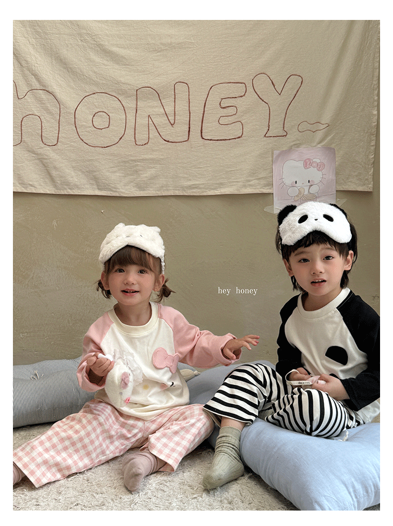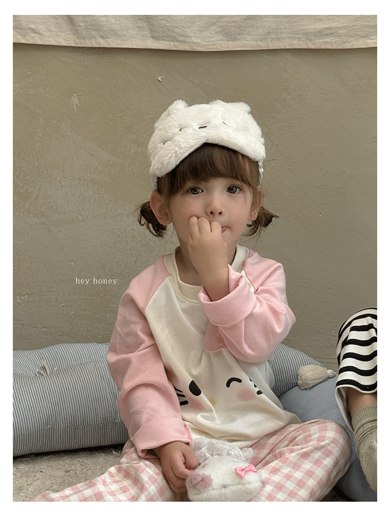 크고 작은 어린이 가정 의류 세트 가을 새로운 대비 색상 라글란 슬리브 만화 면화 잠옷 및 잠옷 투피스 세트스토어 가기
