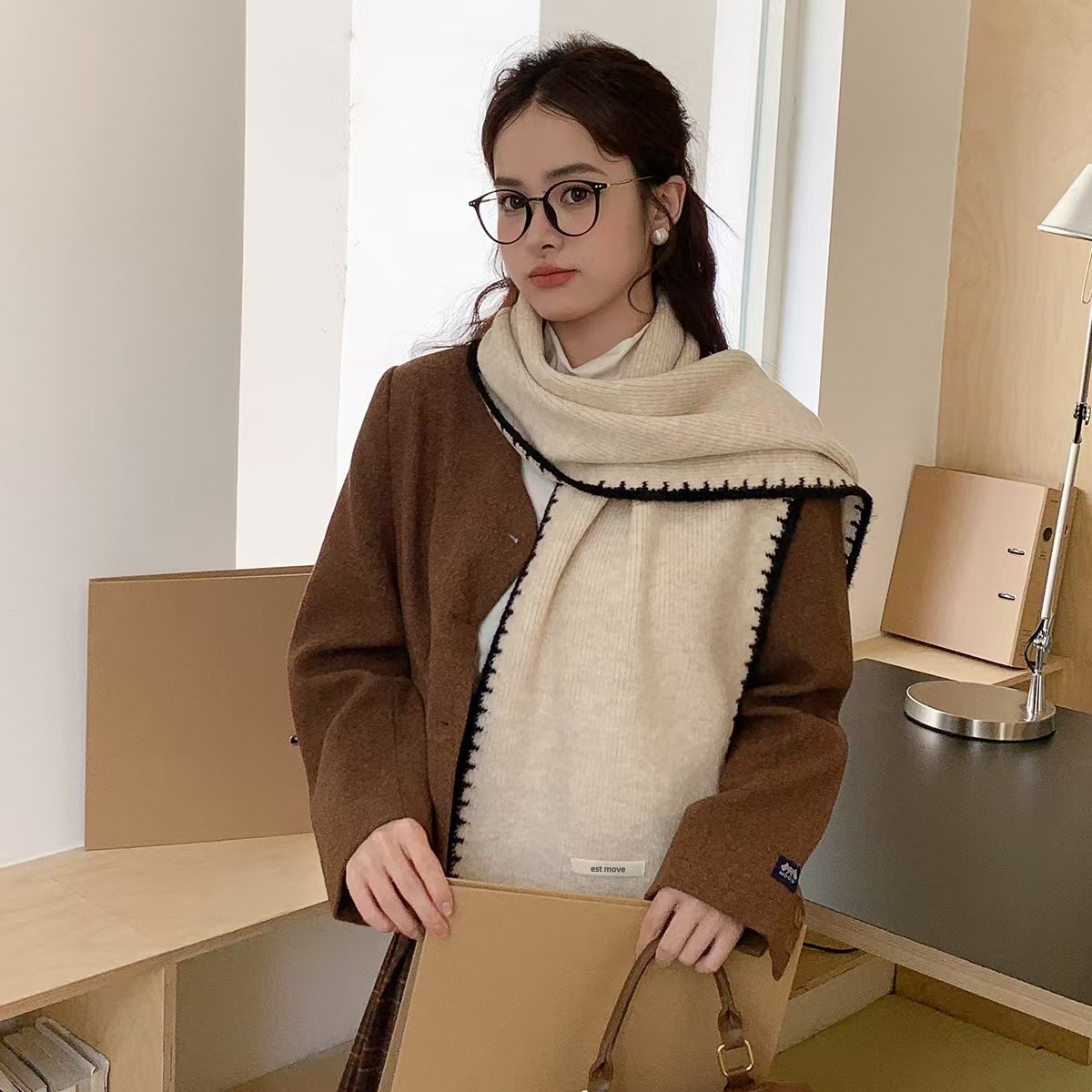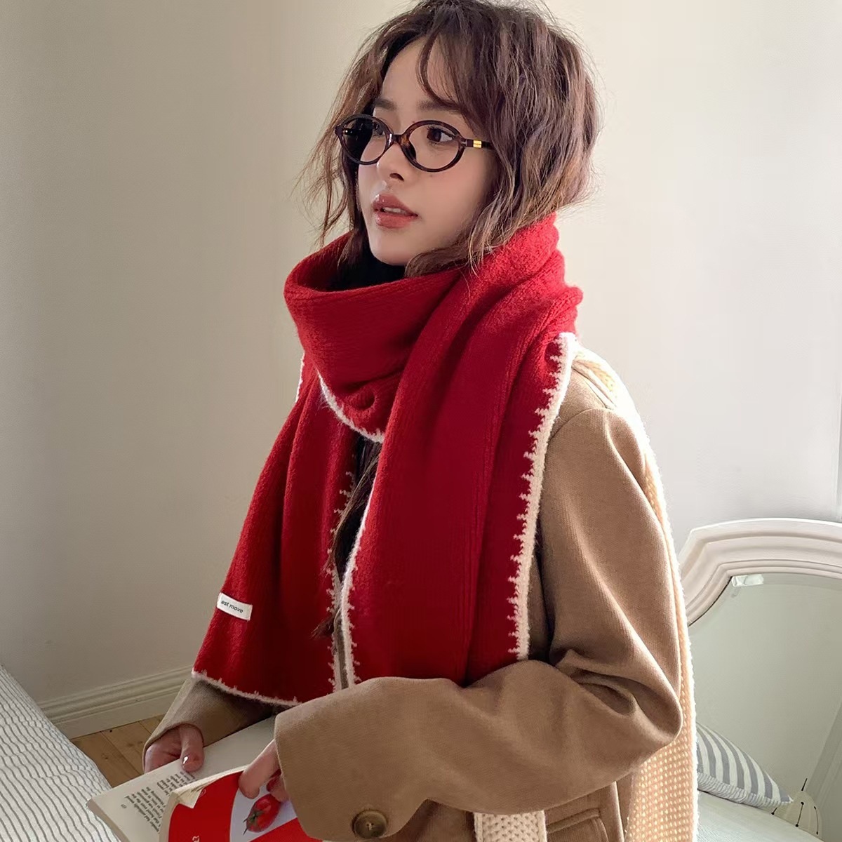 스카프 겨울 새로운 분위기 테두리 니트 울 숄 틈새 디자인 소년과 소녀 커플을 위한 다용도 스카프스토어 가기