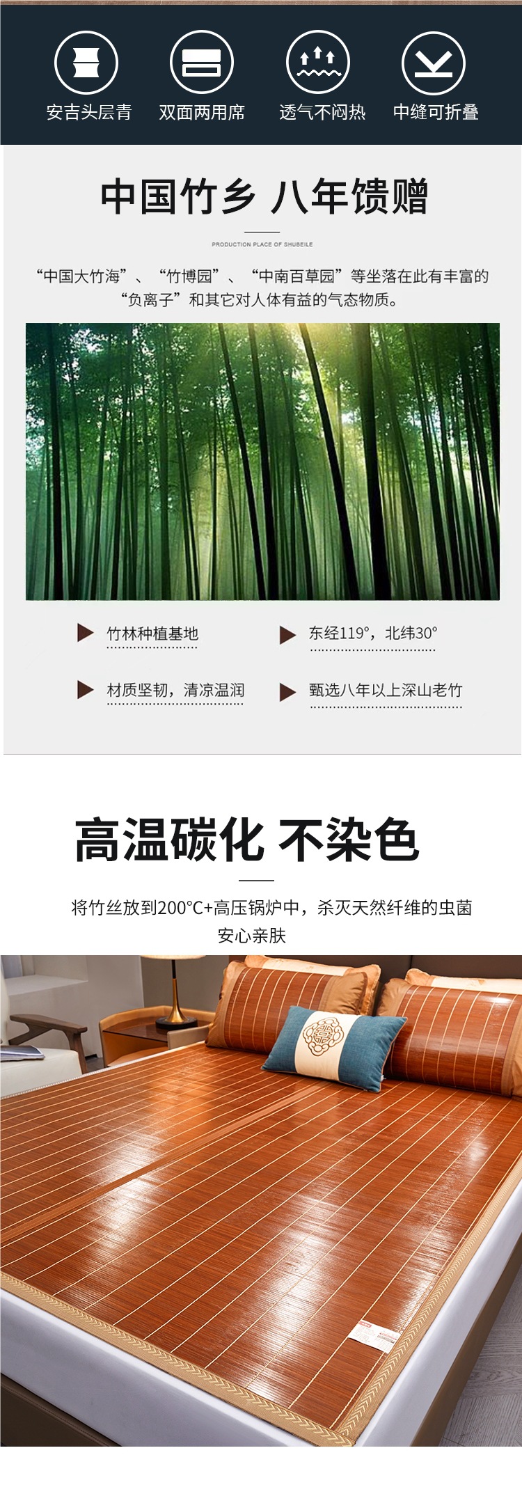 • 피부 친화적인 오리지널 대나무 매트는 폭 1.8m, 길이 2.0m입니다.