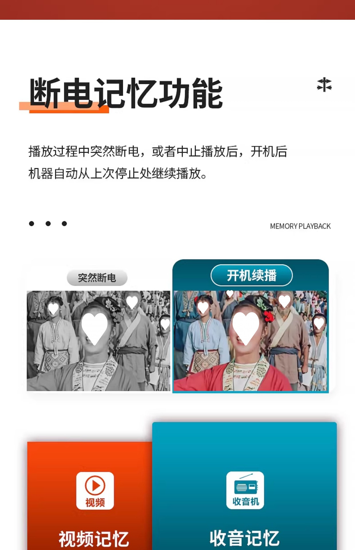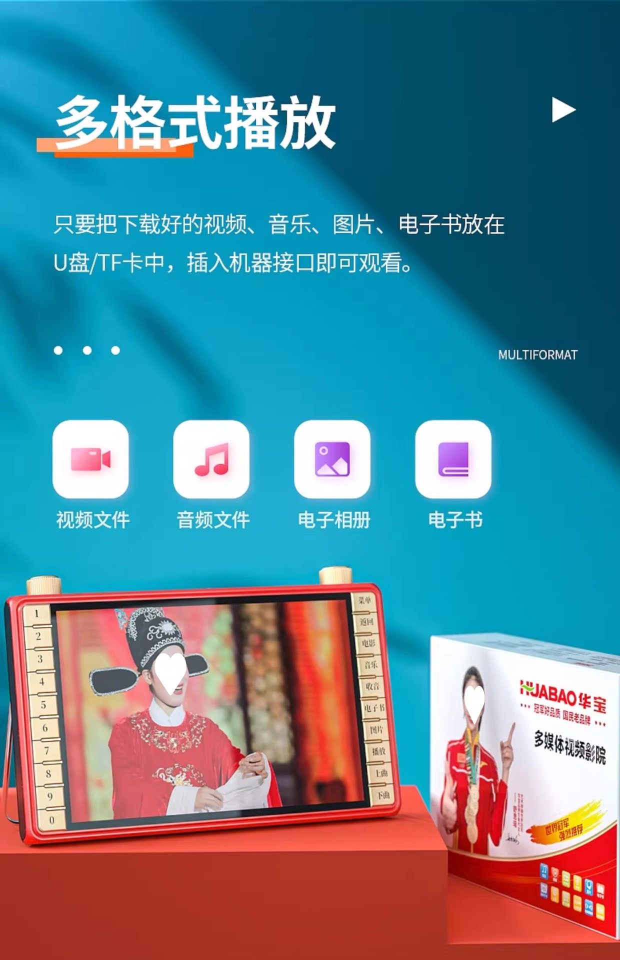 노인들이 극장을 보는 기계, 광장 댄스 비디오 플레이어, 노인들이 극을 듣고 노래하는 기계, 특수 휴대용 소형 TV