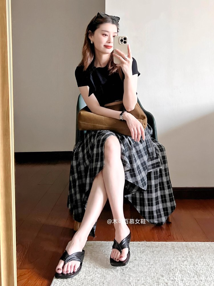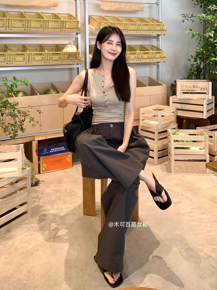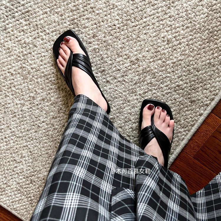 부드러운 가죽 버전 ~ 2025년 여름 신작 여성용 플립플롭 캐주얼 해변 휴가 플랫 오픈 토 플립플롭스토어 가기