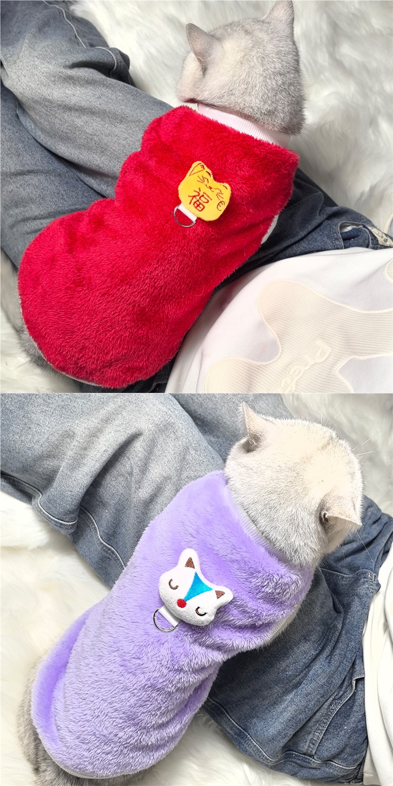 가을 겨울 고양이 옷, 강아지 겨울 따뜻한 두꺼운 조끼, 흘러내림 방지, 귀여운 인형 애완 동물 옷, 소형견스토어 가기