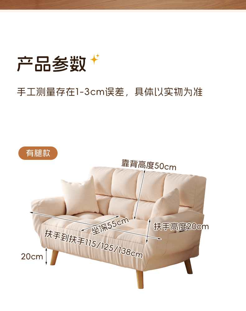 • 【업그레이드된 두께】 미색/다리 포함 - 2인용 125CM (쿠션 2개 증정)