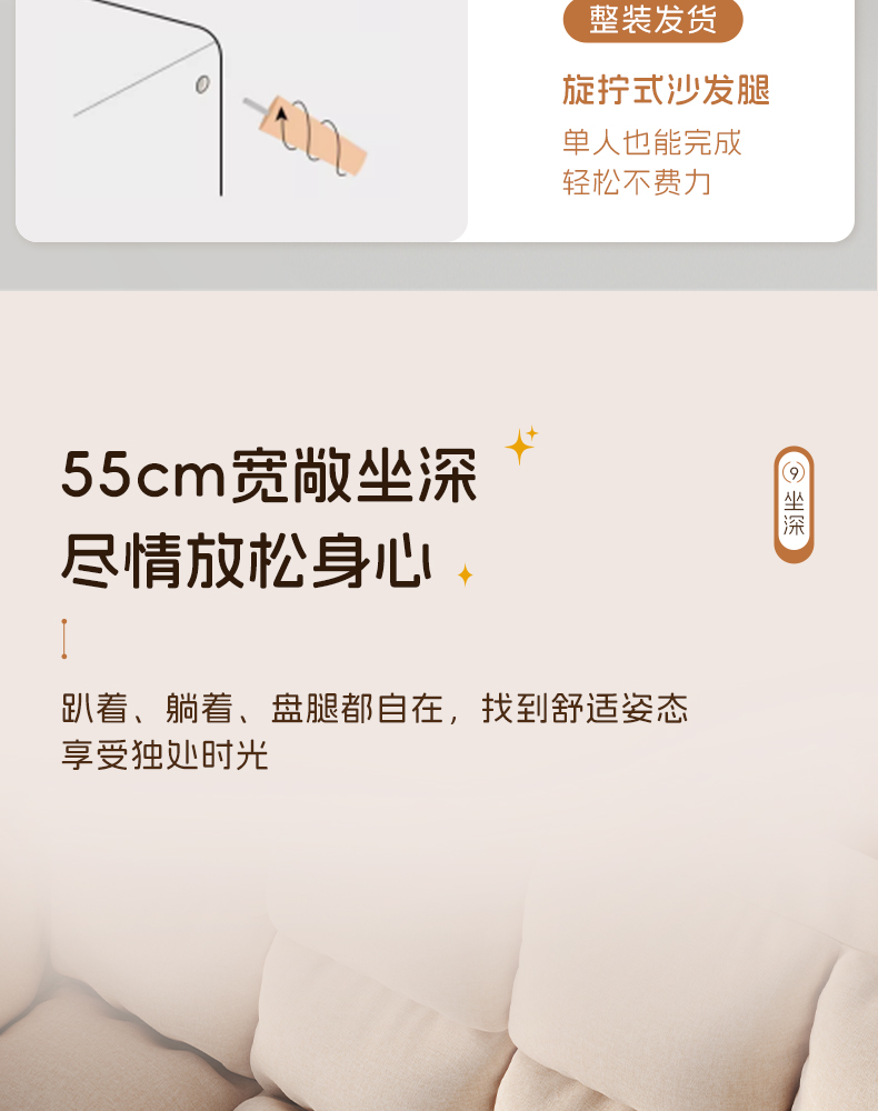 • 【업그레이드된 두께】 미색/다리 포함 - 2인용 155CM (쿠션 2개 증정)