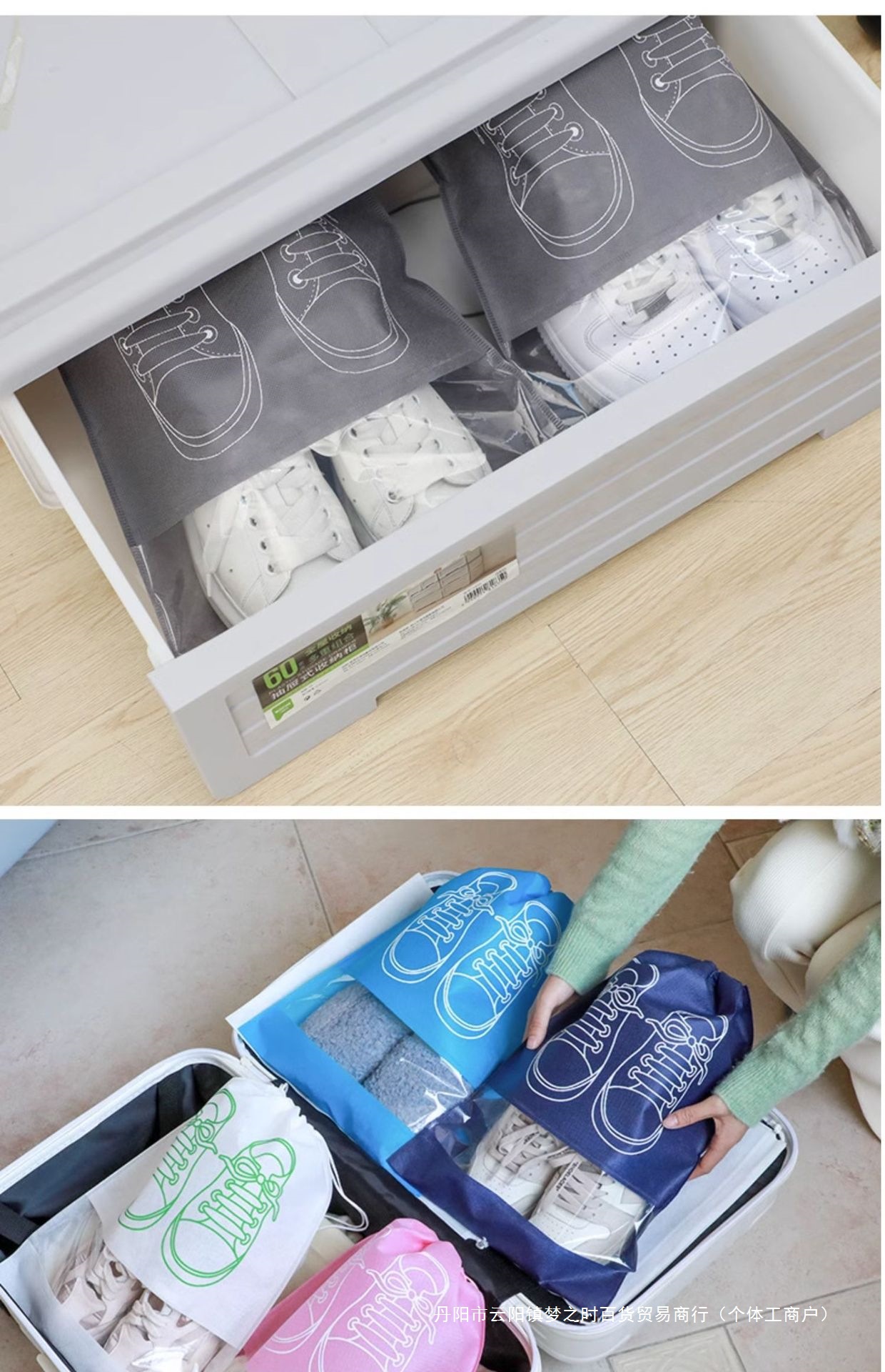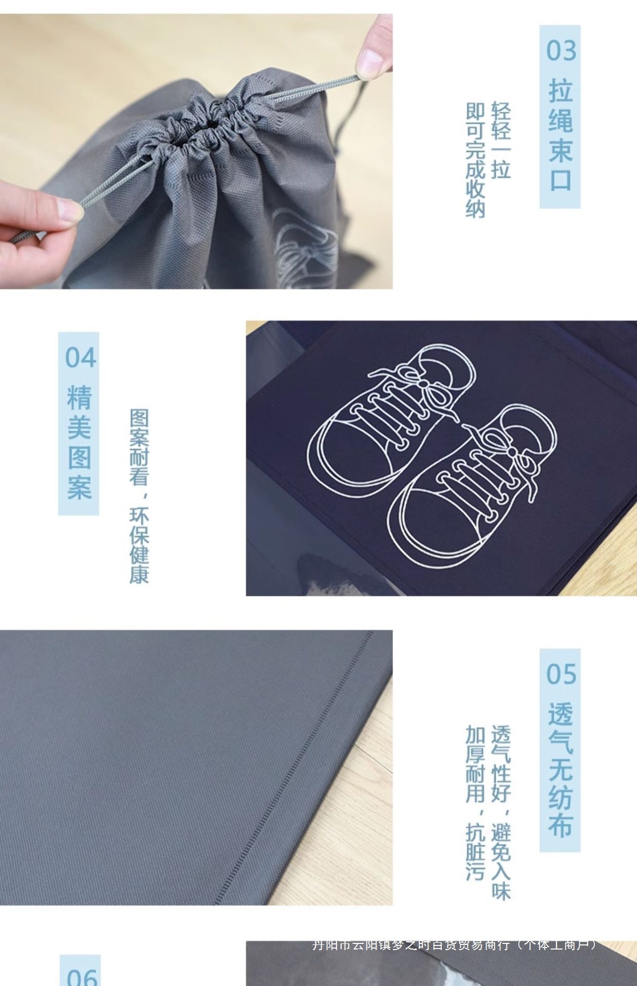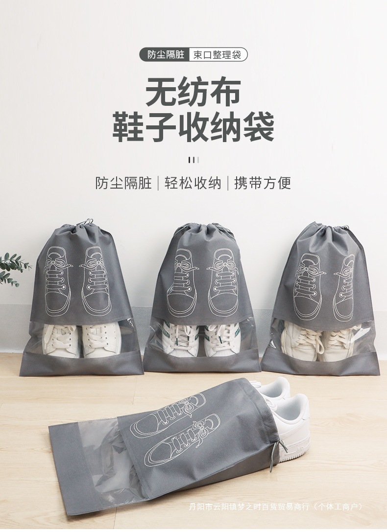 • 특대형 - 5개 [다크그레이 프린트 신발주머니 36*45cm]