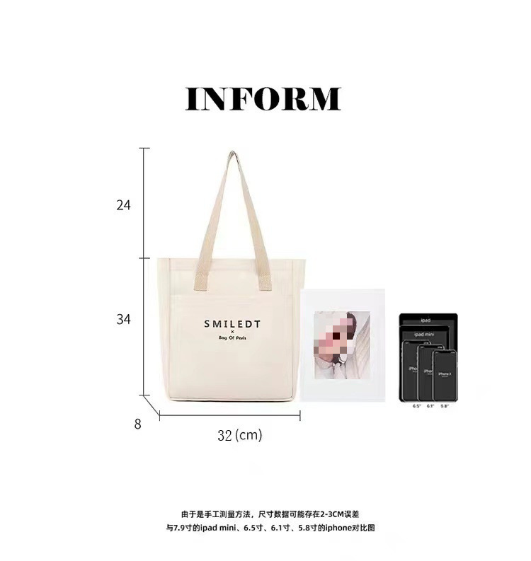 대학생 수업 캔버스 가방 새로운 캐주얼 다용도 어깨 대용량 작업 통근 토트스토어 가기